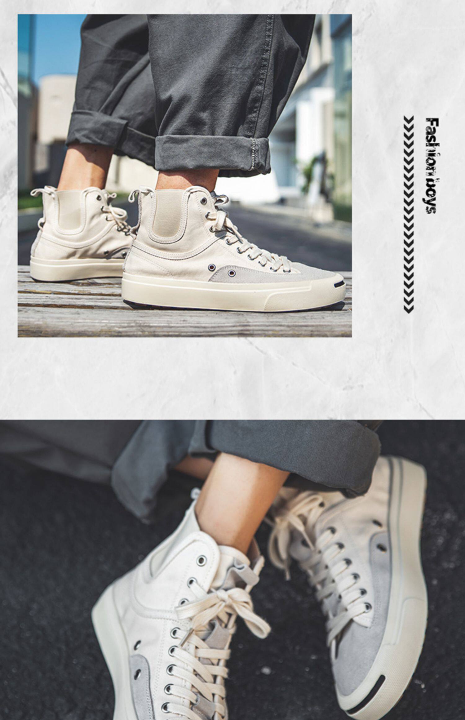 Summer Canvas Shoes for Men, High-Top Trendy Versatile Casual Shoes, Low-Top Breathable New Style White Mid-Top Korean-Style Sneakers