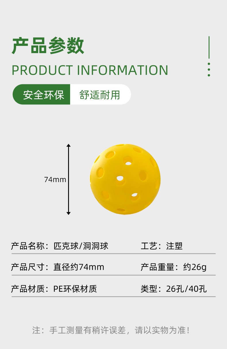 Pickleball 40-Hole Outdoor Perforated Ball 74mm Eco-Friendly Material Usapa Certified