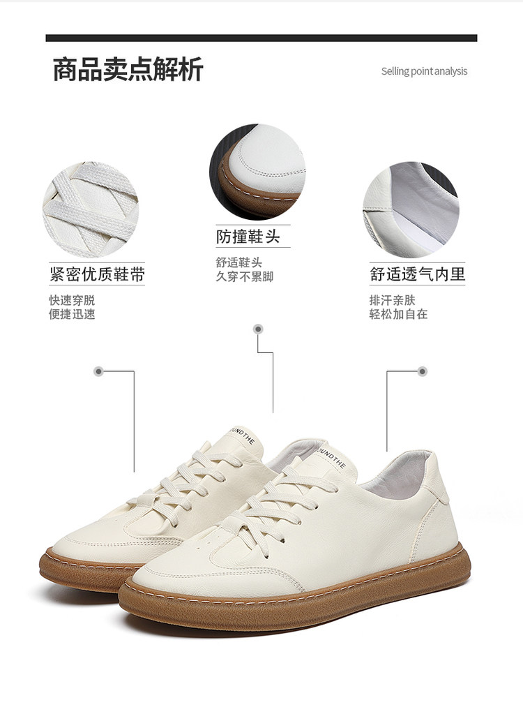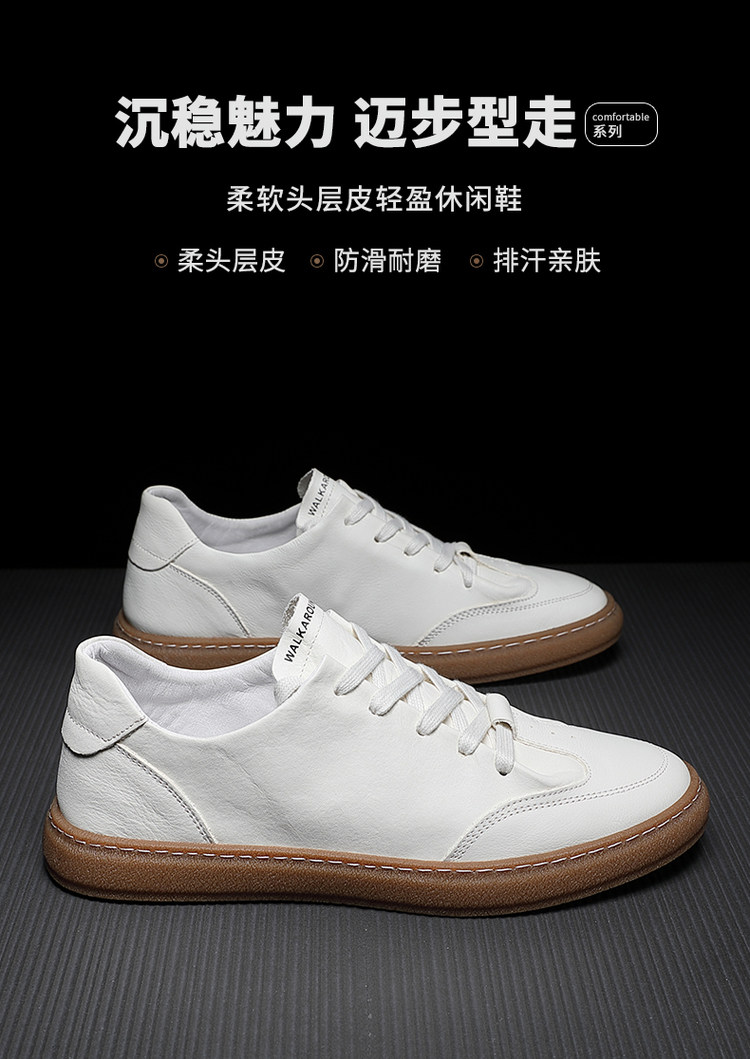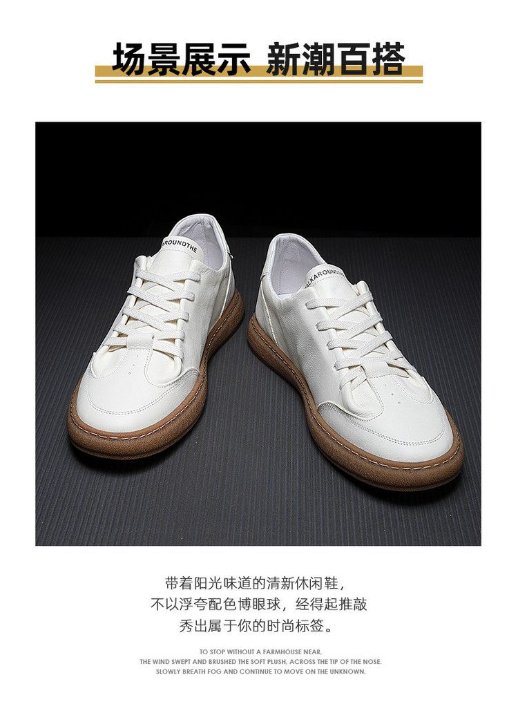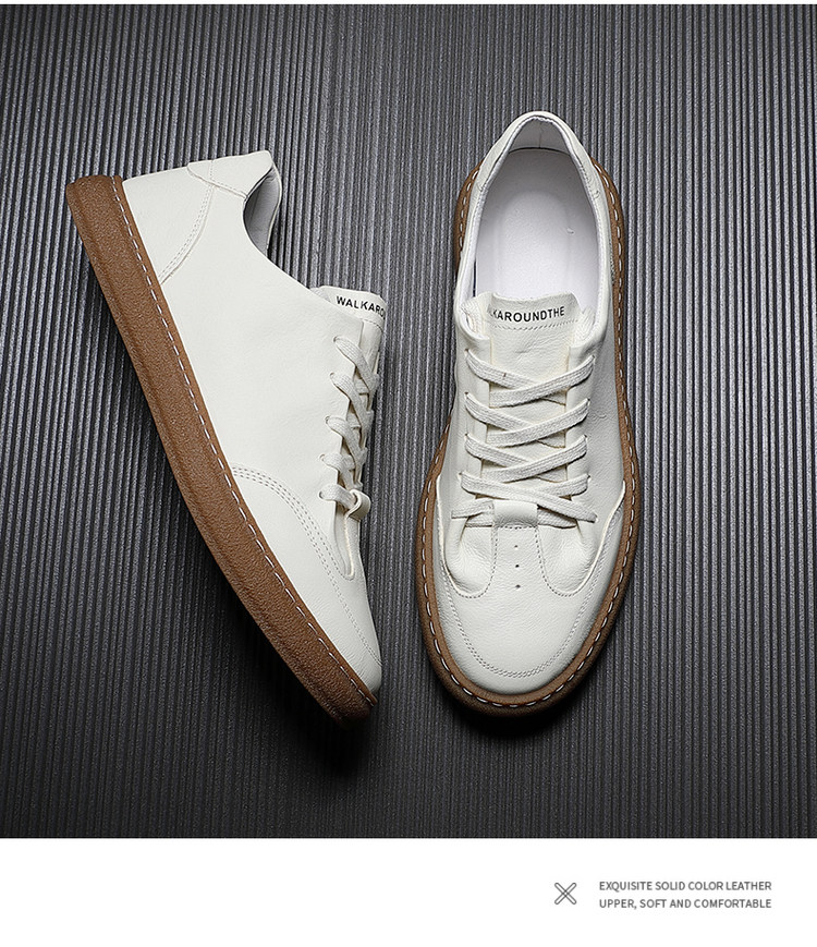 Summer Sneakers Low-Top Men's Trendy Korean Style Breathable Sports Casual White Shoes Genuine Leather Japanese Versatile White Leather Shoes
