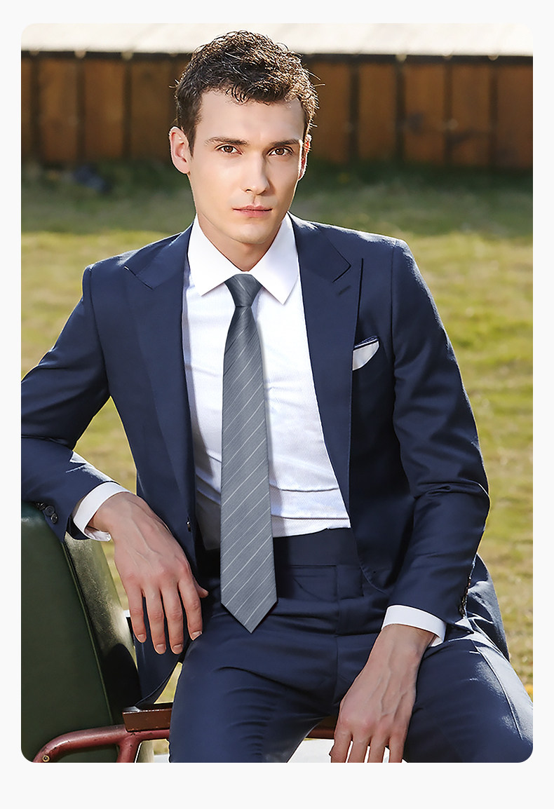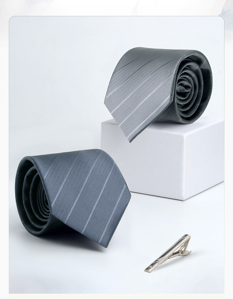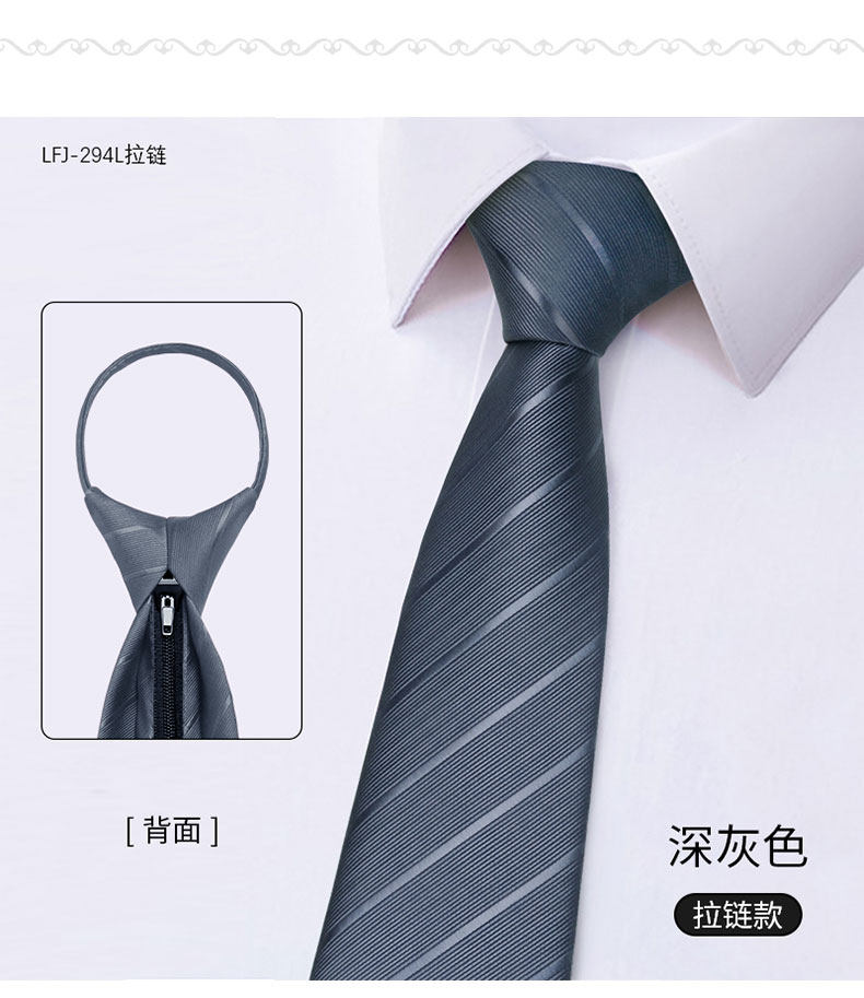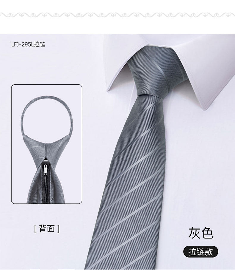 Gray Striped Tie for Men, Formal Suit, Zipper Style, No Need to Tie, Easy to Wear, Lazy Business Men's Hand-Tied Tie