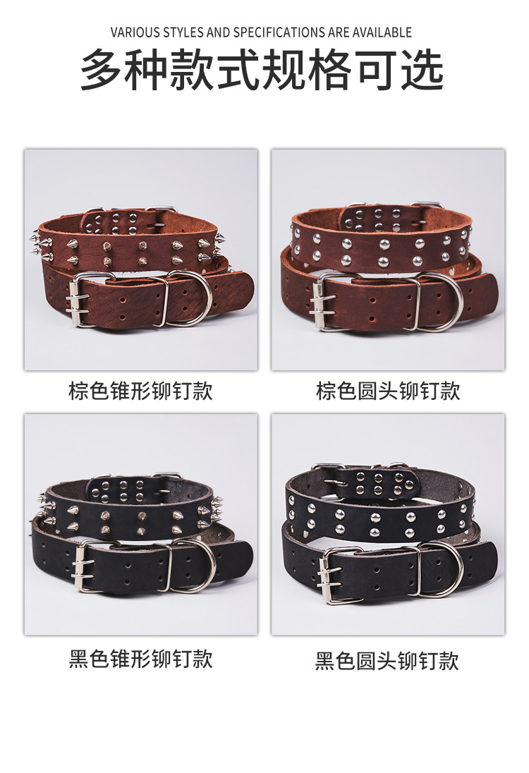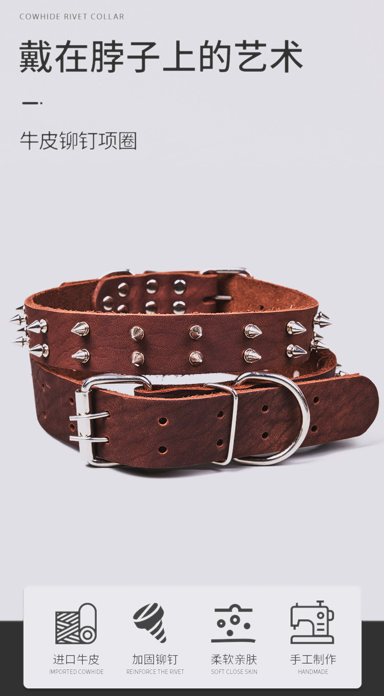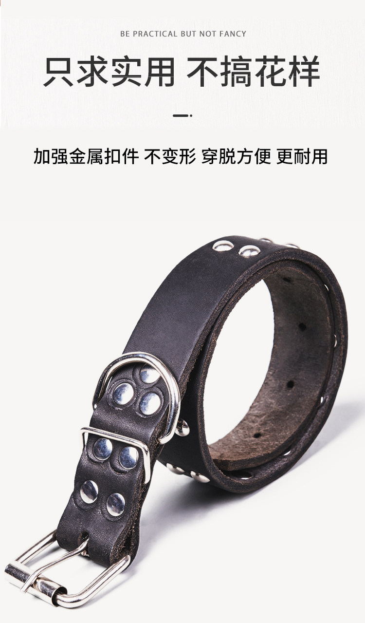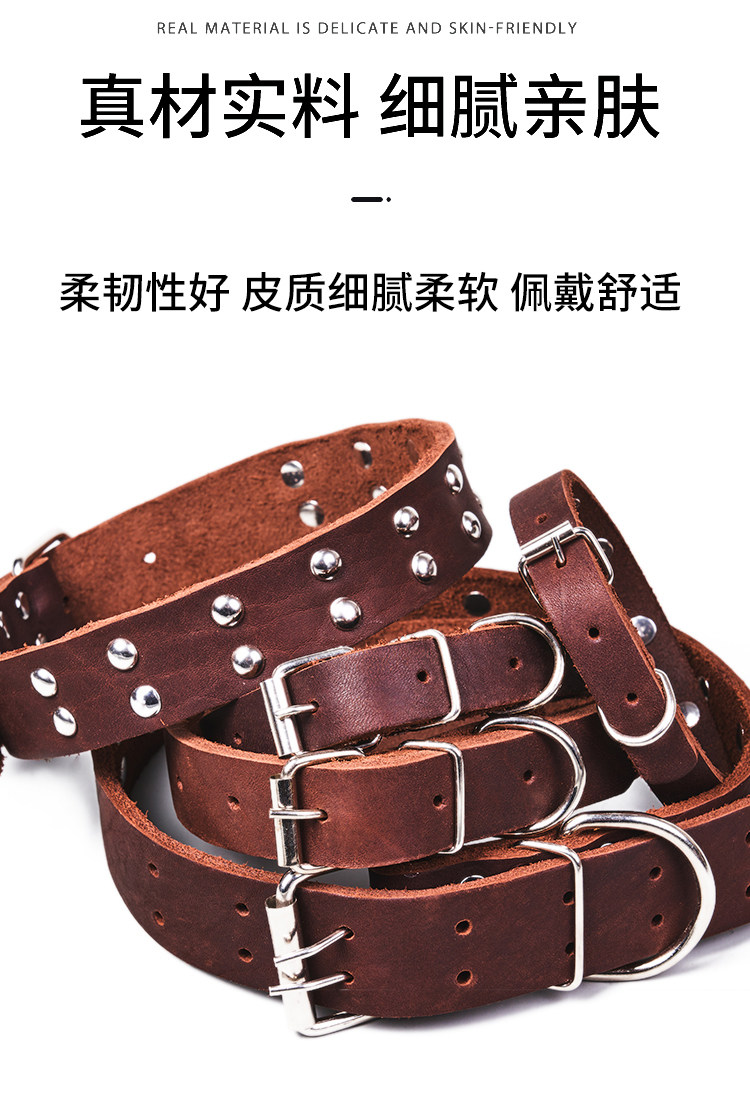 First-Layer Cowhide Dog Collar, Large Dog Rivet Collar, Anti-Bite Collar, Pet Collar, Malinois Golden Retriever Collar, Genuine Leather
