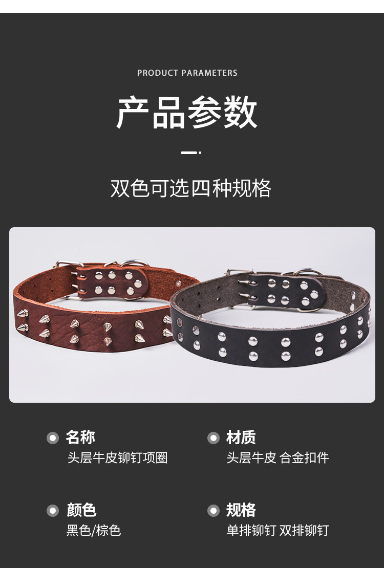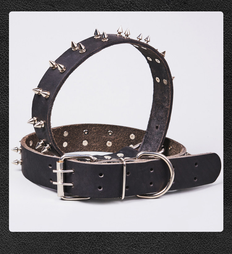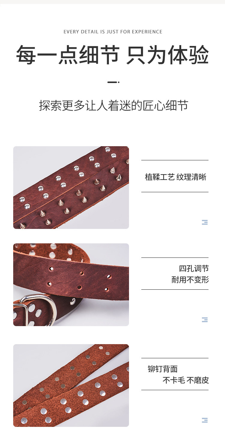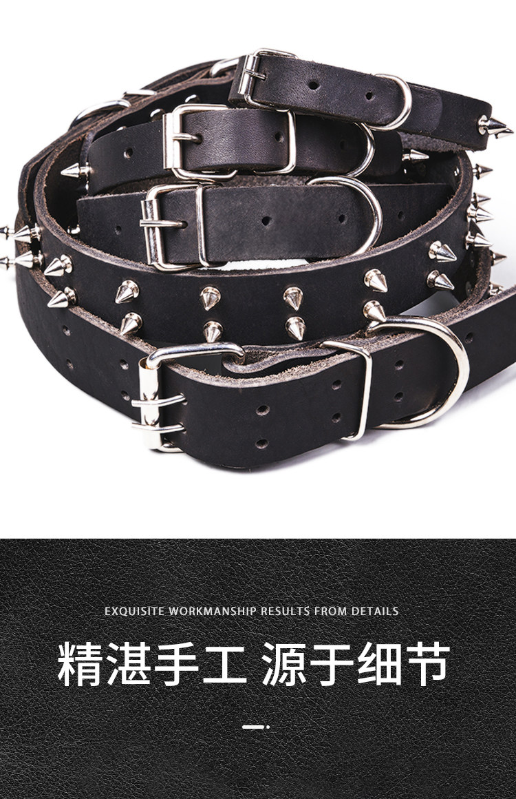 First-Layer Cowhide Dog Collar, Large Dog Rivet Collar, Anti-Bite Collar, Pet Collar, Malinois Golden Retriever Collar, Genuine Leather