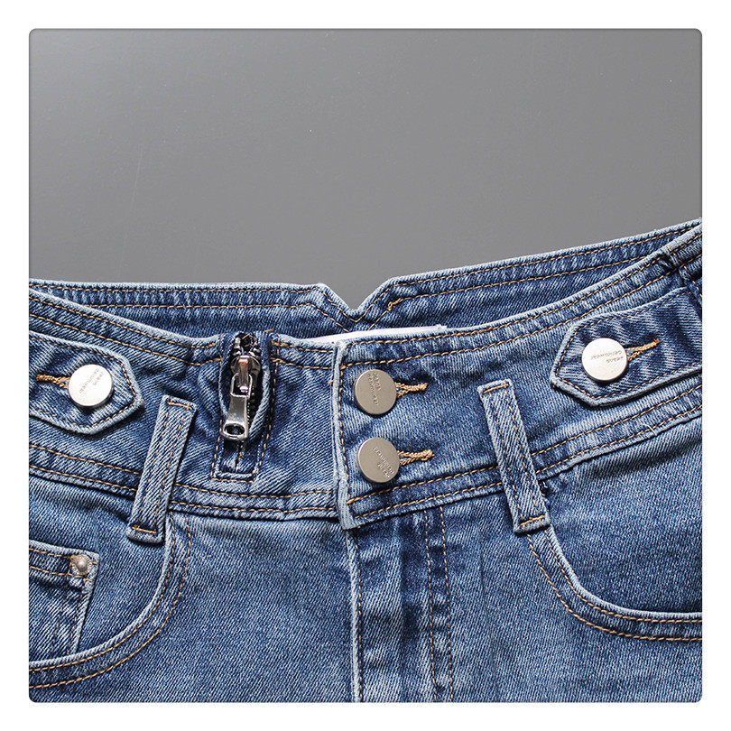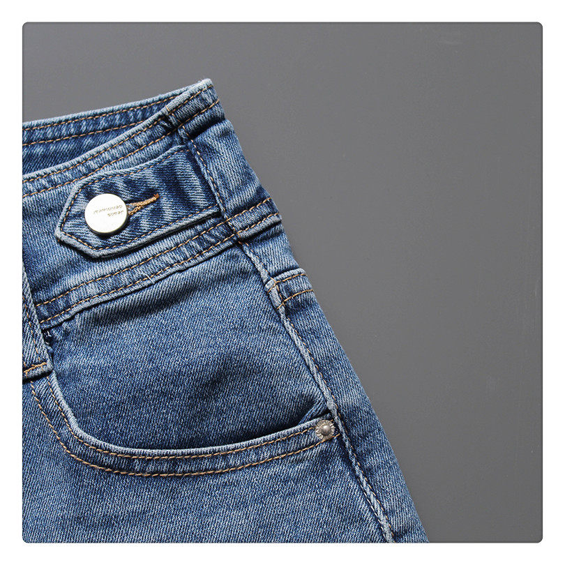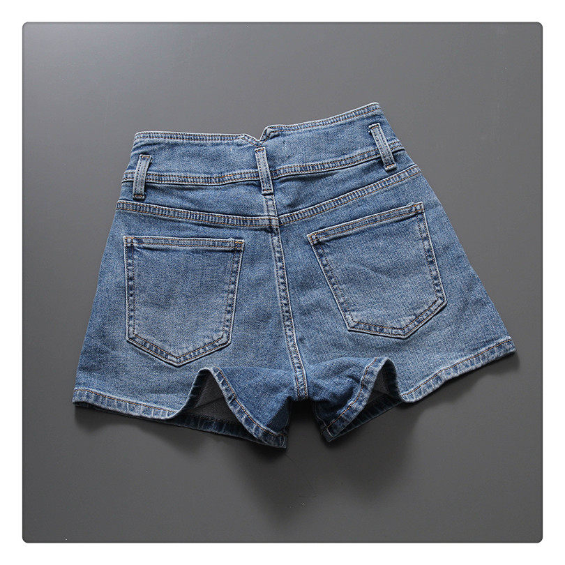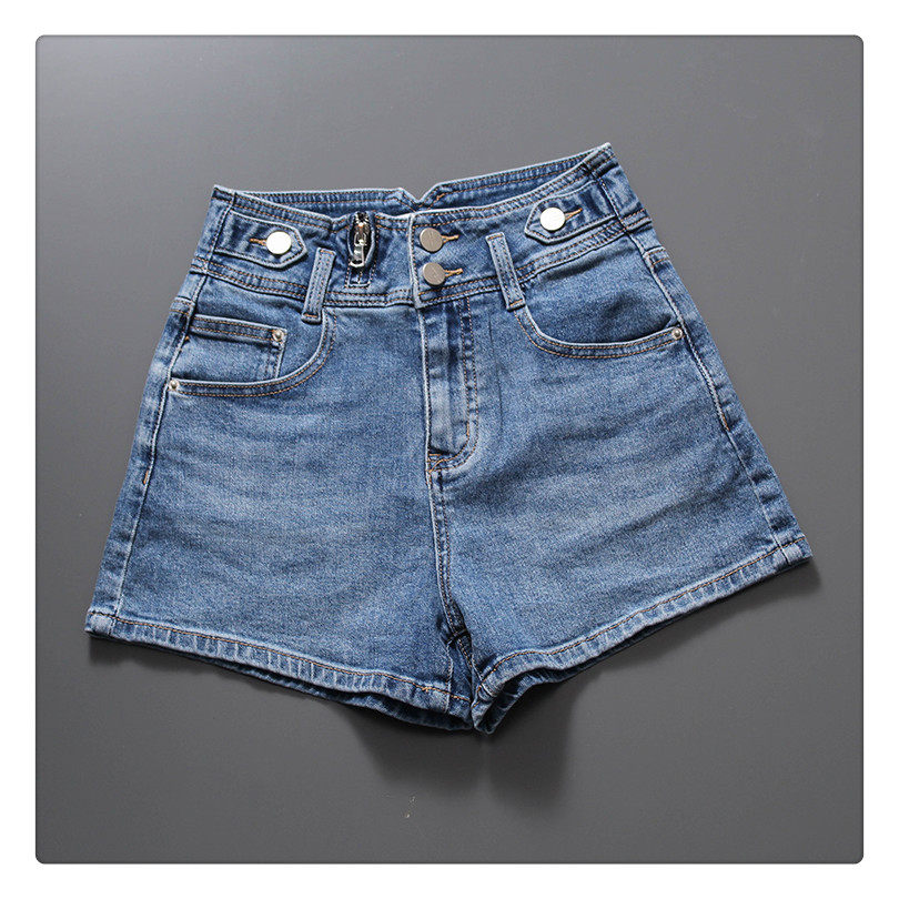 Hong Kong Trendy Brand European Style Korean Version Stretchy Two-Button Dark Blue High-Waisted Denim Shorts Slim Fit Flattering Women's Soft Summer