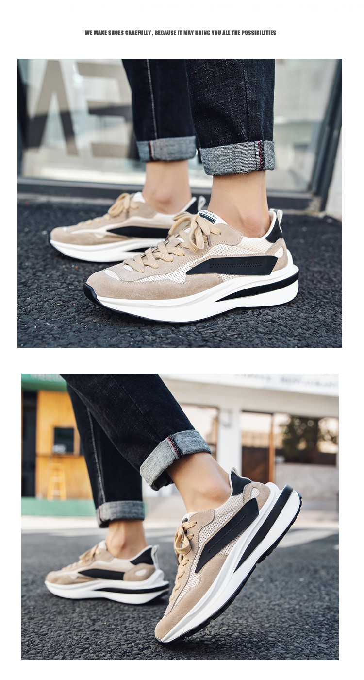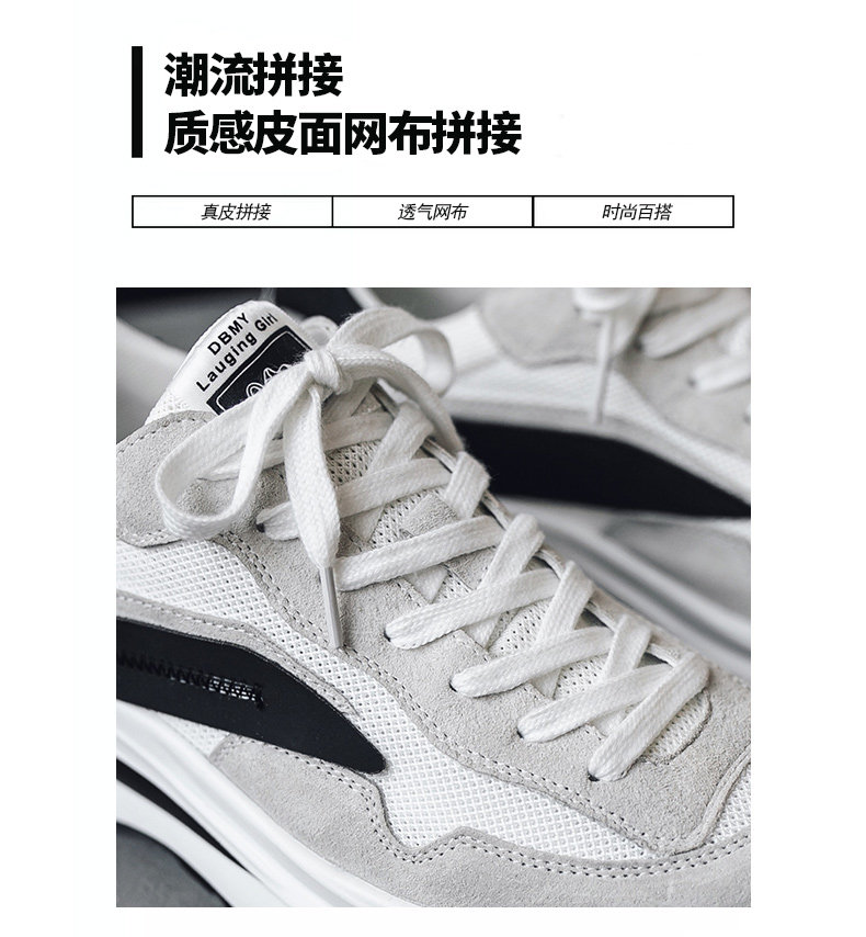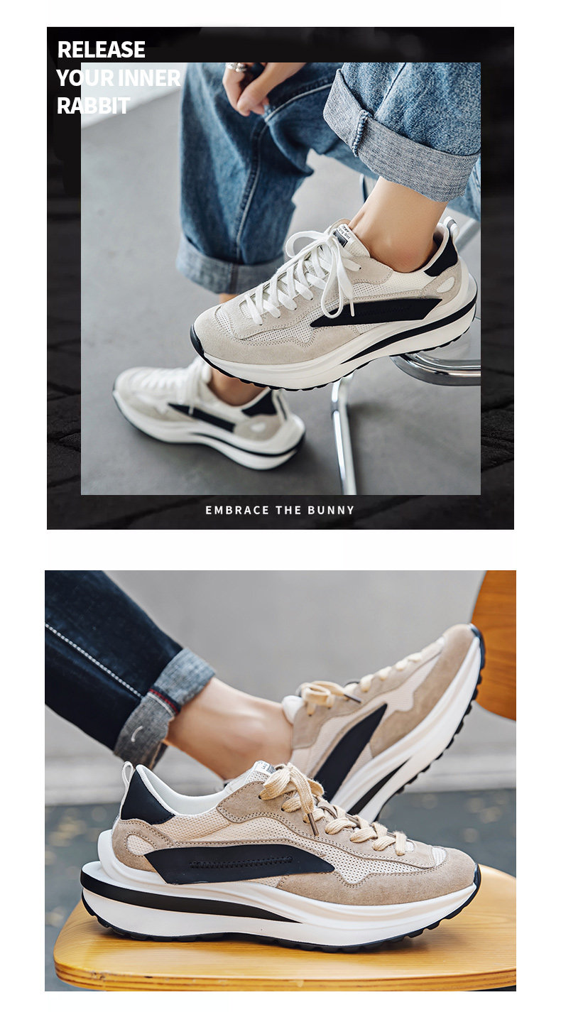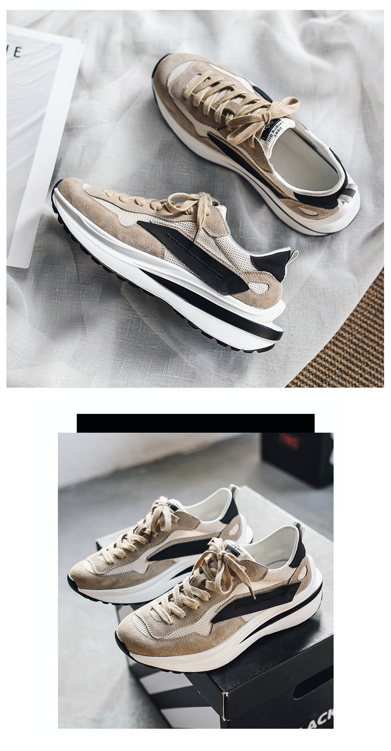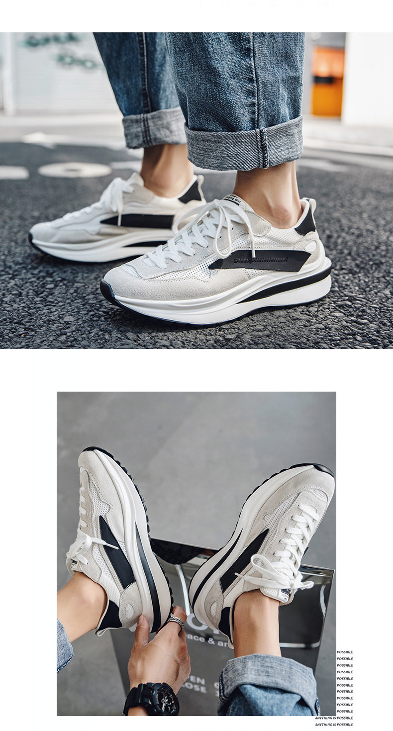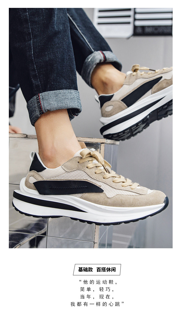 Mesh Sneakers for Men, Summer Breathable Casual Soft-Soled Genuine Leather Trendy Shoes, Odor-Resistant, Versatile Running Height-Increasing Dad Shoes