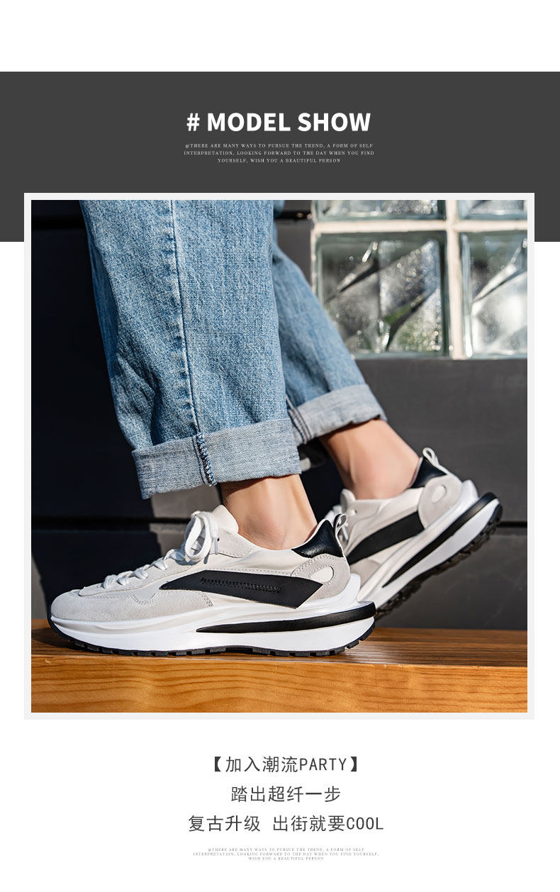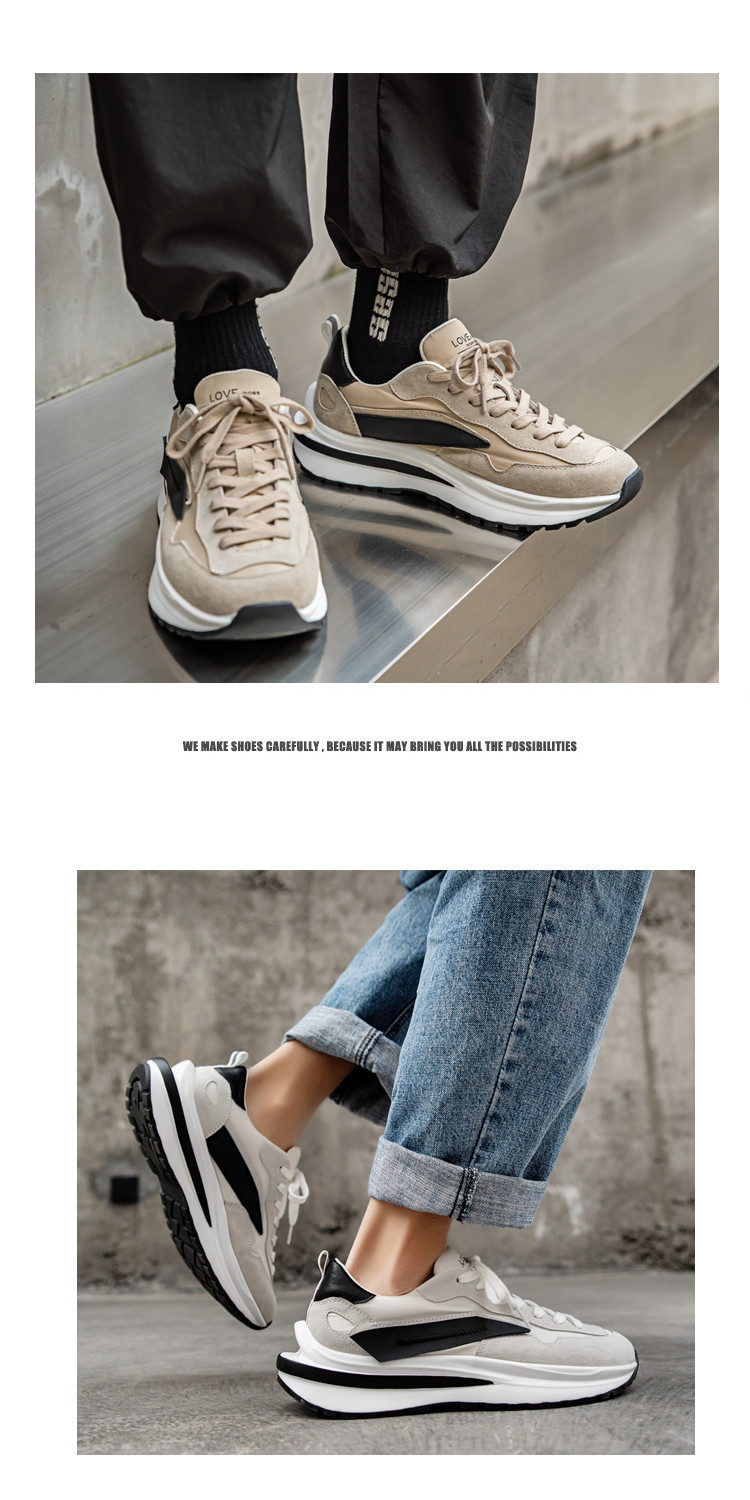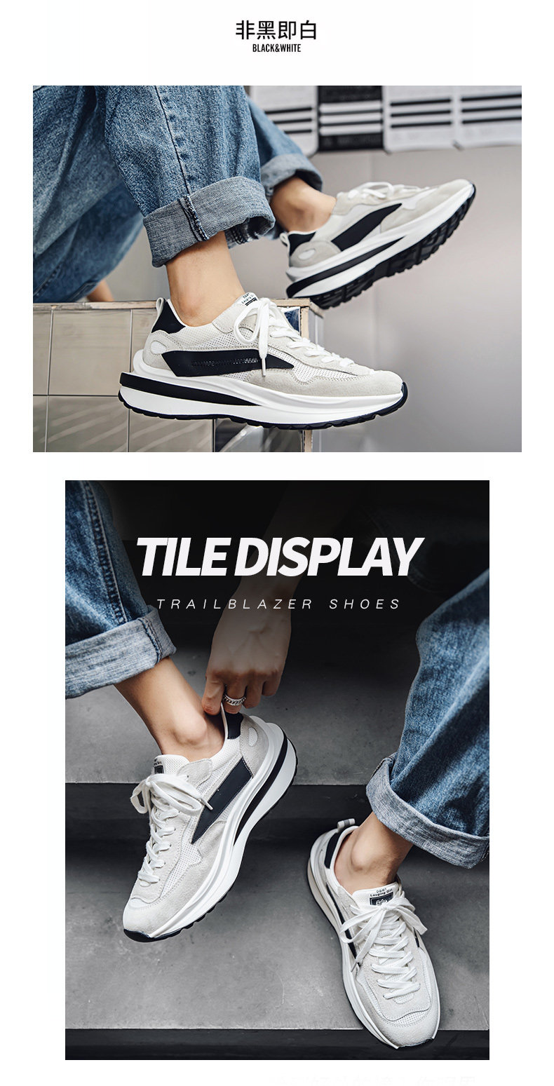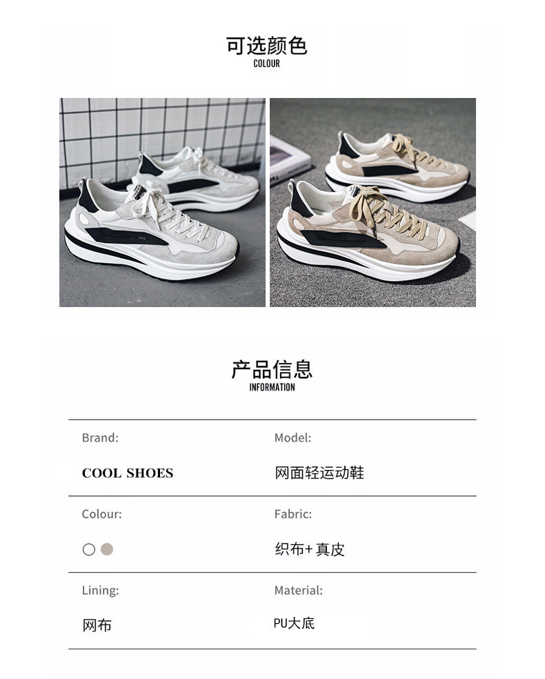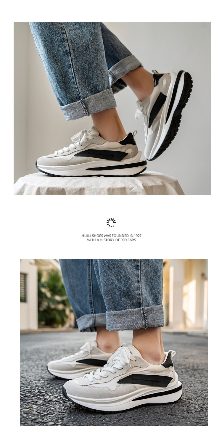Mesh Sneakers for Men, Summer Breathable Casual Soft-Soled Genuine Leather Trendy Shoes, Odor-Resistant, Versatile Running Height-Increasing Dad Shoes
