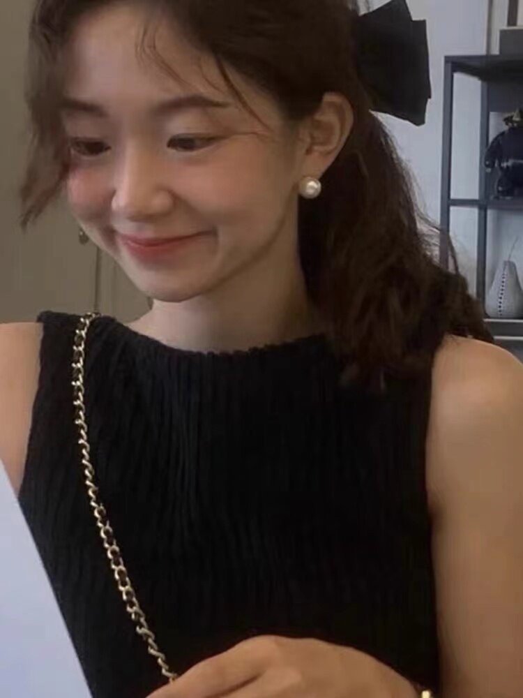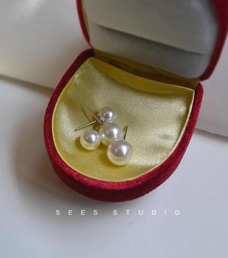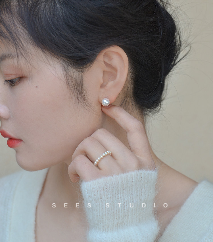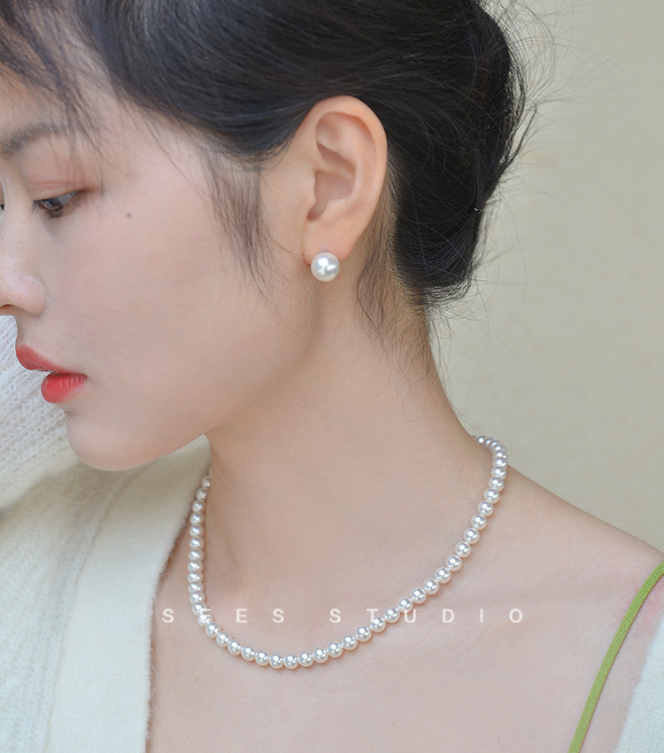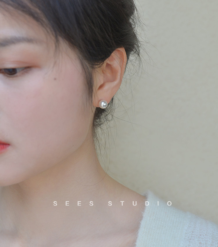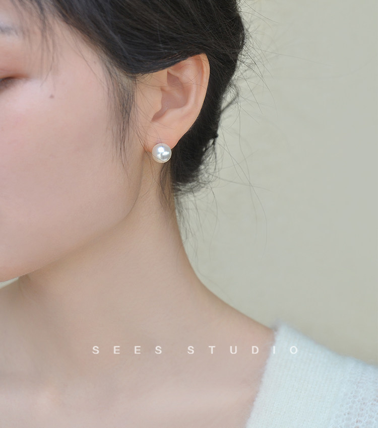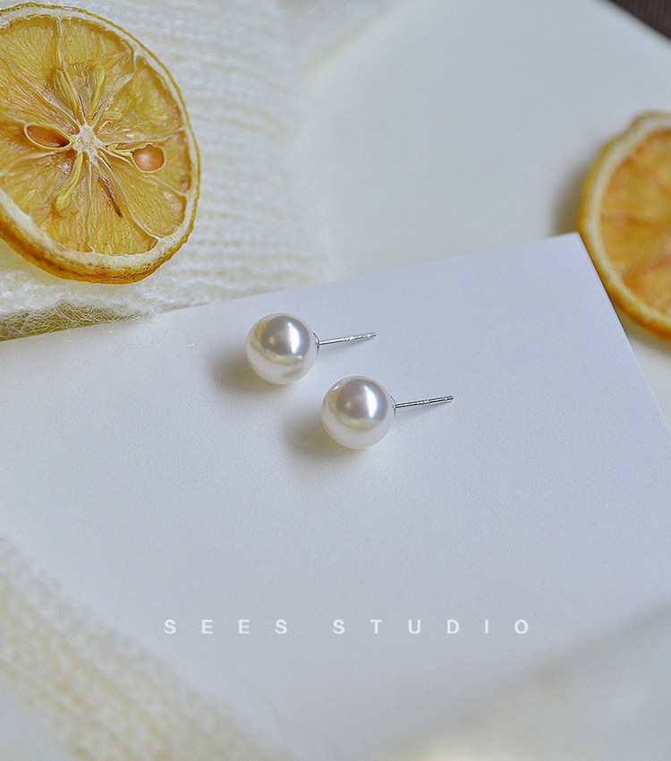 ins Blogger Fever's Same Style Shijia Bright Round Pearl 925 Sterling Silver Earrings for Women, Simple and Retro Style