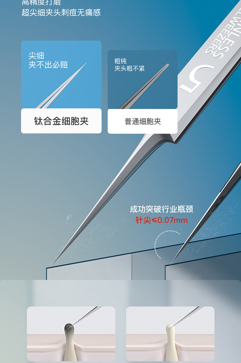 Allsmile Ultra-Fine No. 5 Cell Clip Blackhead Remover Tweezers Acne Needle Set Pimple Squeezing Tool Magic Tool