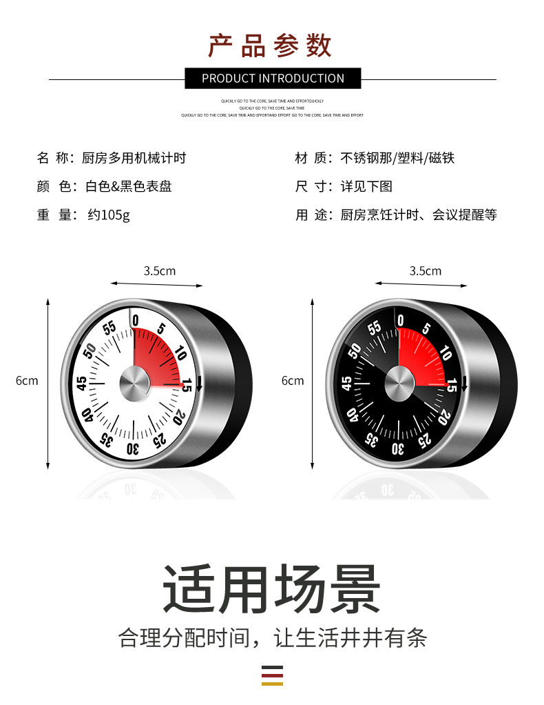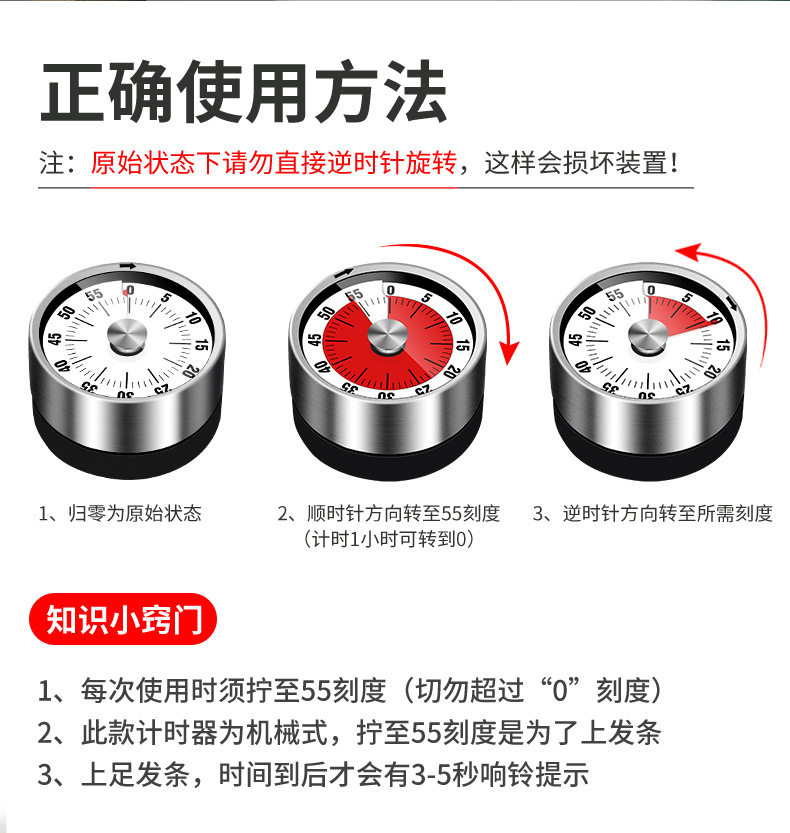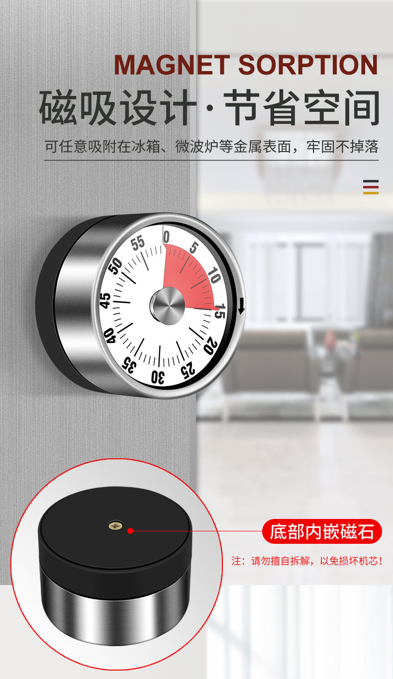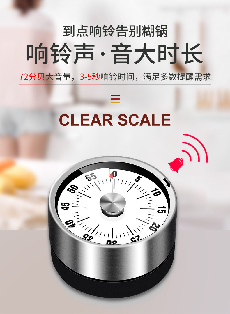 Kitchen Timer Mechanical Reminder Student Time Management Timer Alarm Clock Self-Discipline Timer for Homework Home Countdown Clock