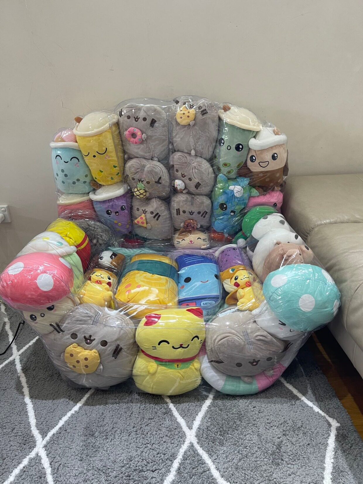 Internet celebrity transparent sofa cover drawstring style stuffed doll storage artifact lazy chair Xiaohongshu DIY doll stuffing