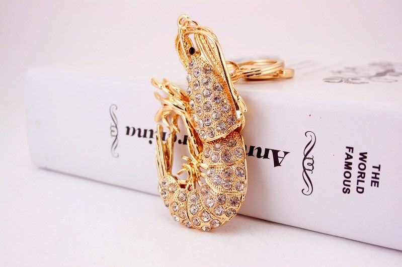 Bag, Schoolbag Pendant, High-End, Creative, Cute, Diamond-Encrusted Crayfish, Car Keychain, Accessories for Men, Women, and Children
