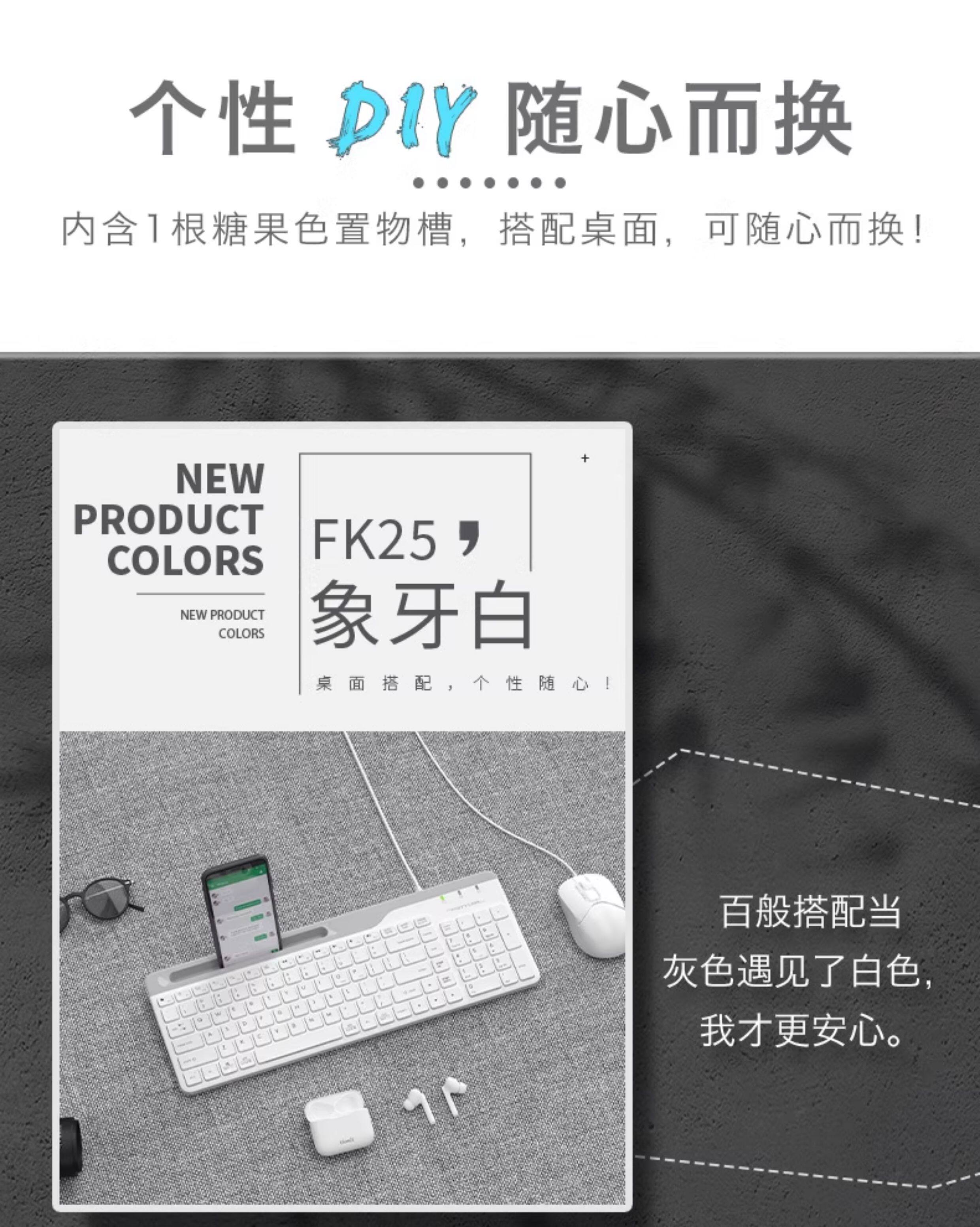 Sort by color Suikong Gray single keyboard FK25,Ivory single keyboard FK25,Suikong gray keyboard and mouse set FK25+FM12,Ivory keyboard and mouse set FK25+FM12
