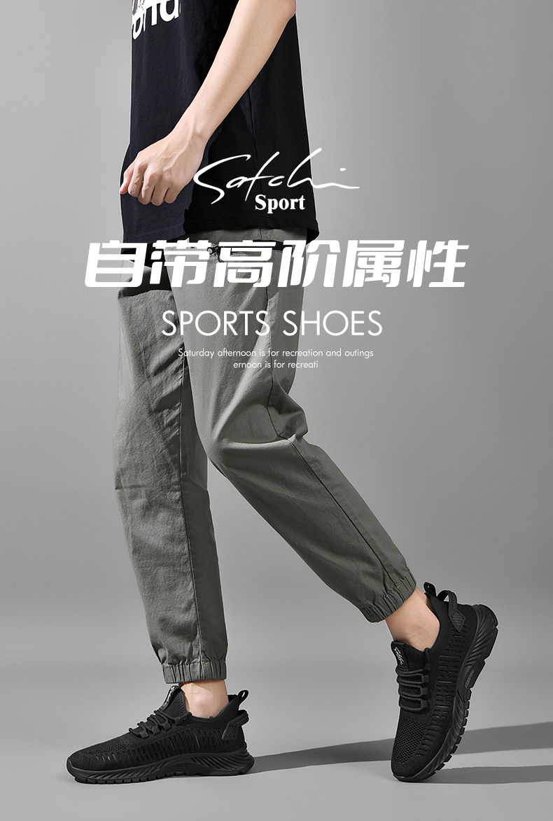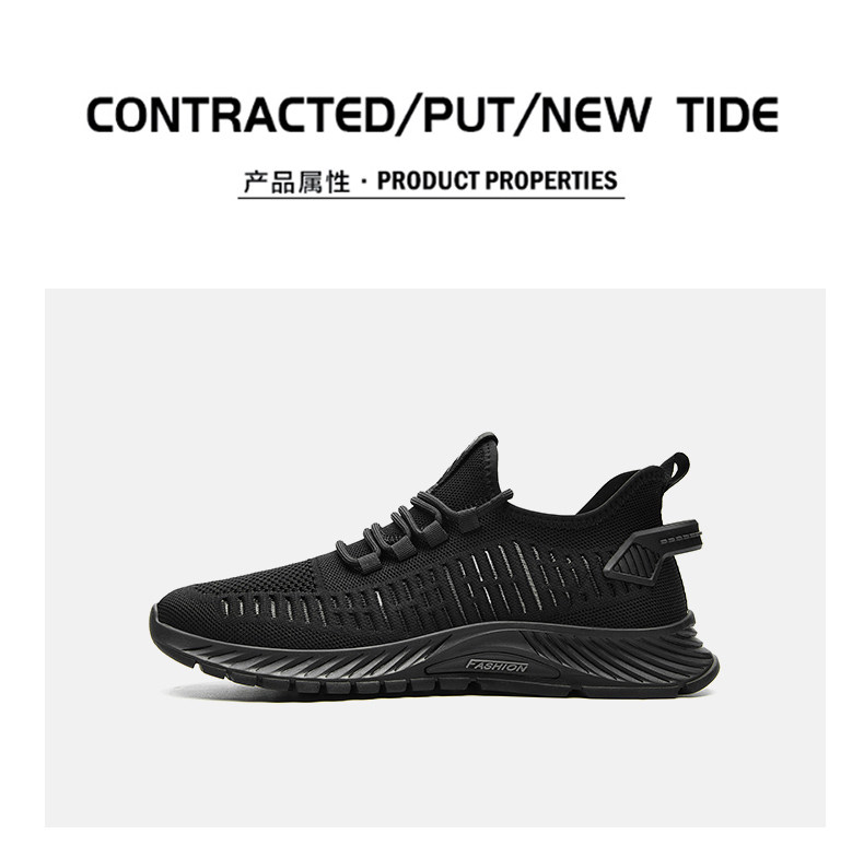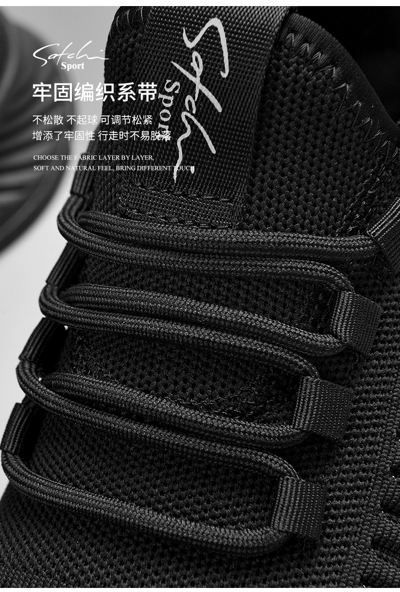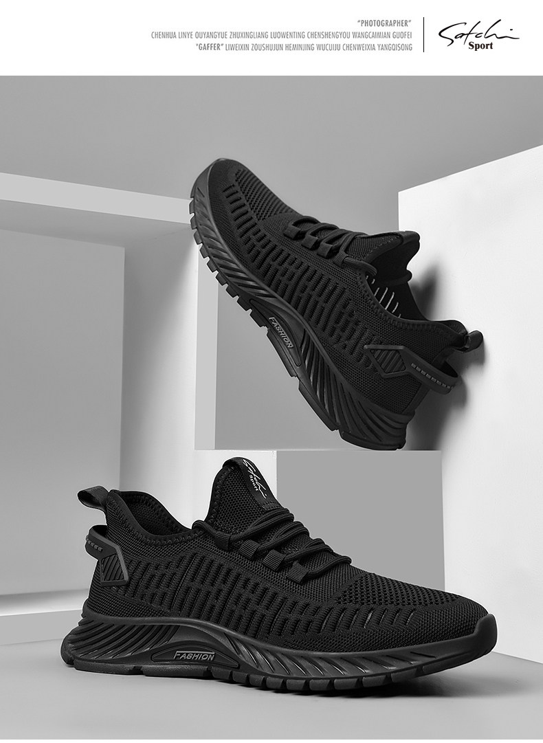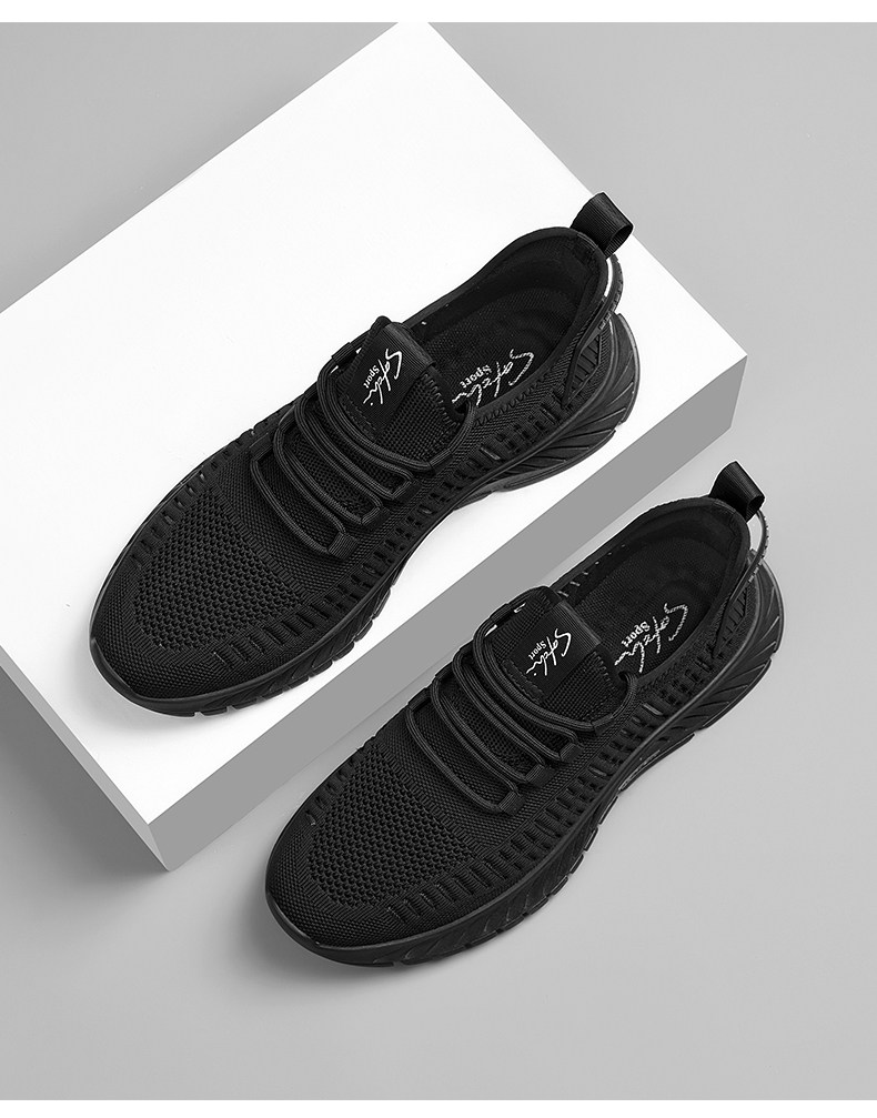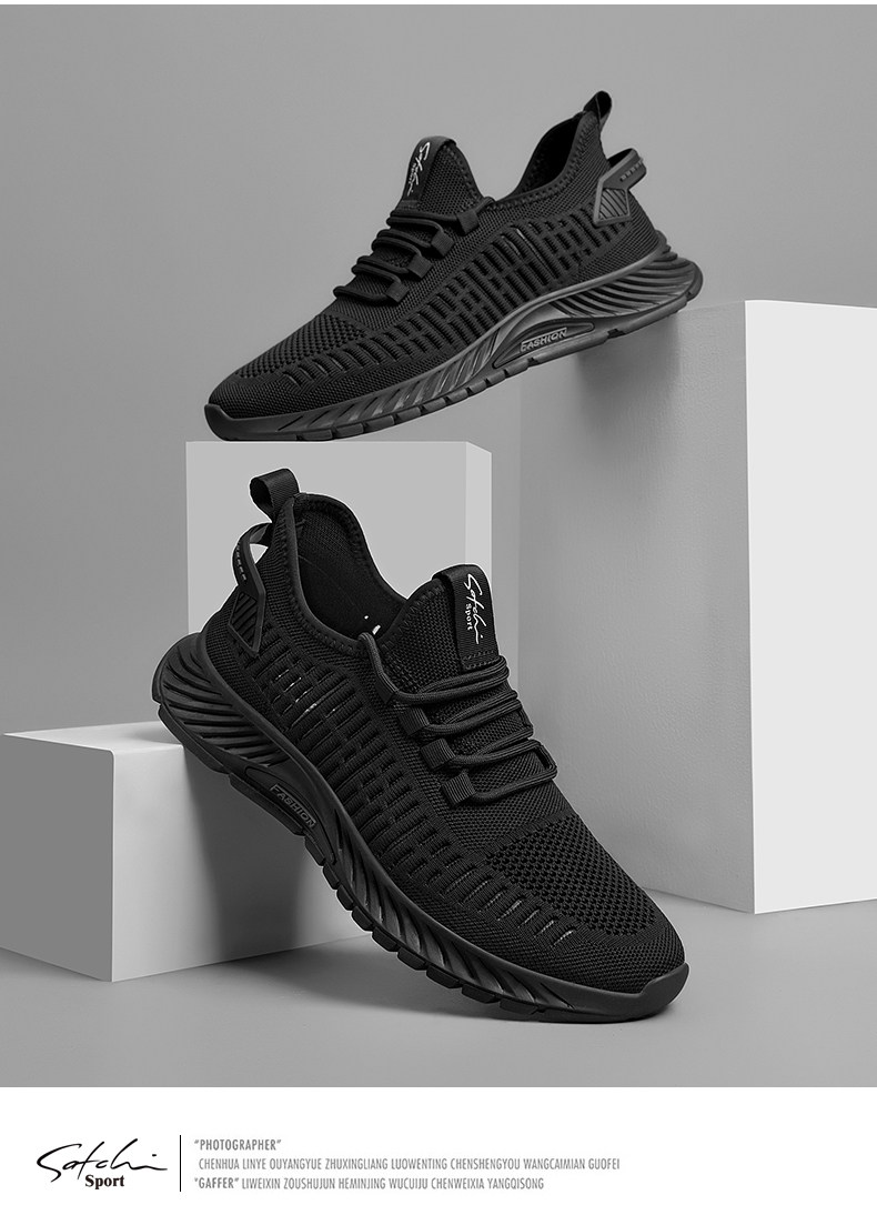 Shachi Men's Shoes 2025 New Autumn Fly-Knit Mesh Shoes Black Versatile Soft-Soled Comfortable Sports Casual Travel Shoes