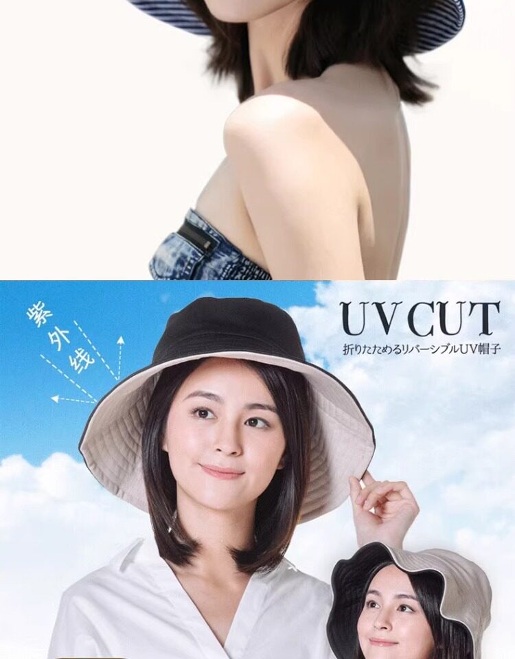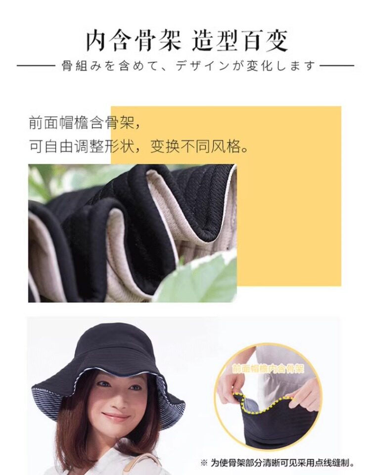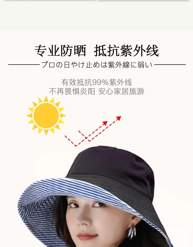Japanese uvcut sun protection hat, anti-UV, face-covering sun hat, women's summer large brim double-sided sunshade fisherman hat