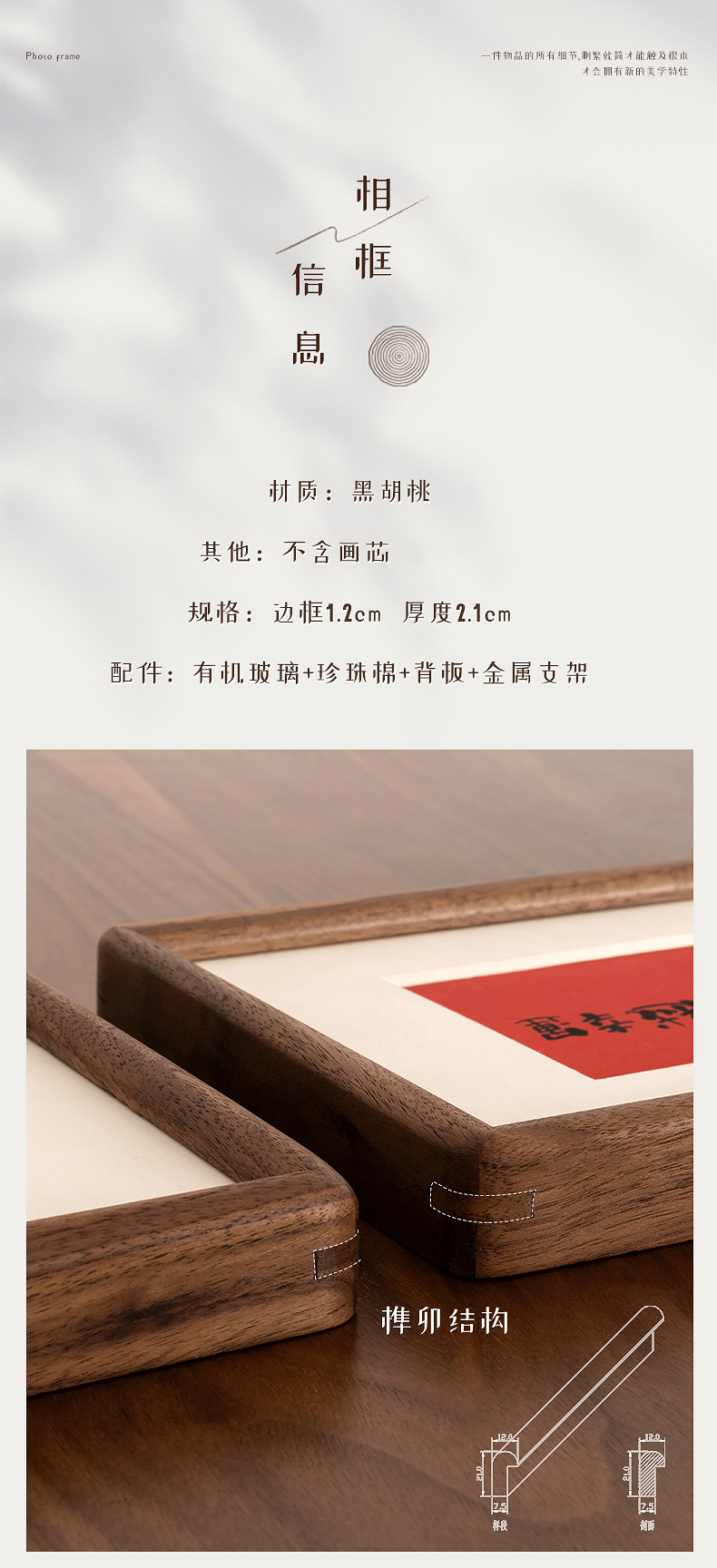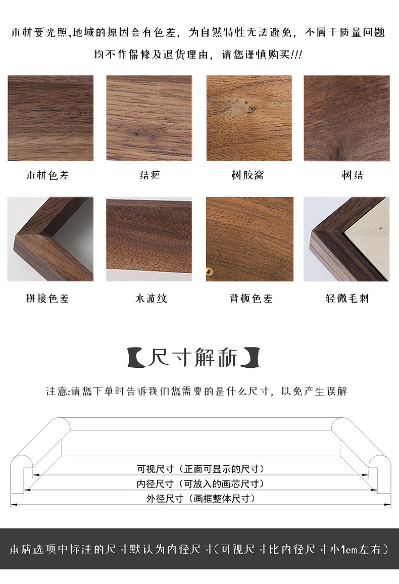 Solid Wood Mortise and Tenon Frame Display Stand, High-End Feel, 6-Inch 7inch 8inch Black Walnut, Photo Printing Made into a Frame, Wall-Mounted Picture Frame