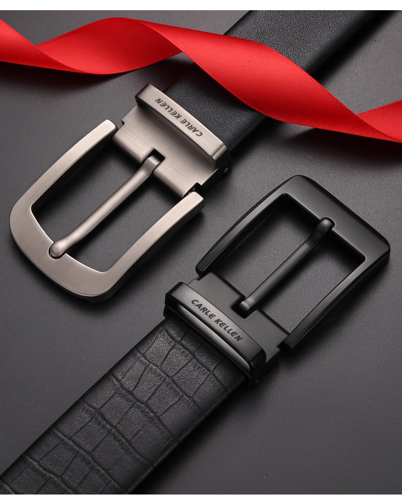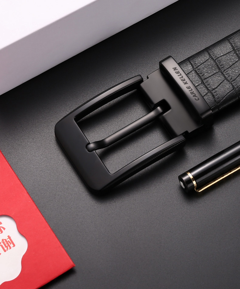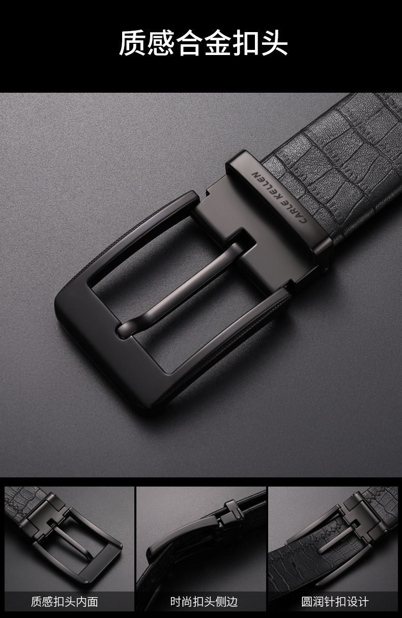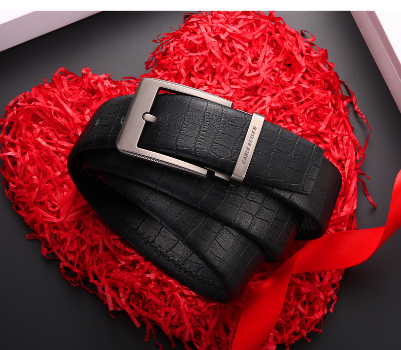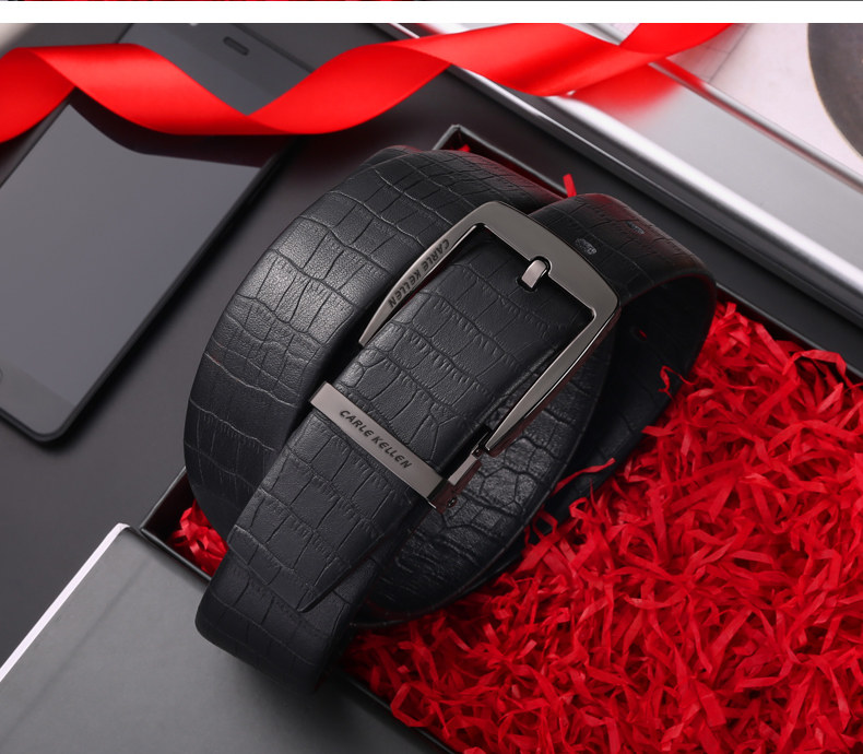 Carle Kellen Men's Genuine Leather Belt with Pin Buckle, Fashionable Crocodile Pattern, Casual Men's Belt, Trendy for Young People