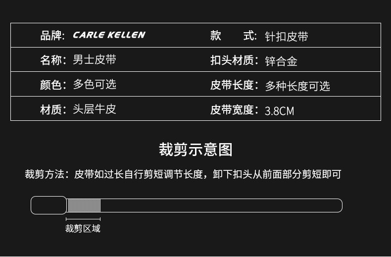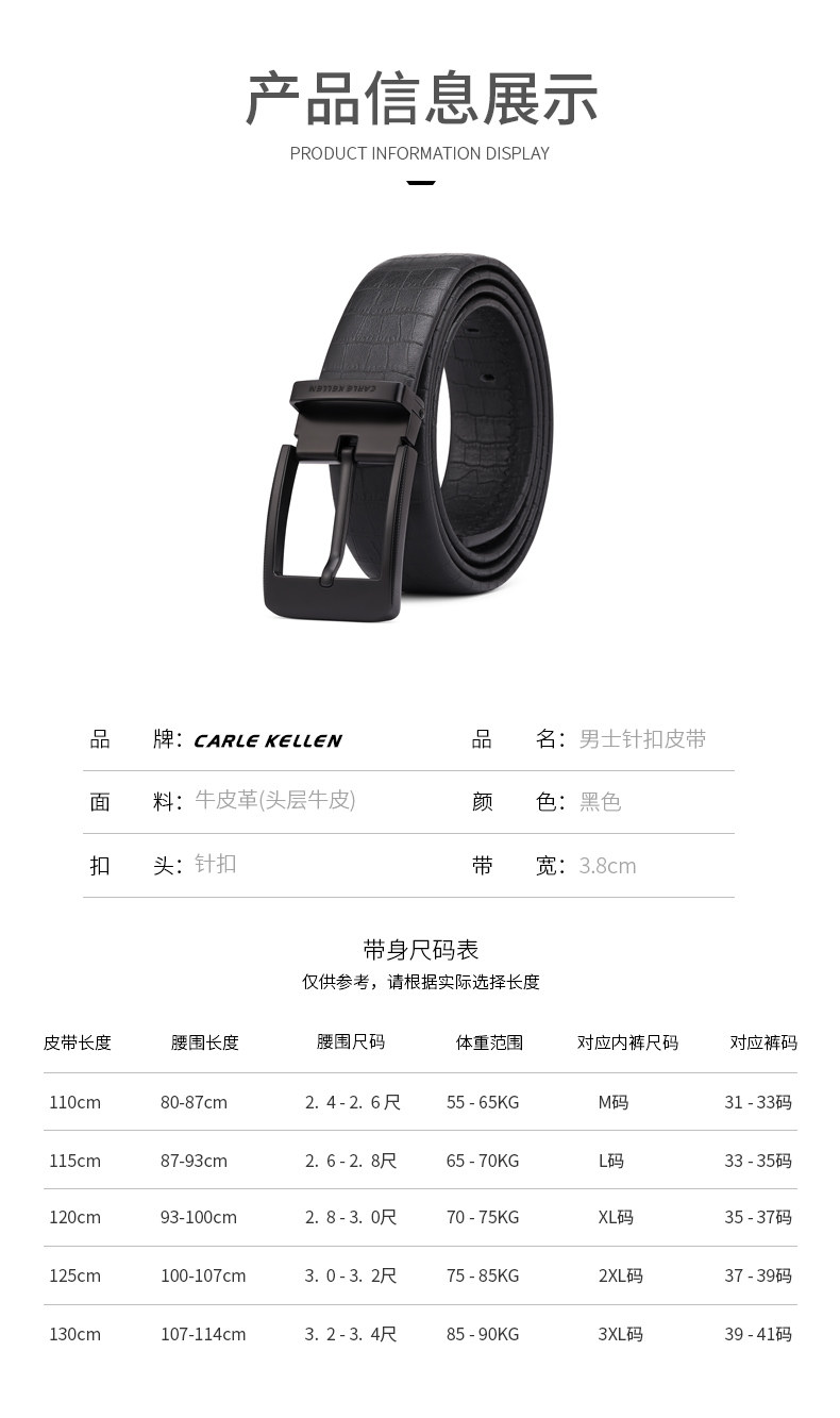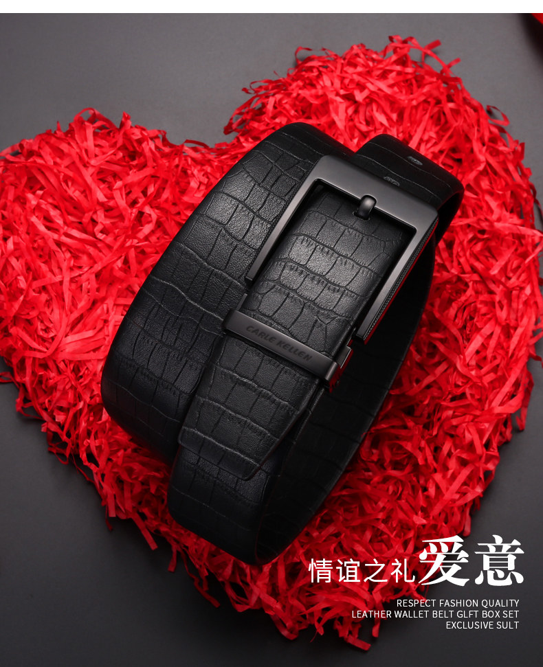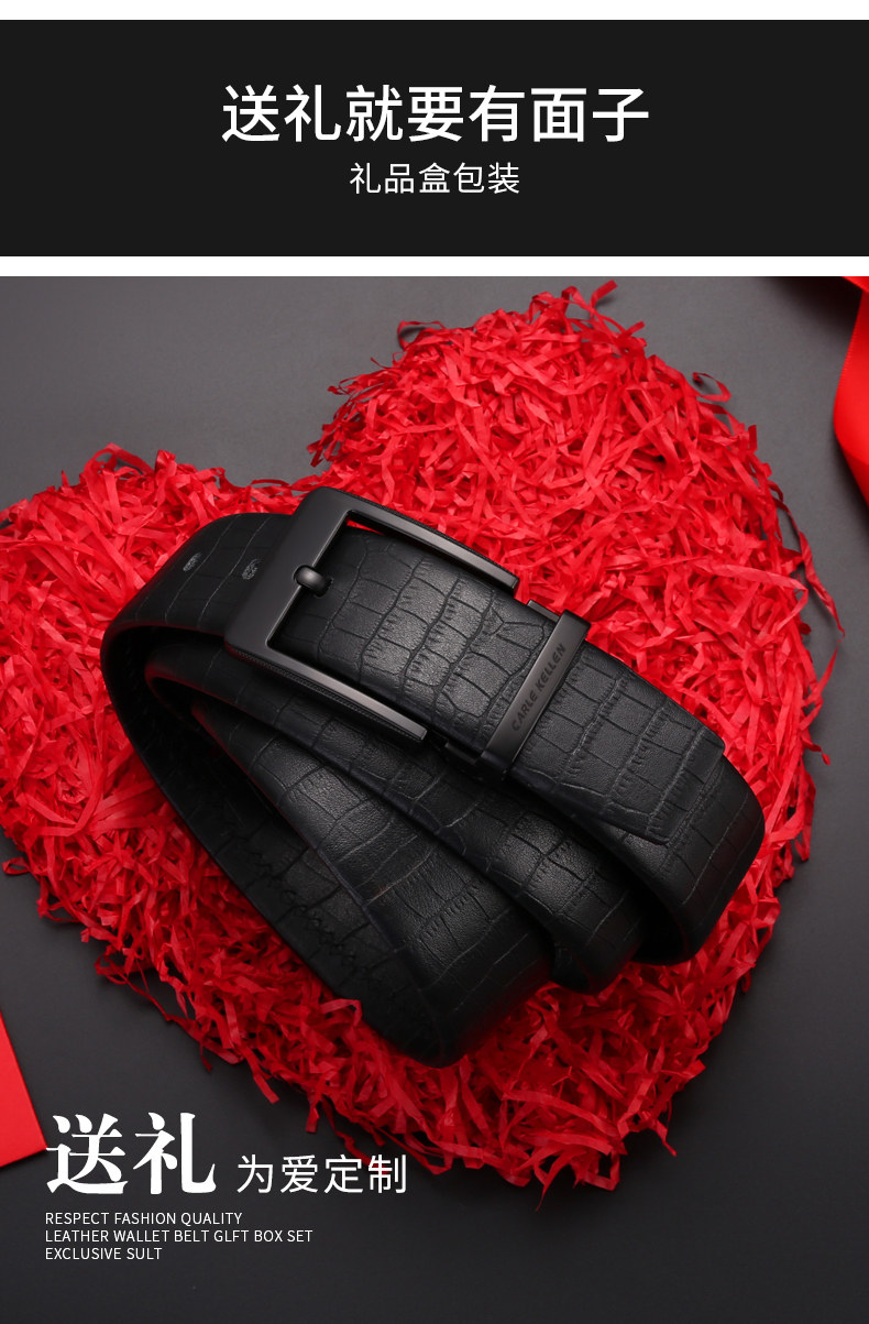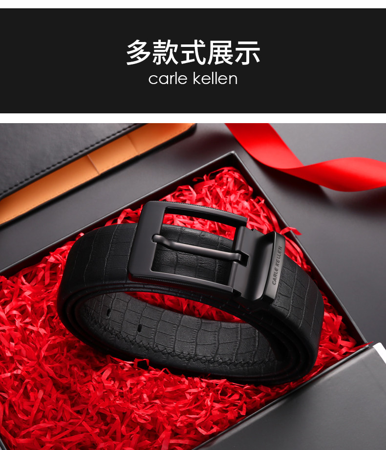 Carle Kellen Men's Genuine Leather Belt with Pin Buckle, Fashionable Crocodile Pattern, Casual Men's Belt, Trendy for Young People