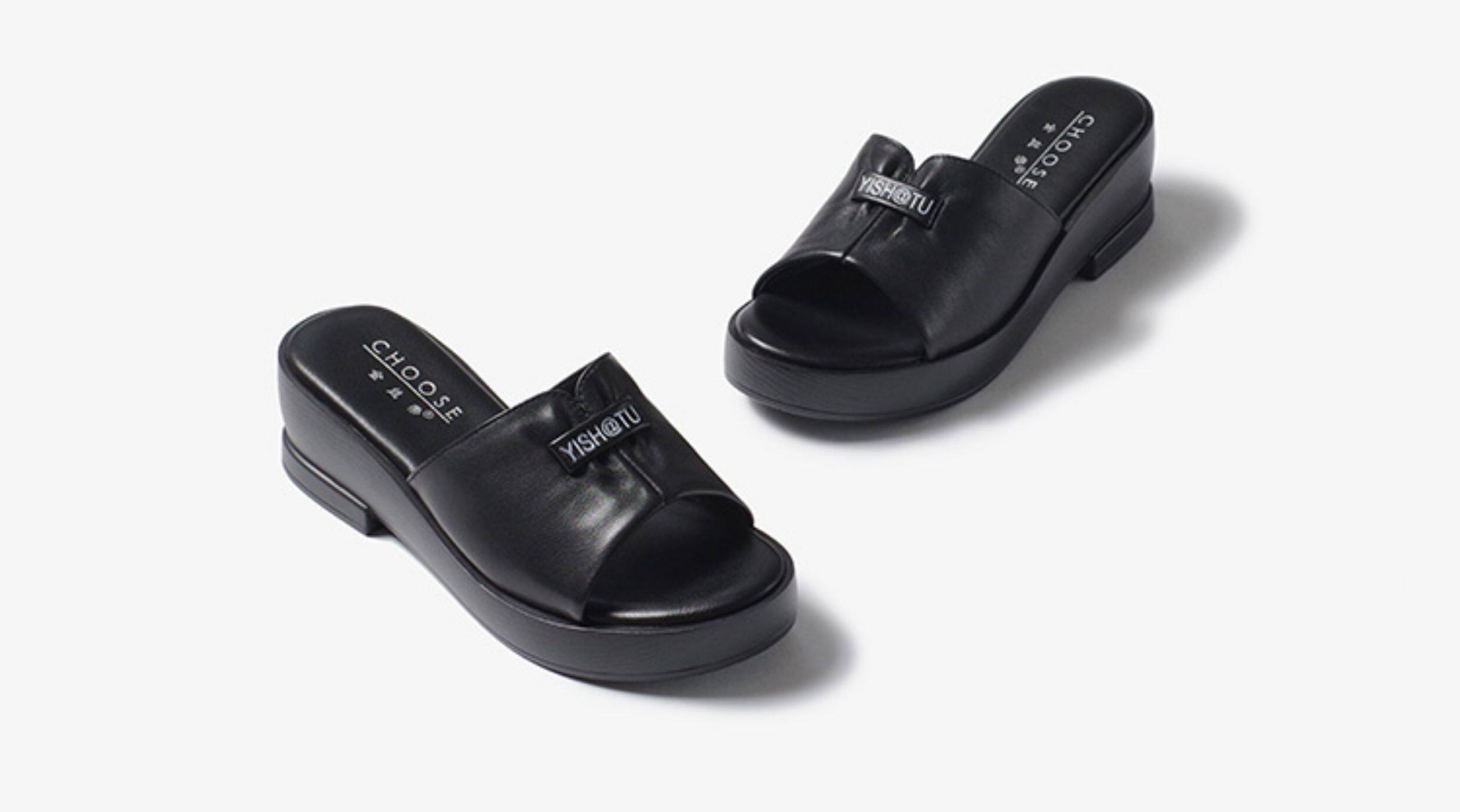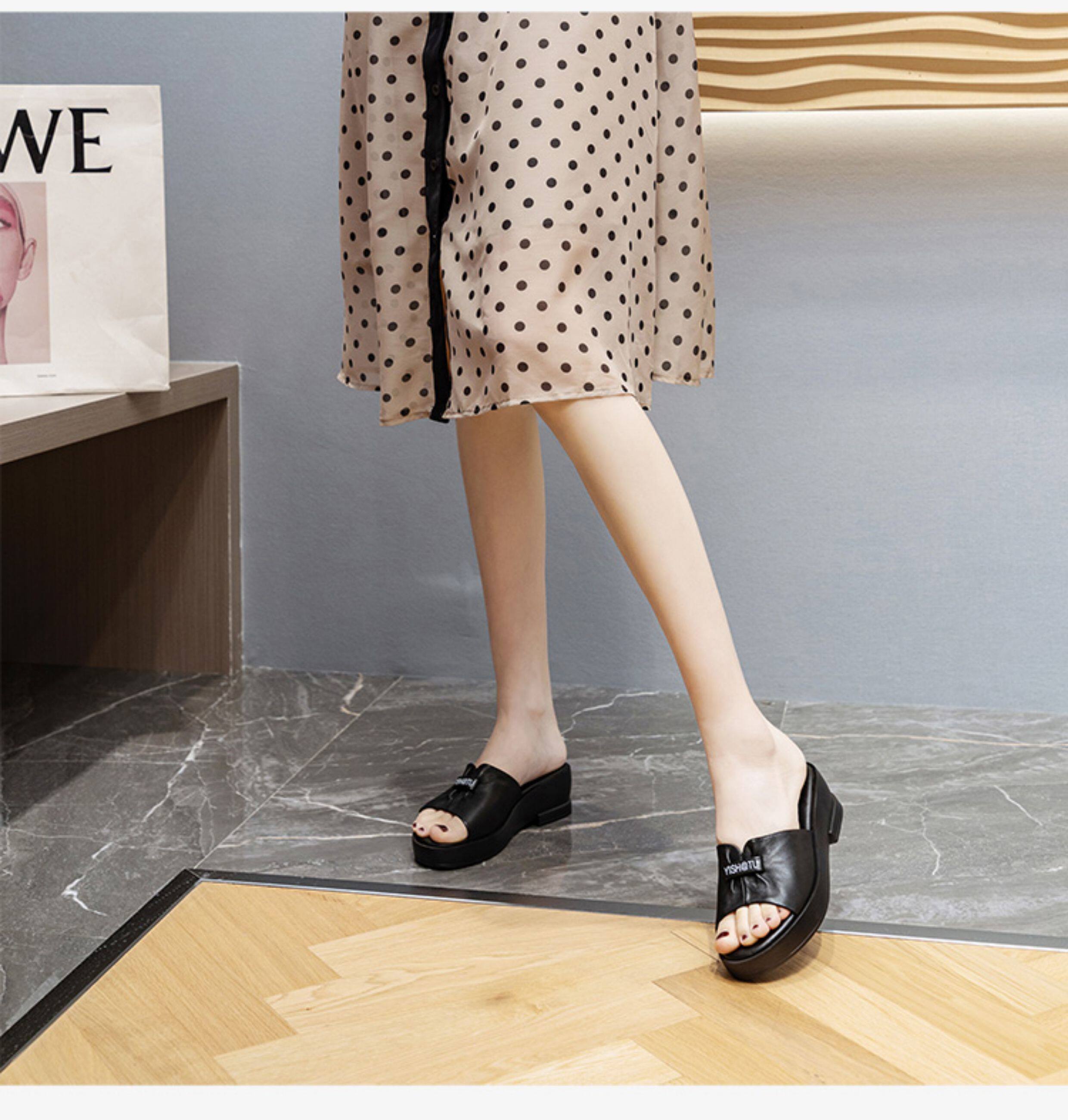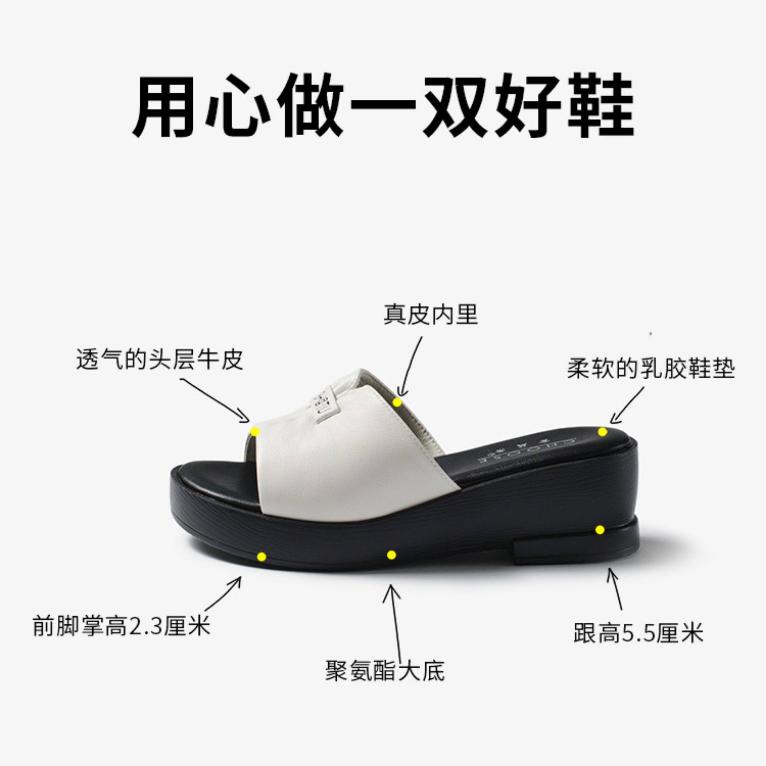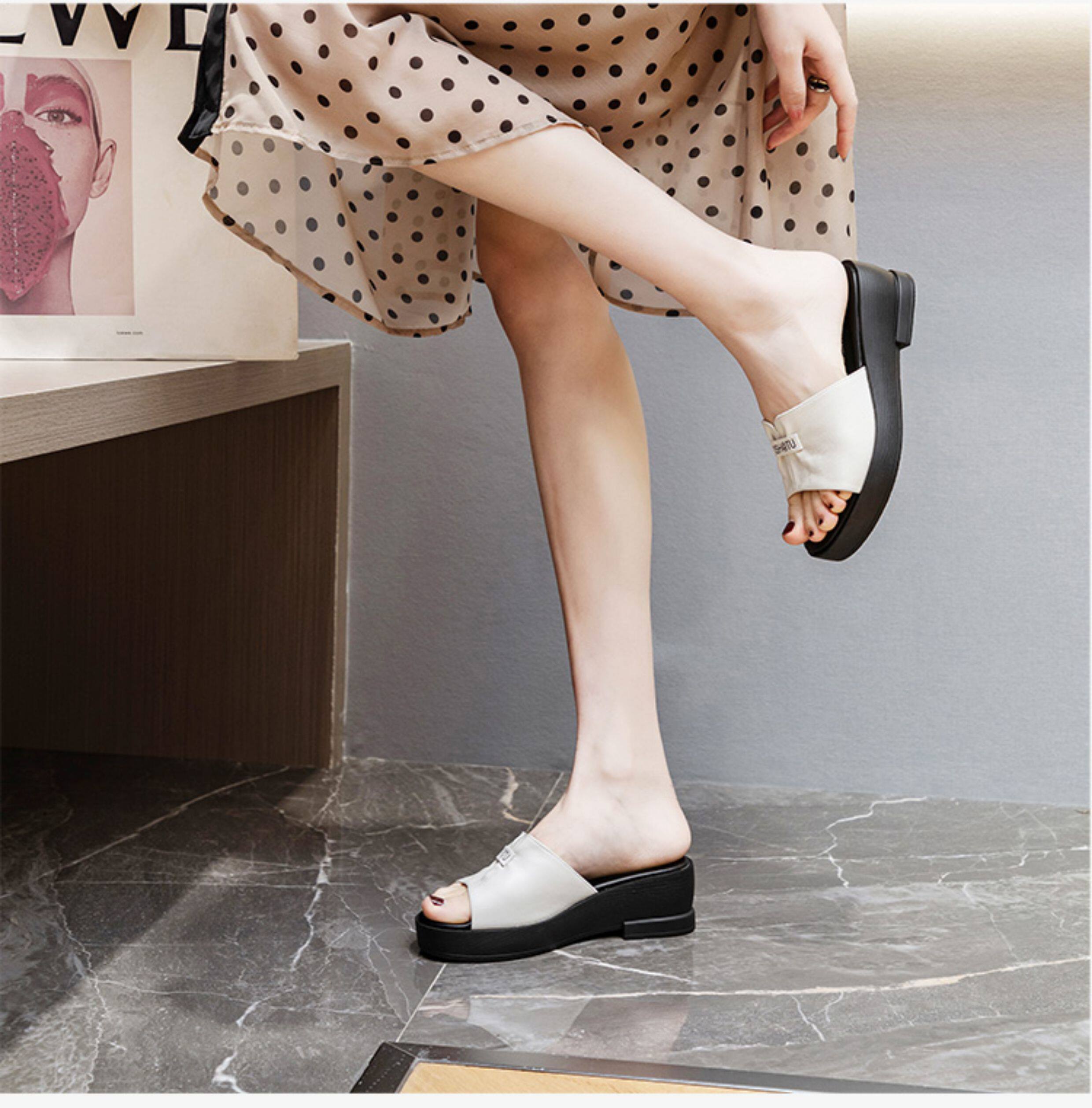 Genuine leather slippers for women thick-soled outer wear summer ladies sandals cowhide wedge sandals middle-aged new sandals mom
