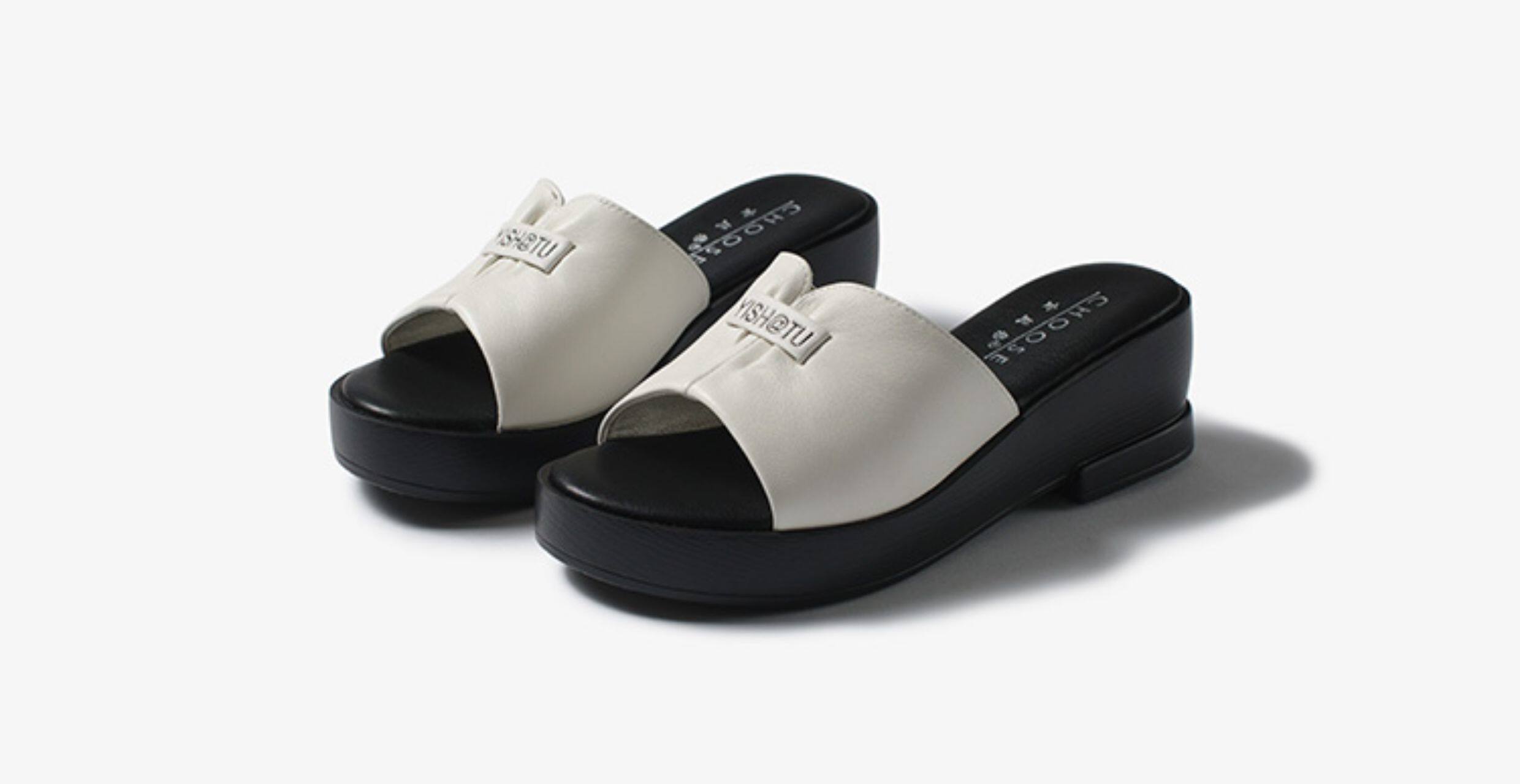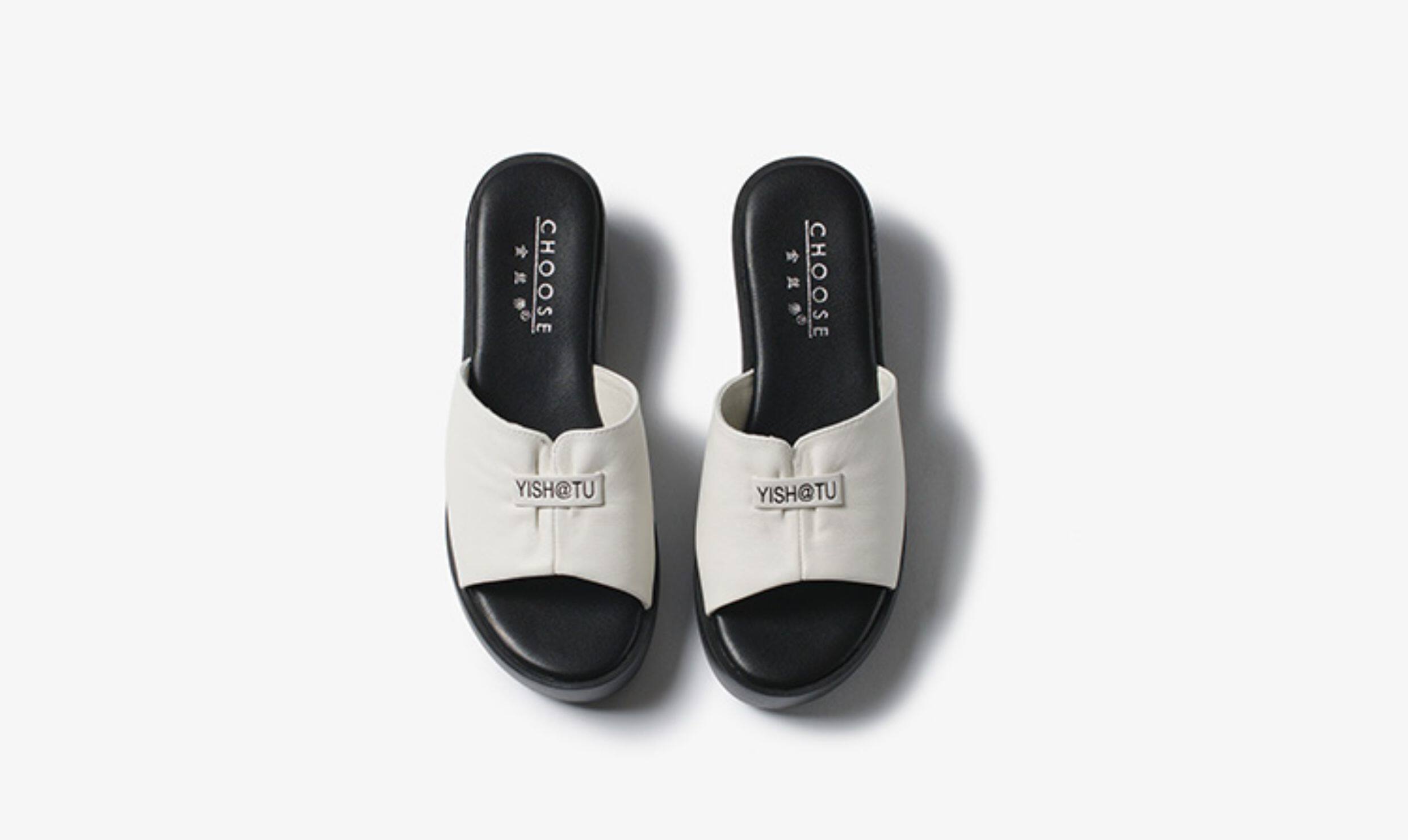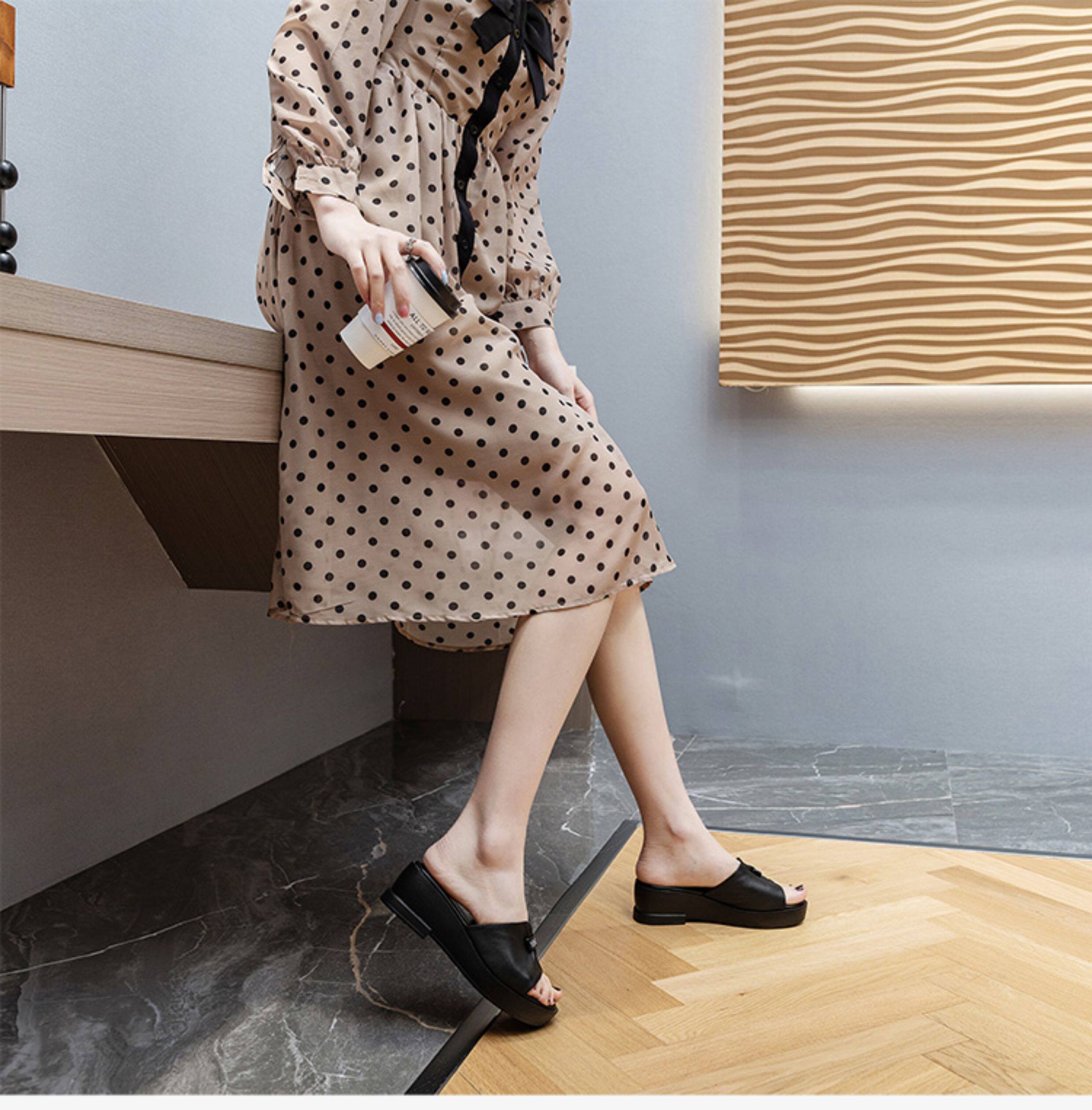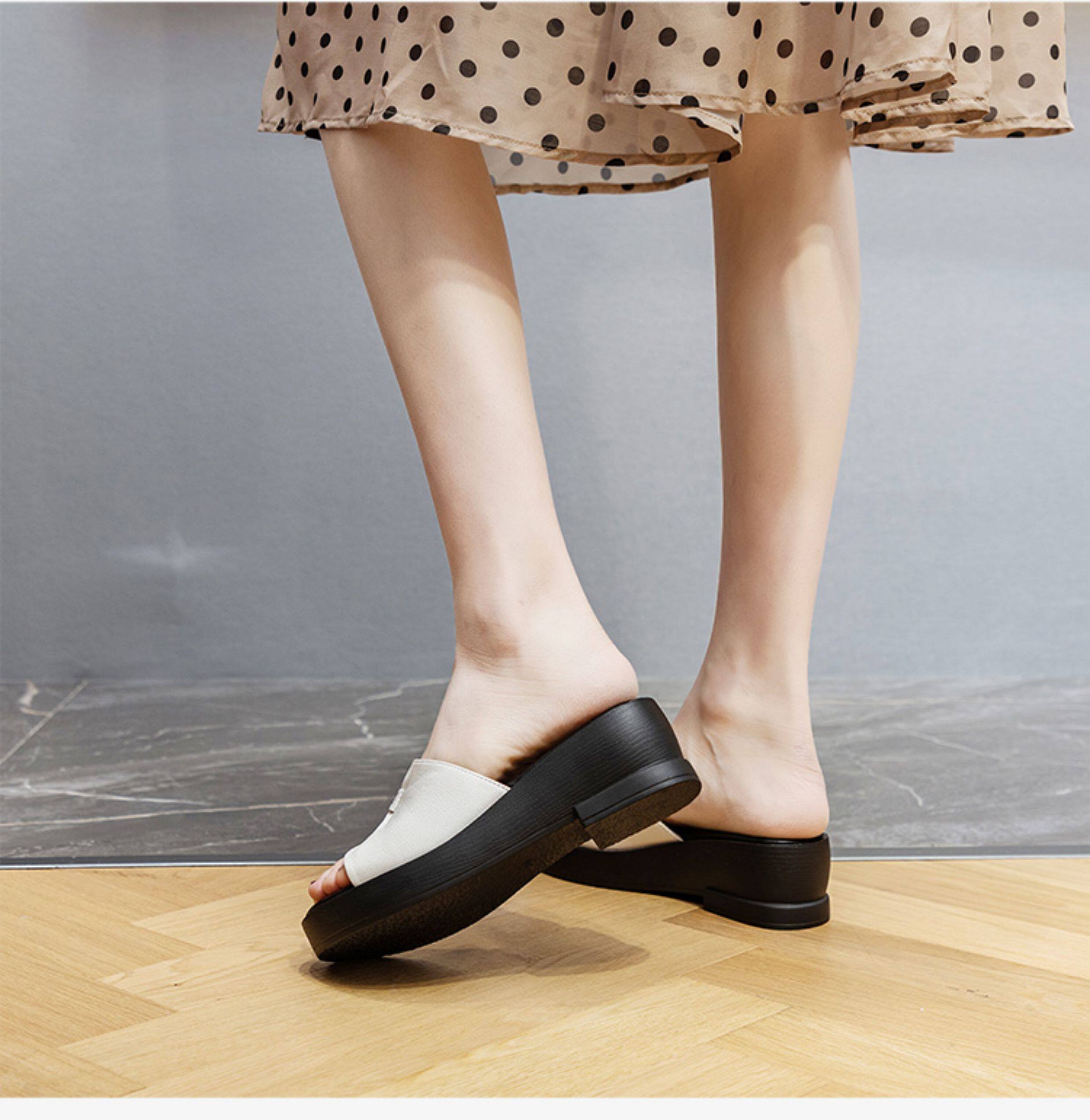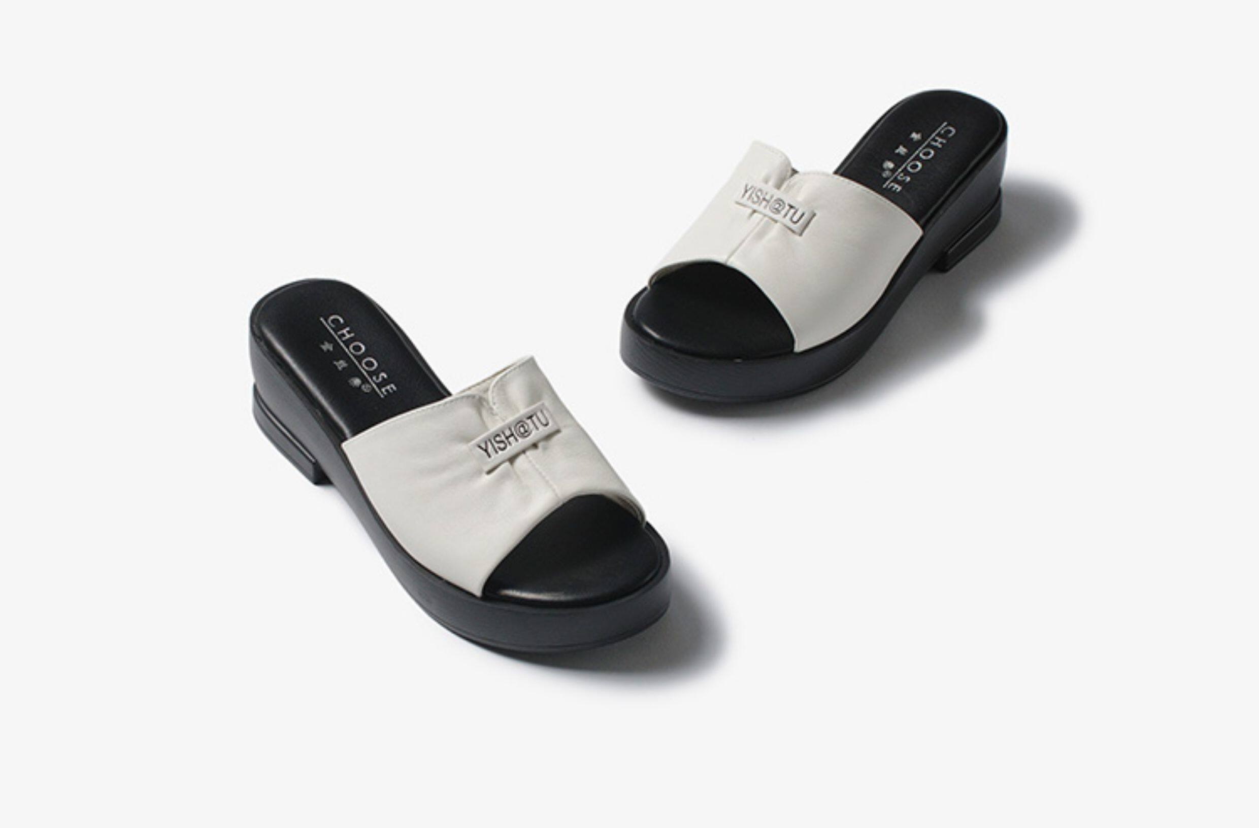 Genuine leather slippers for women thick-soled outer wear summer ladies sandals cowhide wedge sandals middle-aged new sandals mom