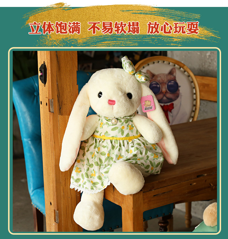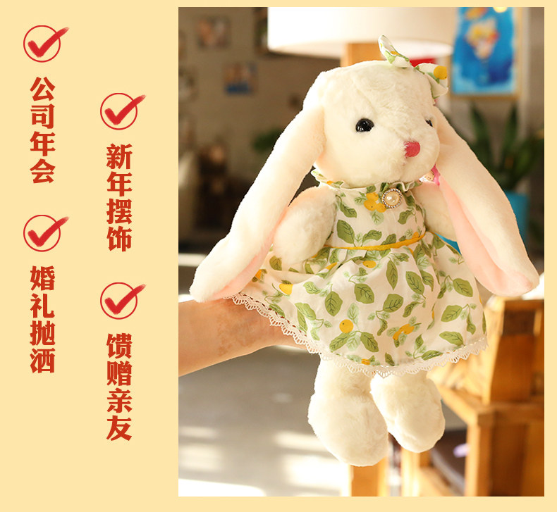 Cute bunny plush toy doll, long-haired bunny doll, children's birthday gift, doll pillow for girls