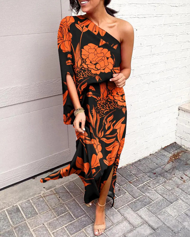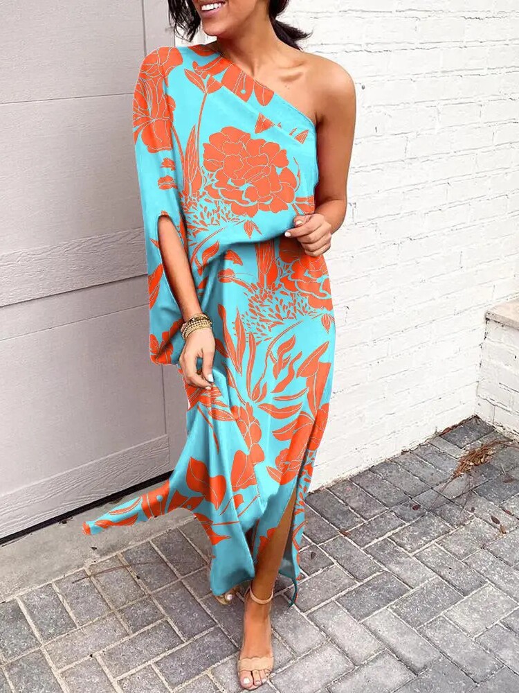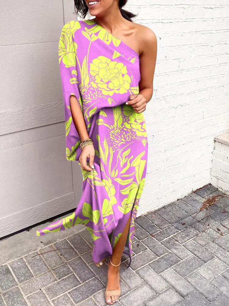 Sexy one shoulder dress European and American sexy fashion oblique shoulder one-sleeve dress for women