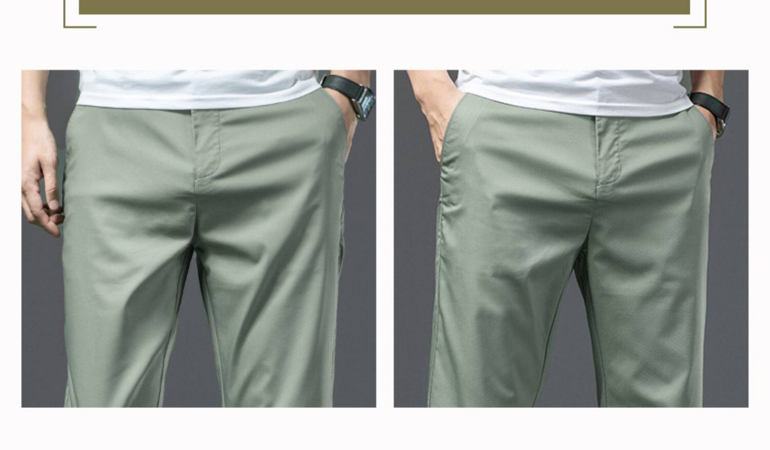 High-End Ice Silk Casual Pants for Men, Loose Straight-Leg Summer Thin Business Pants, Army Green Men's Pants, Ultra-Thin Long Pants