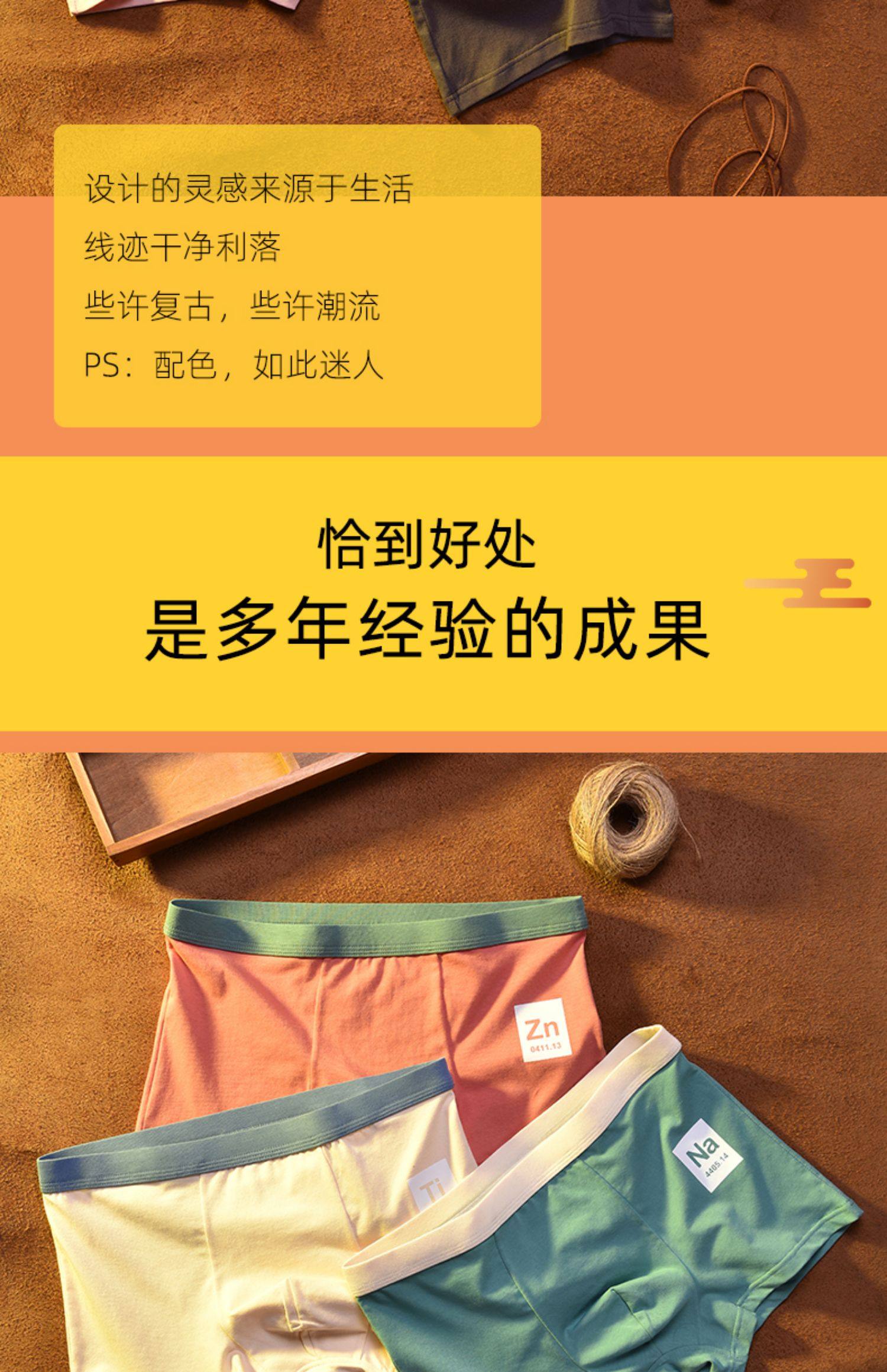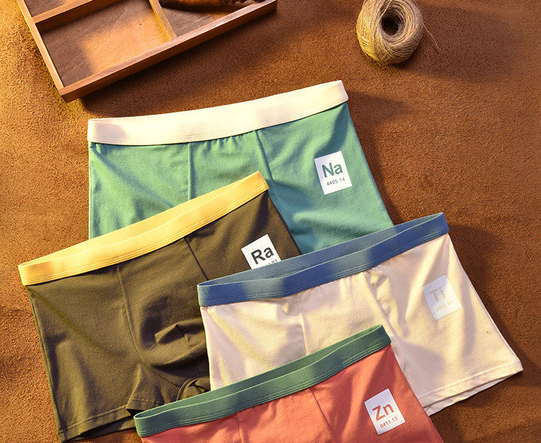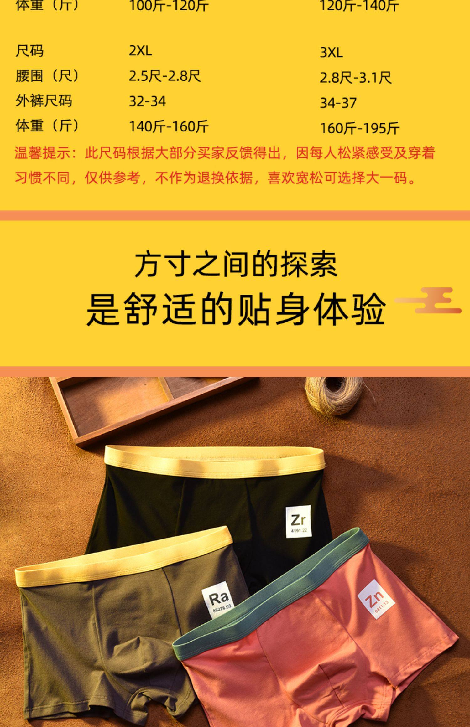 全棉高档潮牌男士内裤纯棉透气四角裤潮流个性青年简约男生平角款