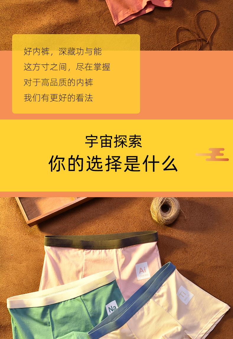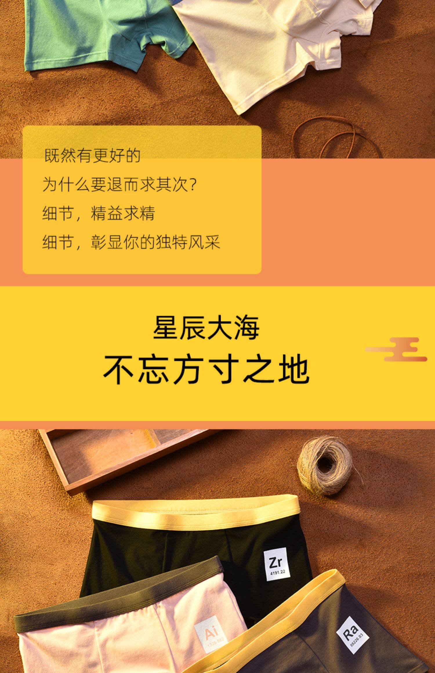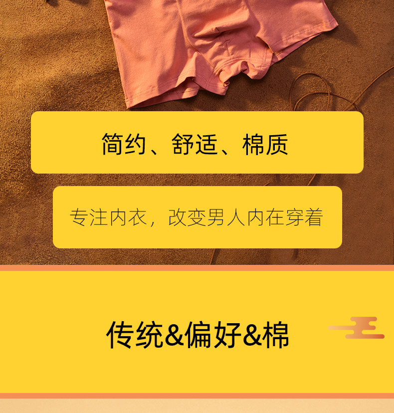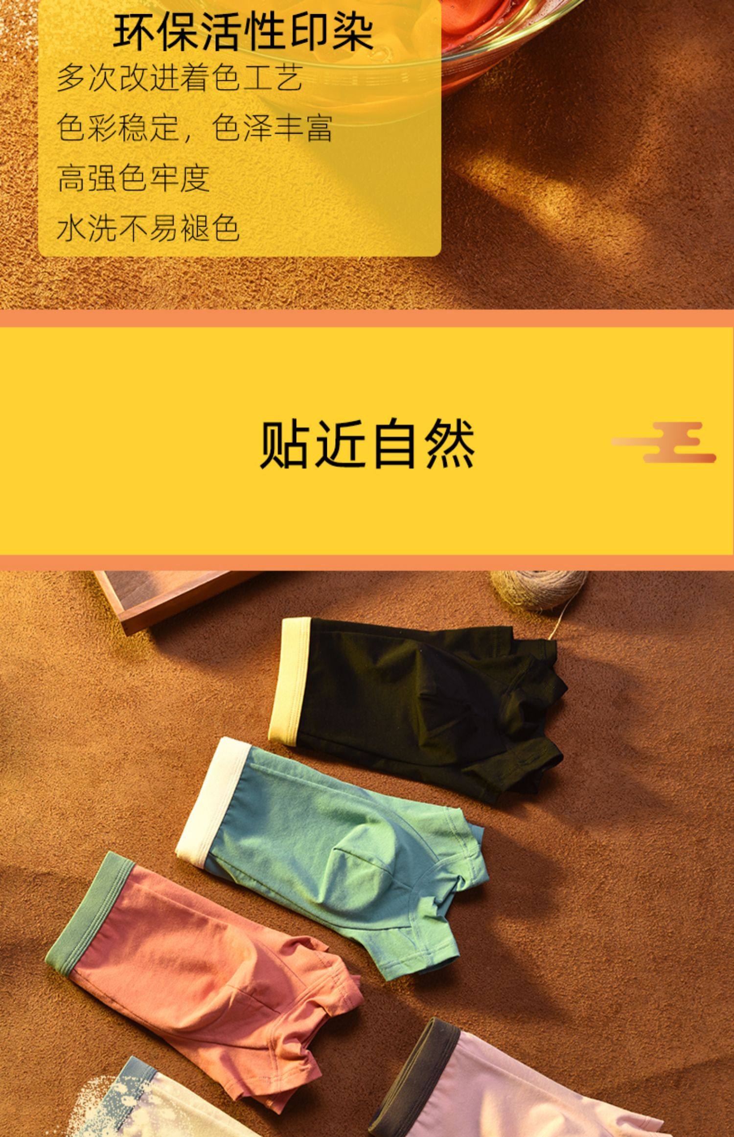 全棉高档潮牌男士内裤纯棉透气四角裤潮流个性青年简约男生平角款