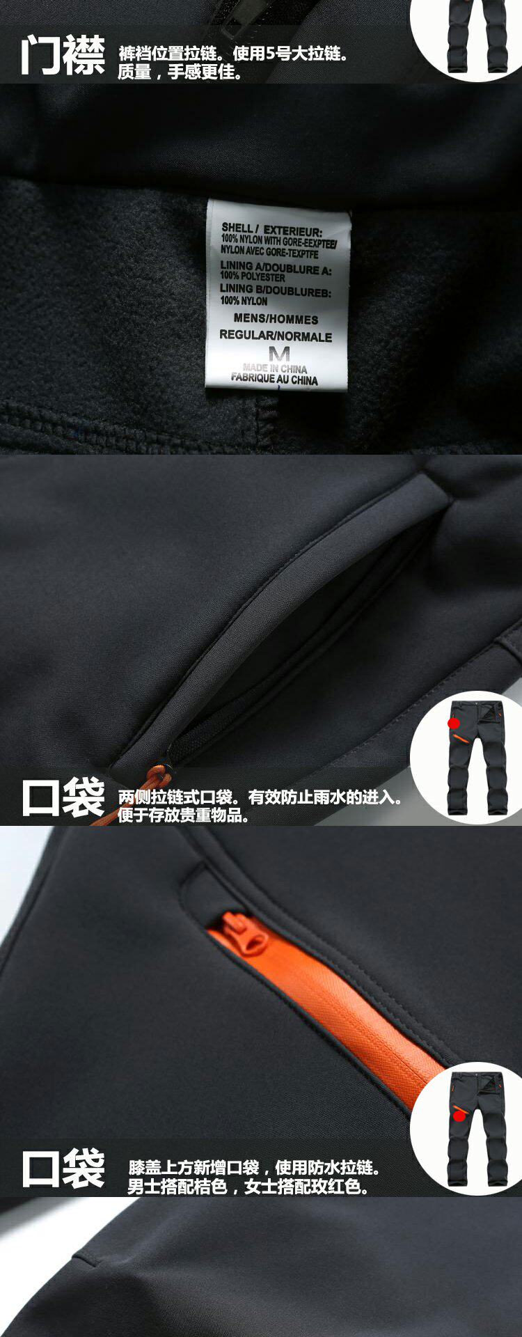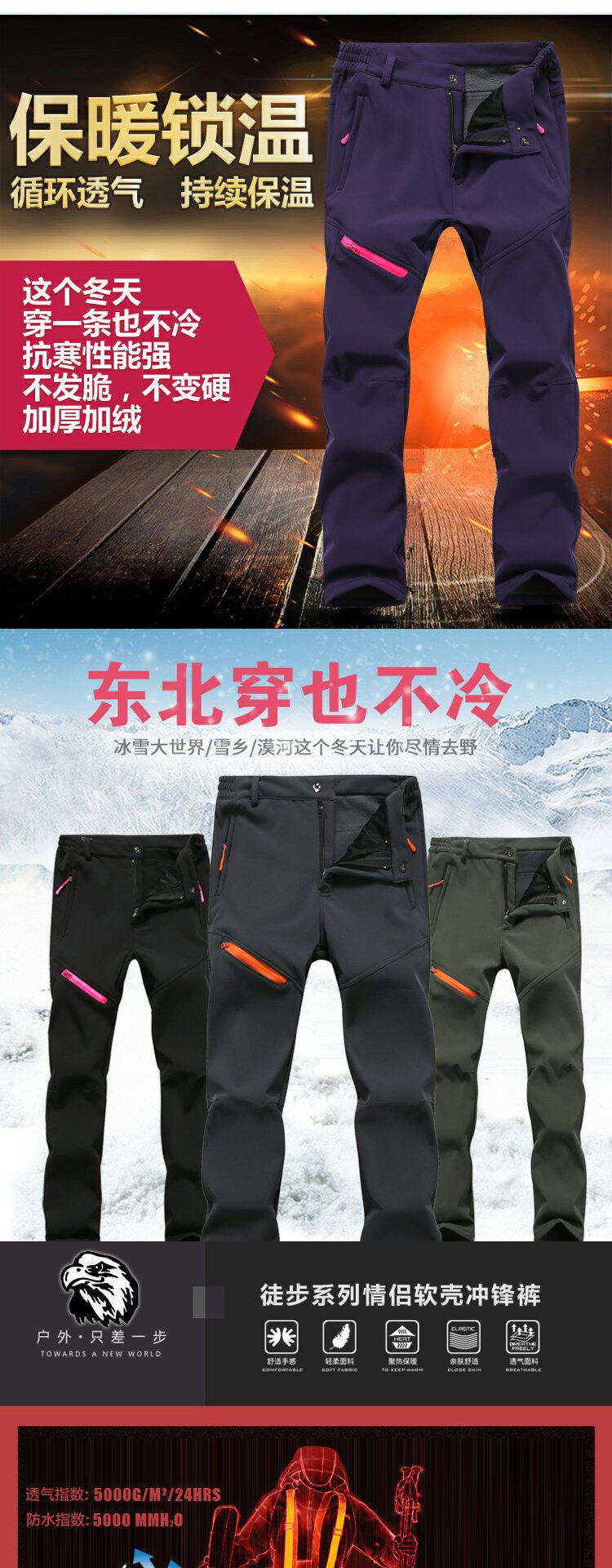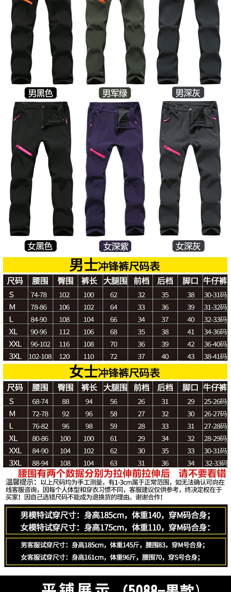New Style Softshell Pants for Men and Women, Windproof, Waterproof, Fleece-Lined, Outdoor Autumn and Winter Hiking Warm Mountaineering Pants