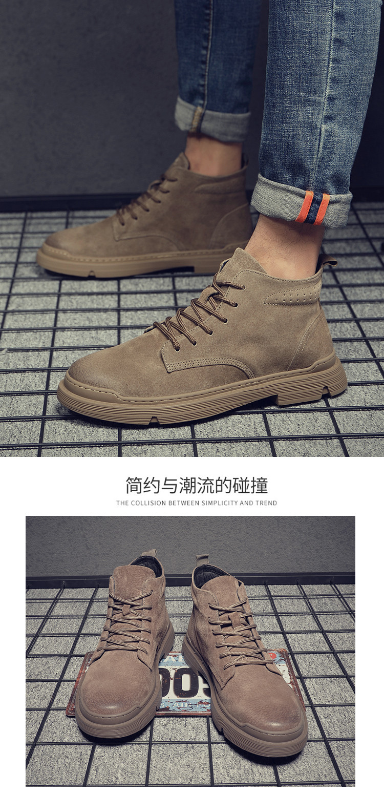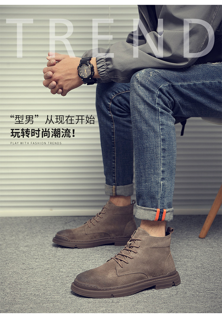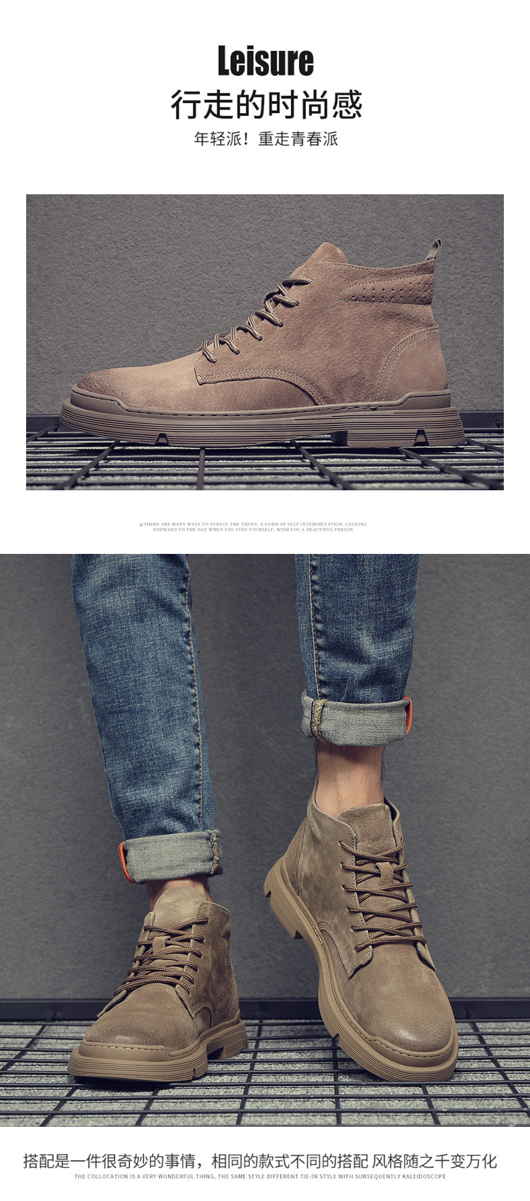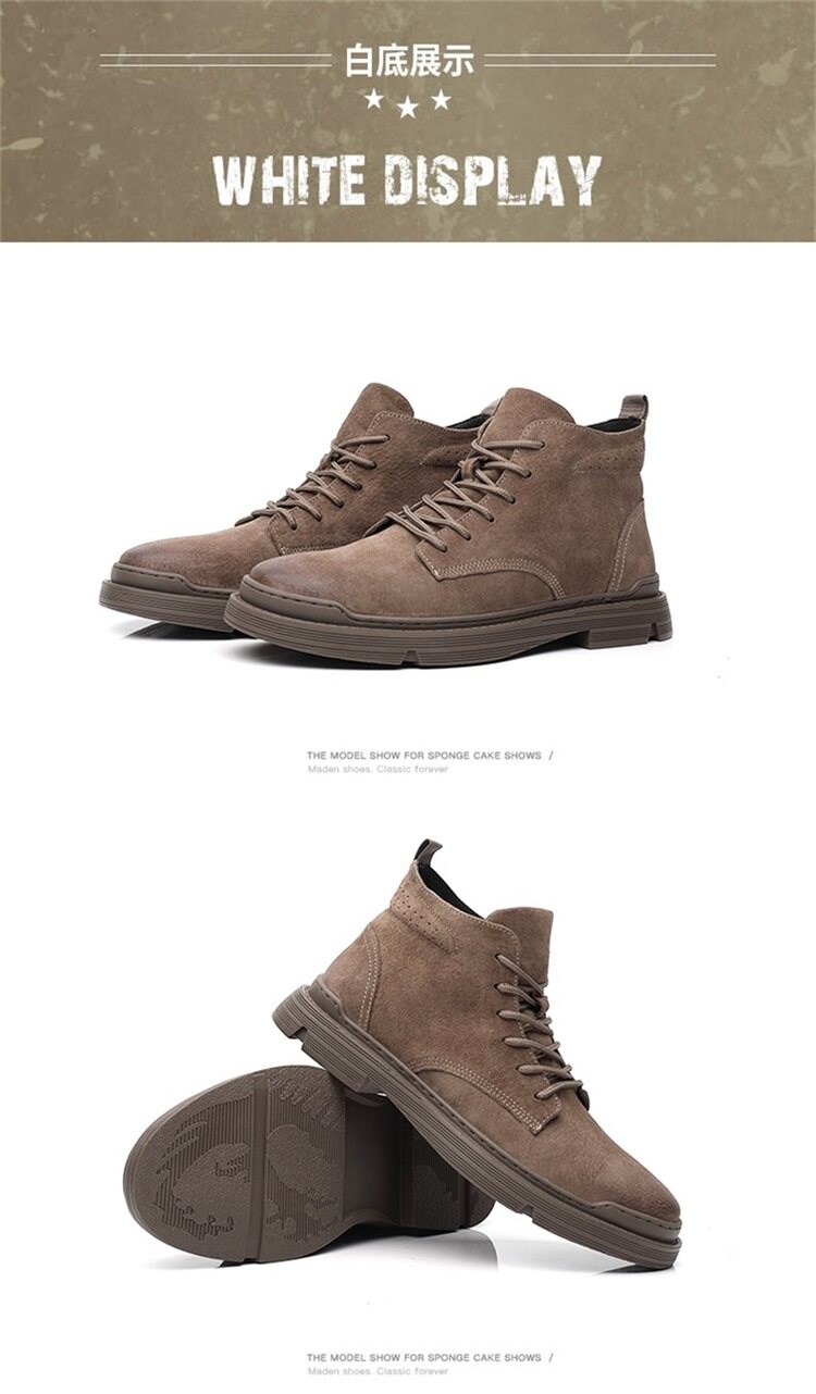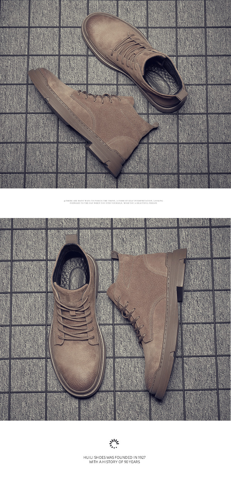 Martin Boots for Men, Winter Fleece-Lined High-Top Shoes, British Style Genuine Leather Short Boots, Mid-Top Retro Trendy Casual Work Boots