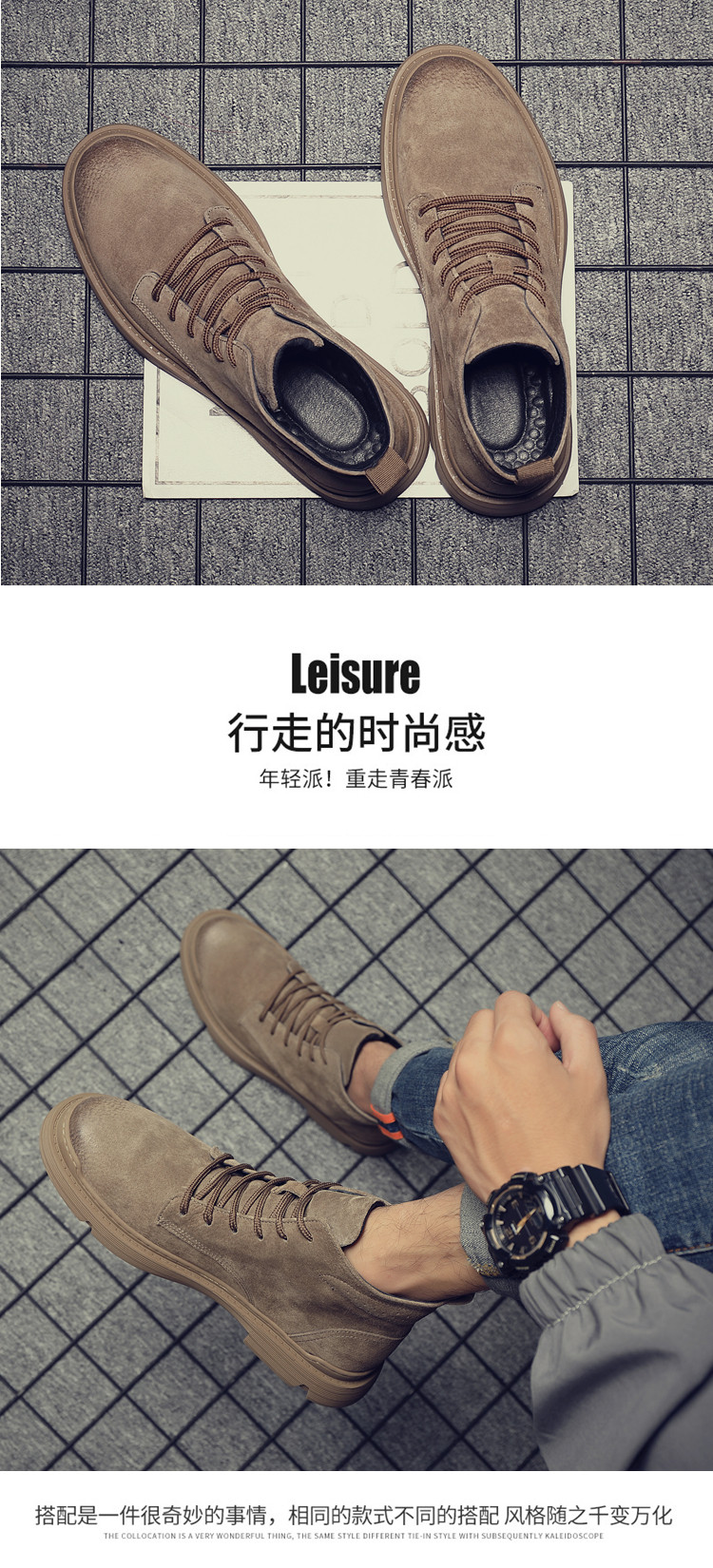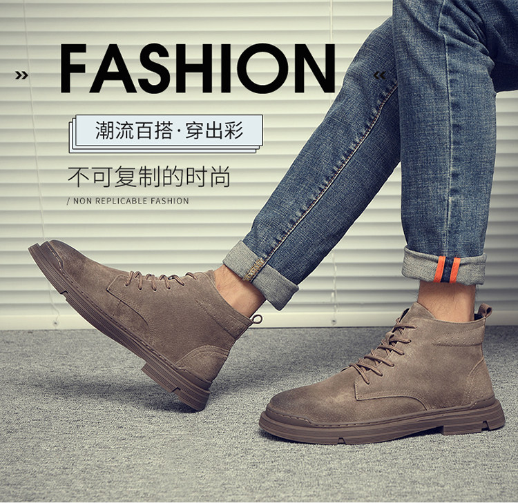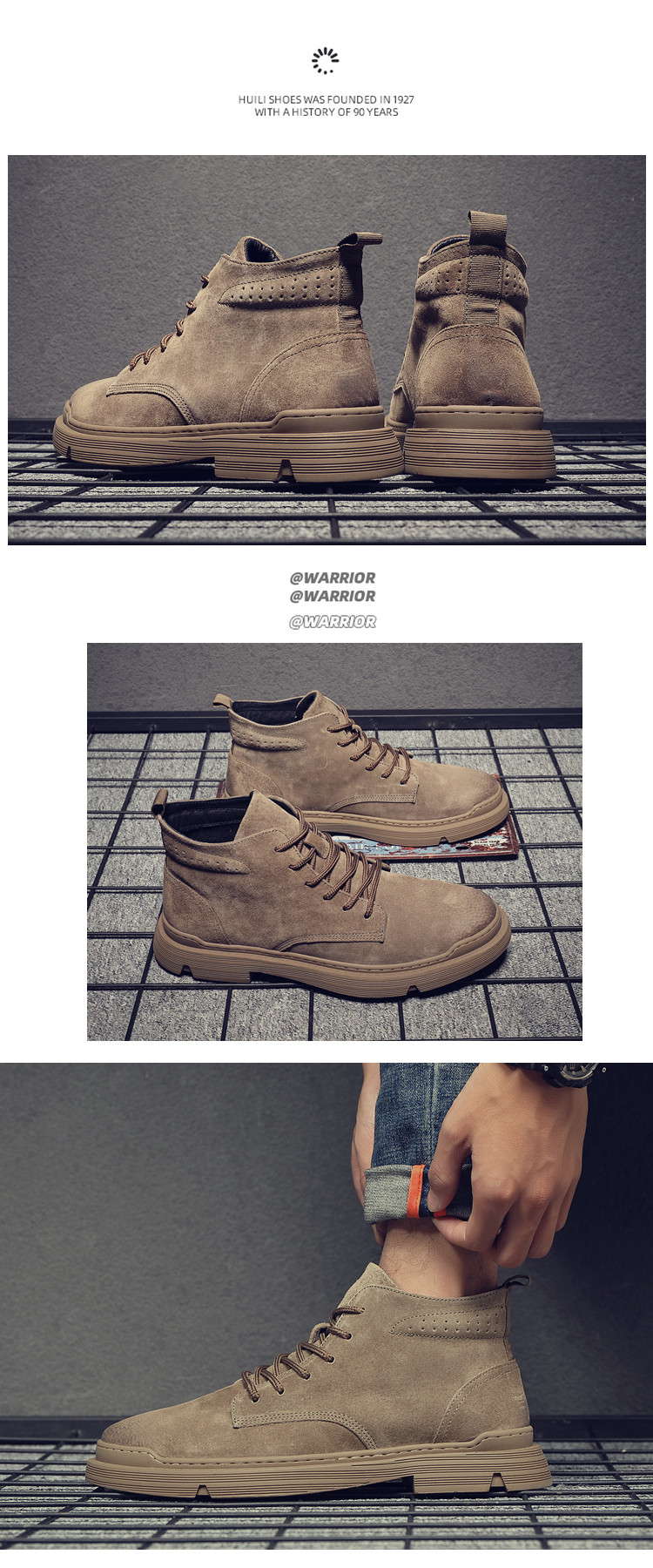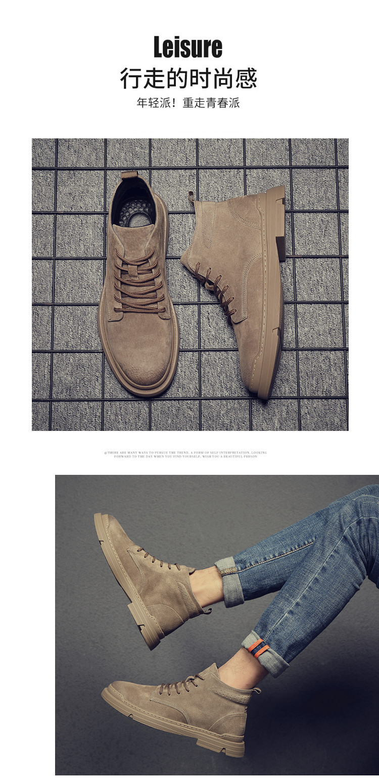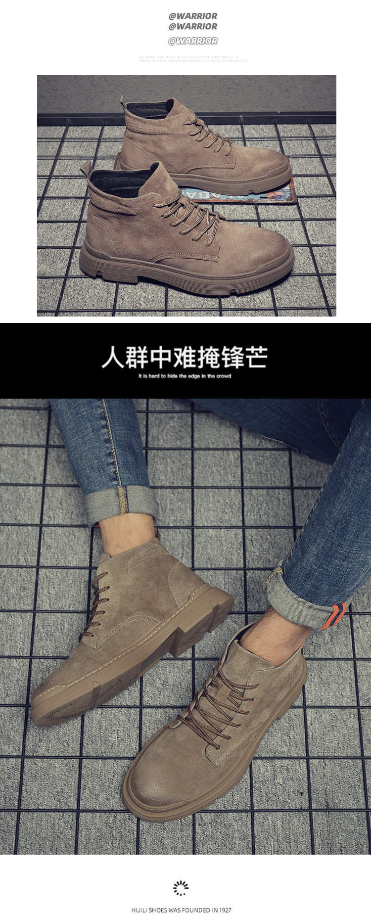 Martin Boots for Men, Winter Fleece-Lined High-Top Shoes, British Style Genuine Leather Short Boots, Mid-Top Retro Trendy Casual Work Boots