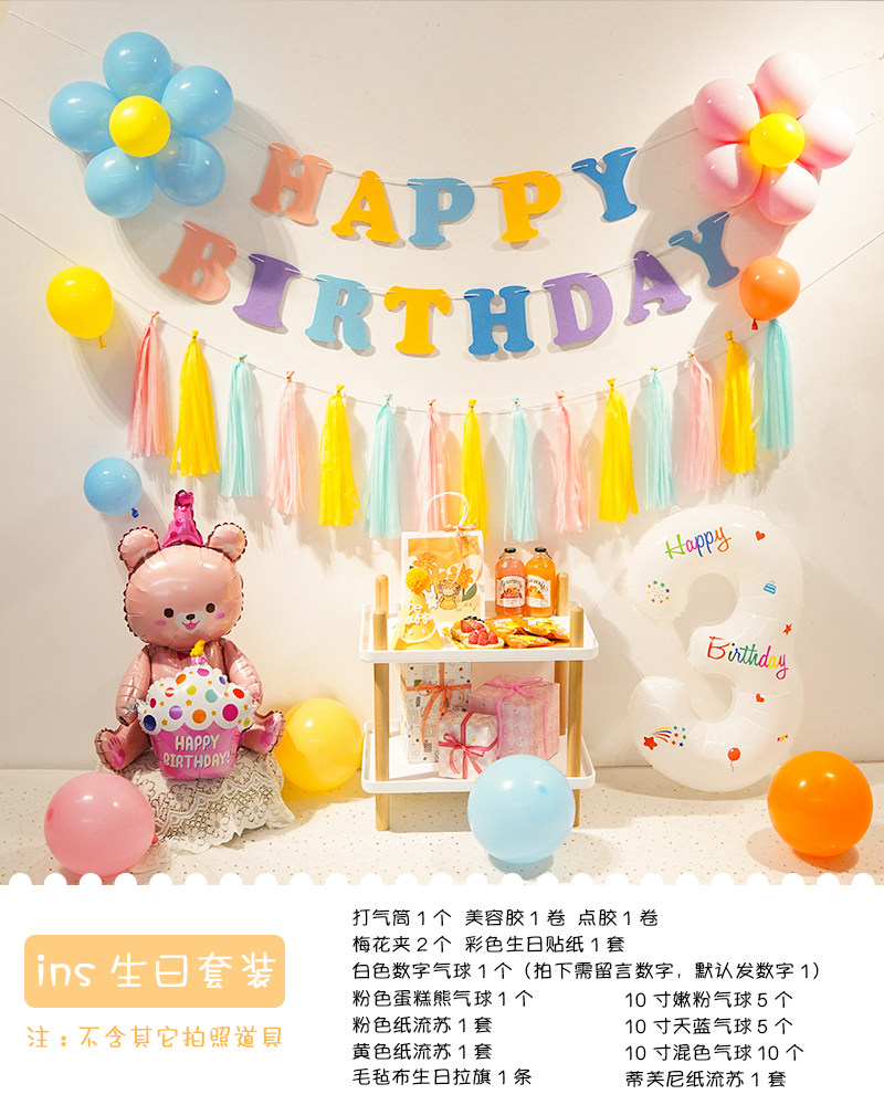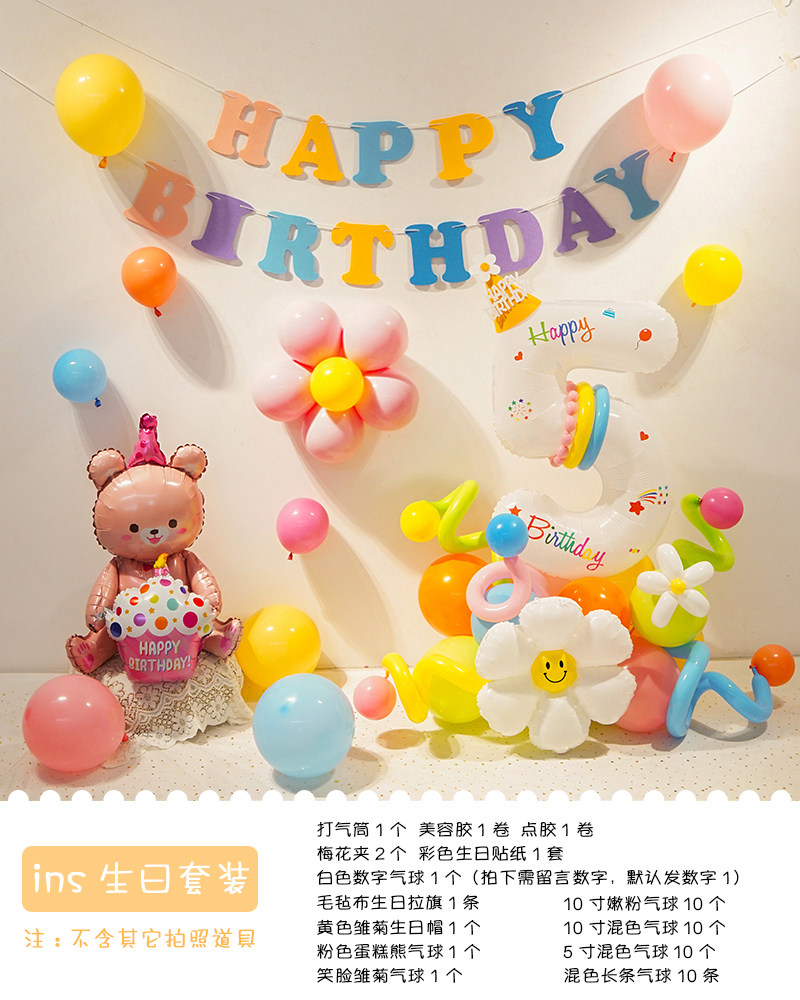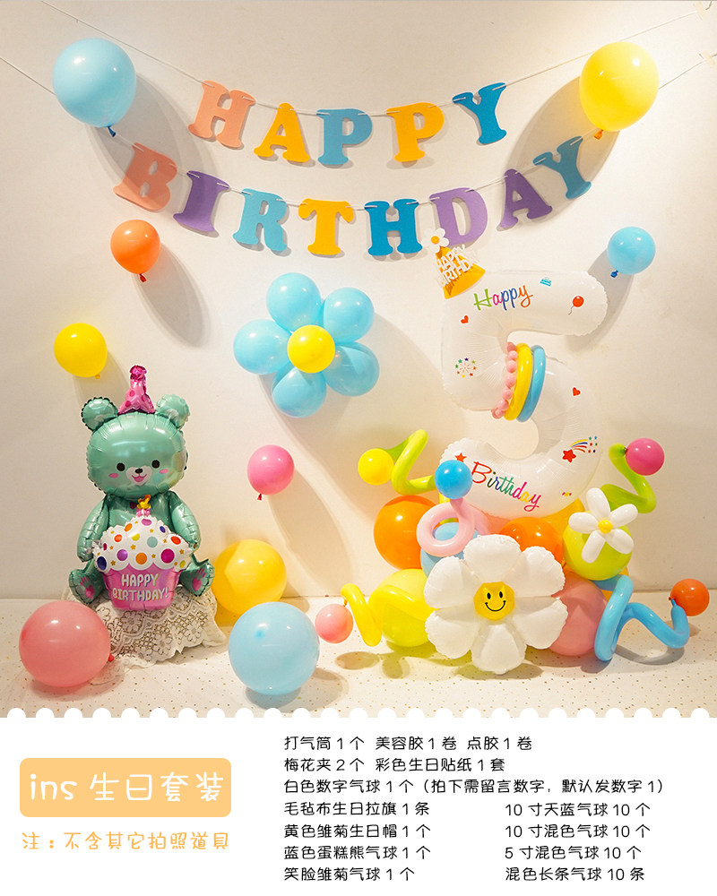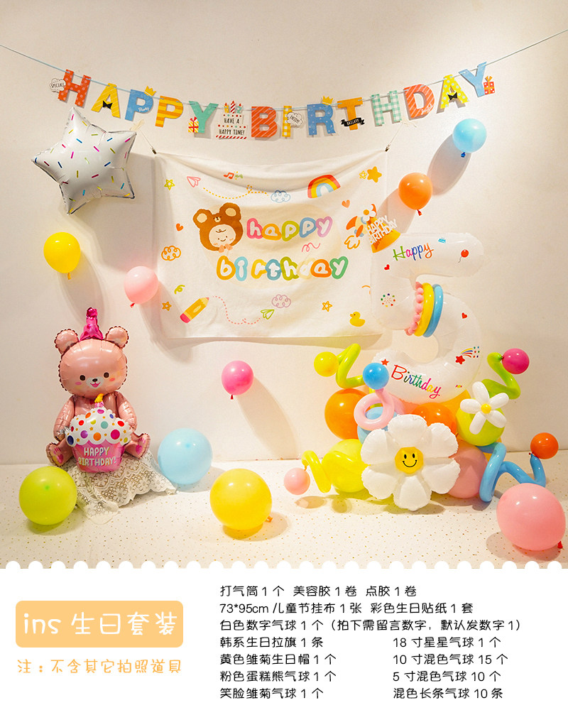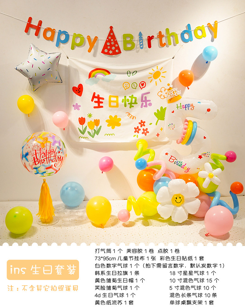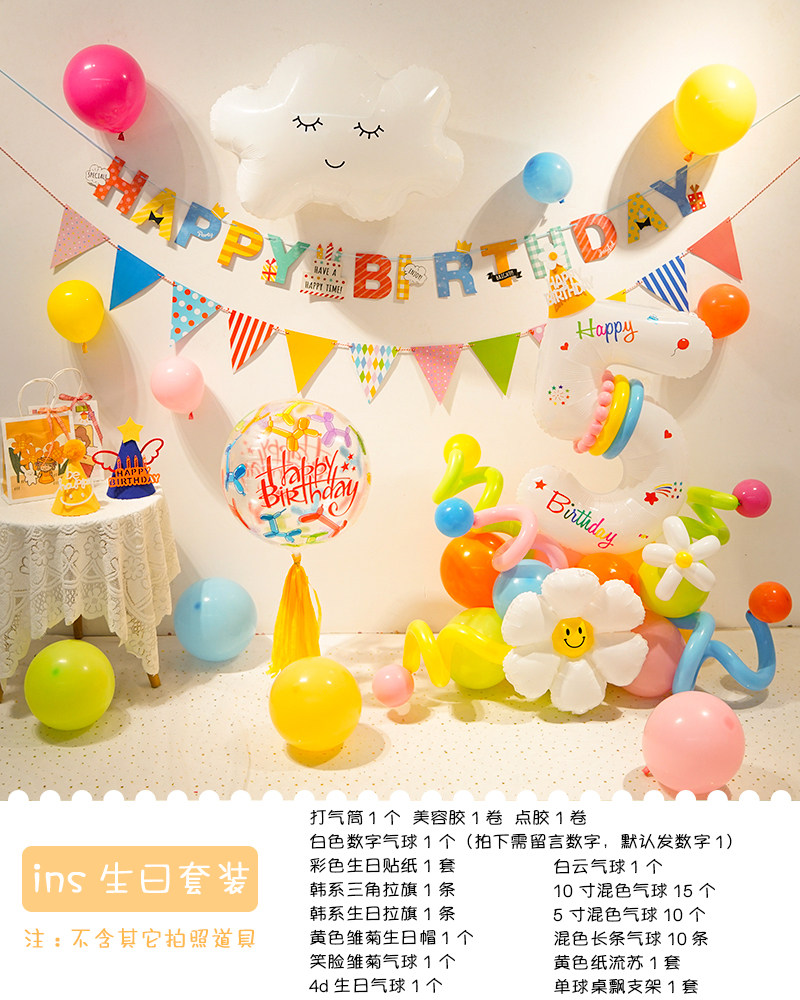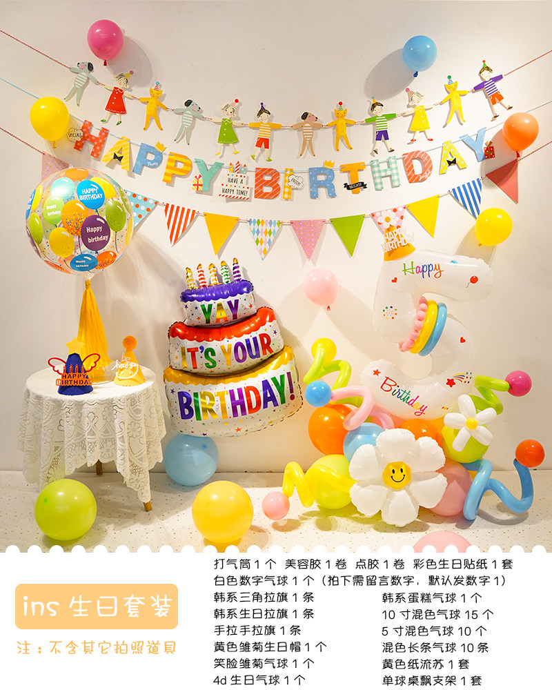 Ins boys and girls colorful digital birthday balloons arrangement background wall one-year-old children party birthday hat dress up