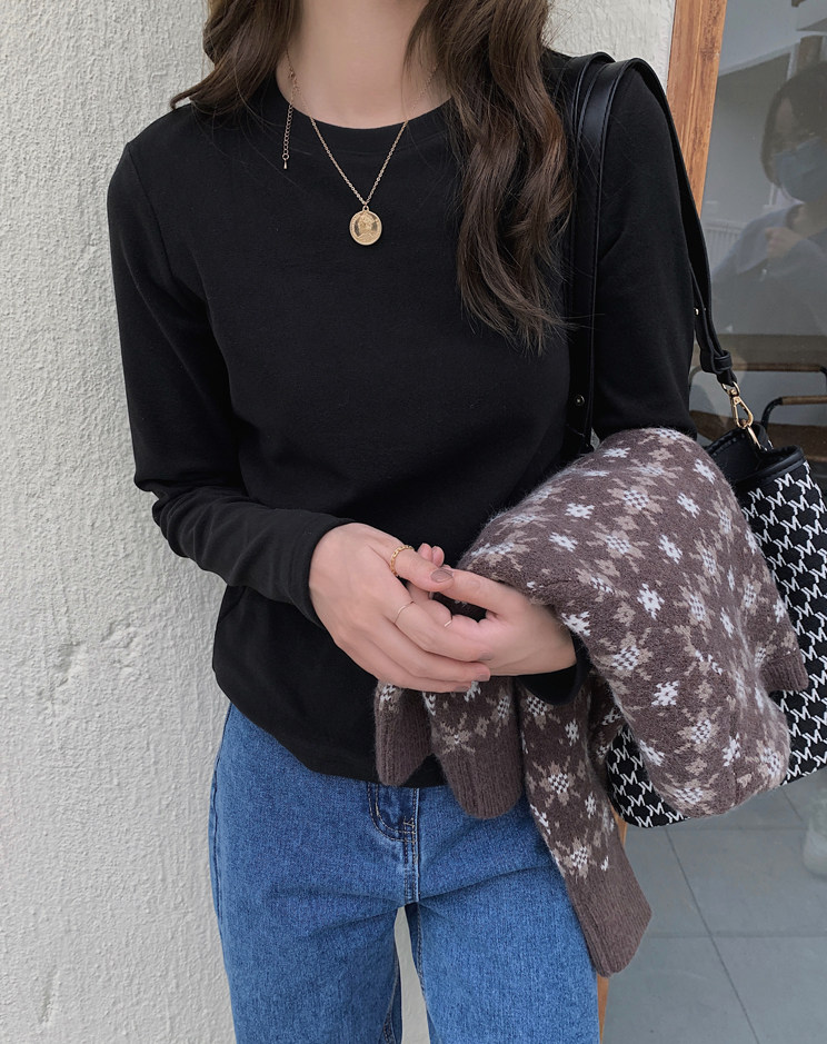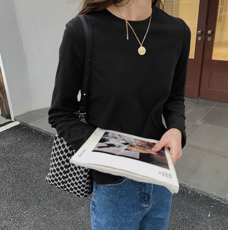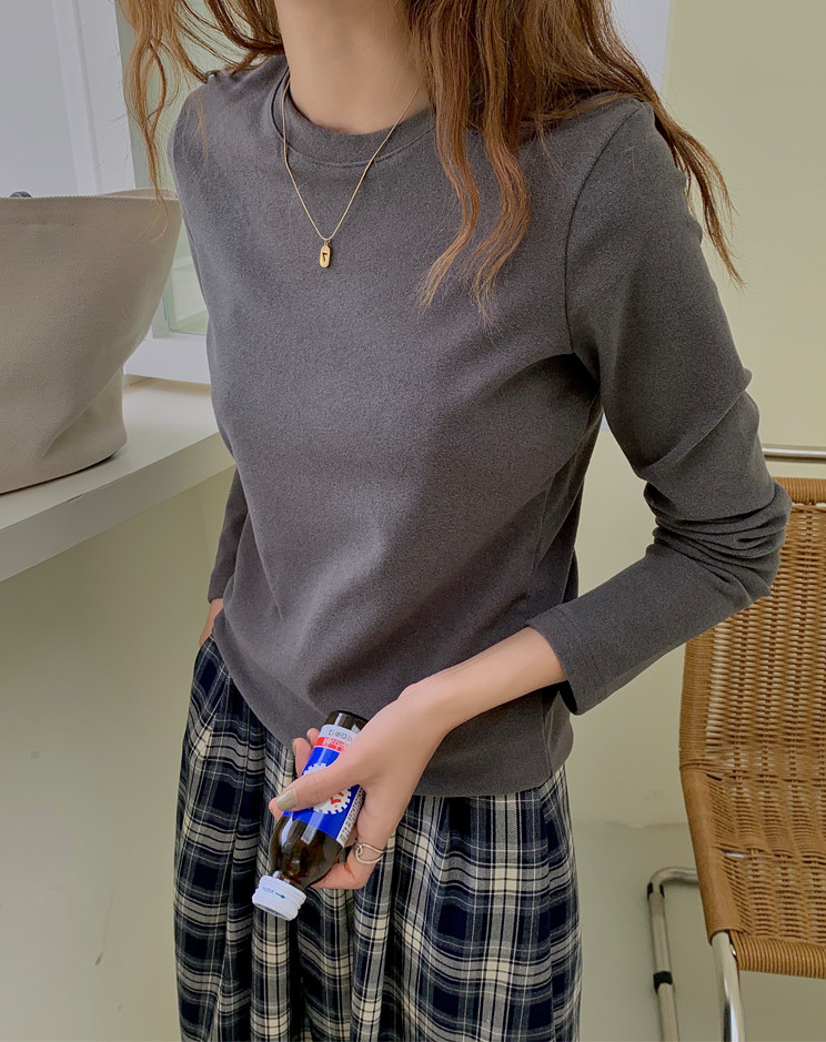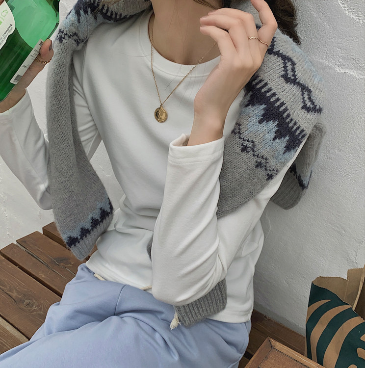 German velvet bottoming shirt for women in autumn and winter new slim fit white thickened brushed long-sleeved T-shirt round neck inner top