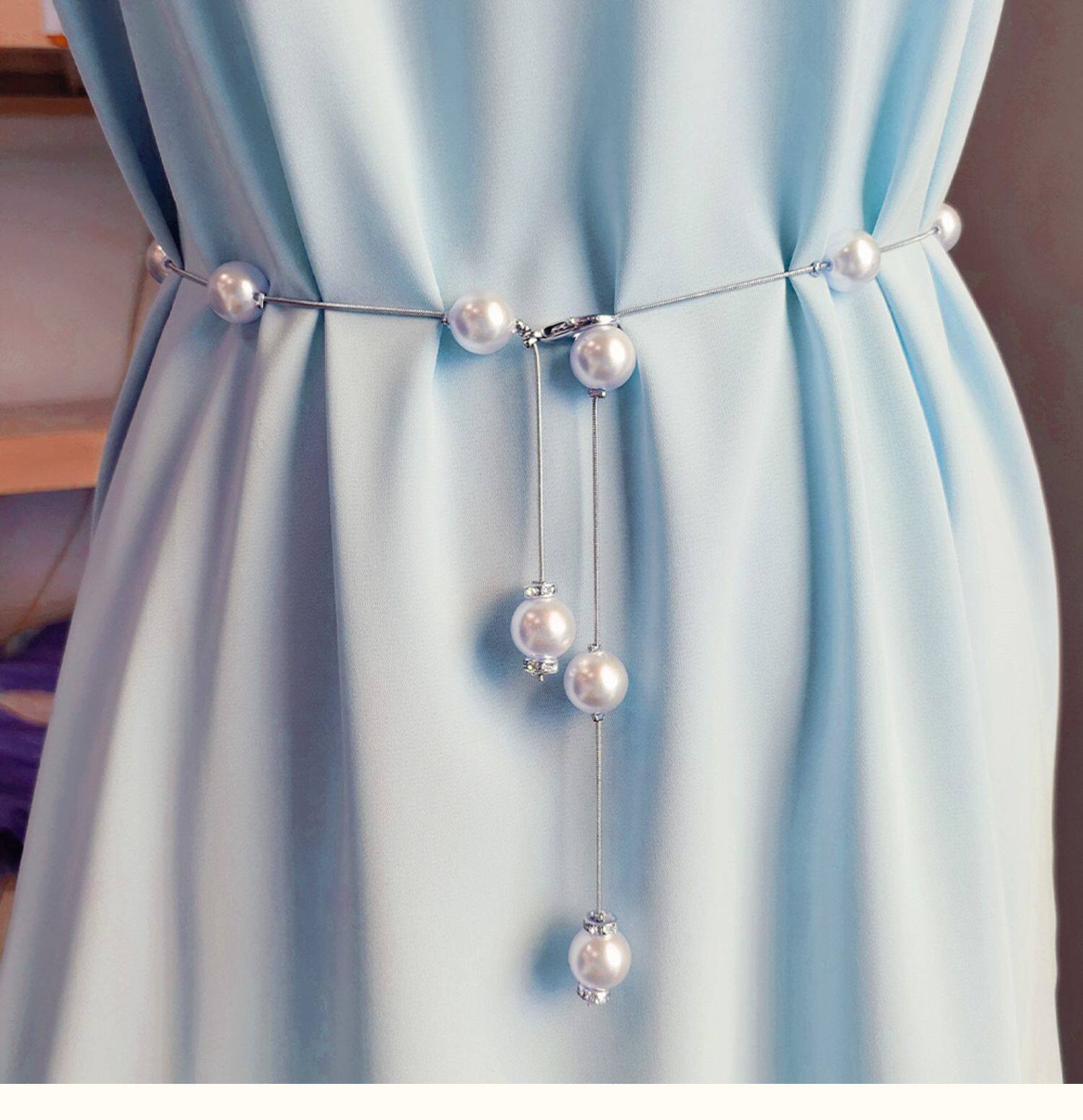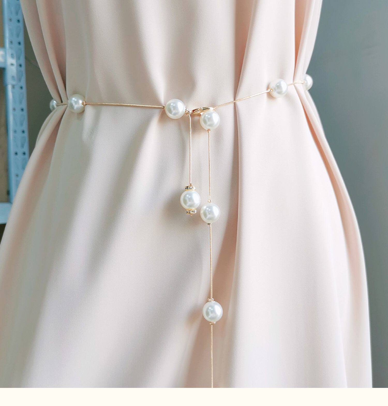 CalbouKimct pearl thin belt women's decorative dress waist chain accessories high-end small fragrance style with skirt