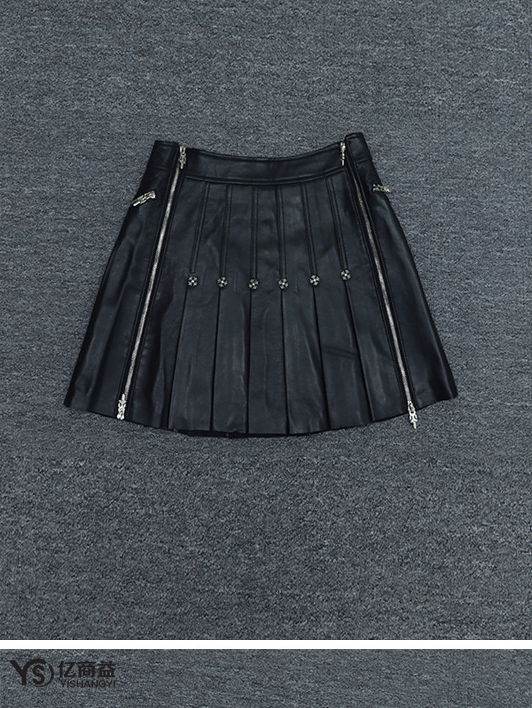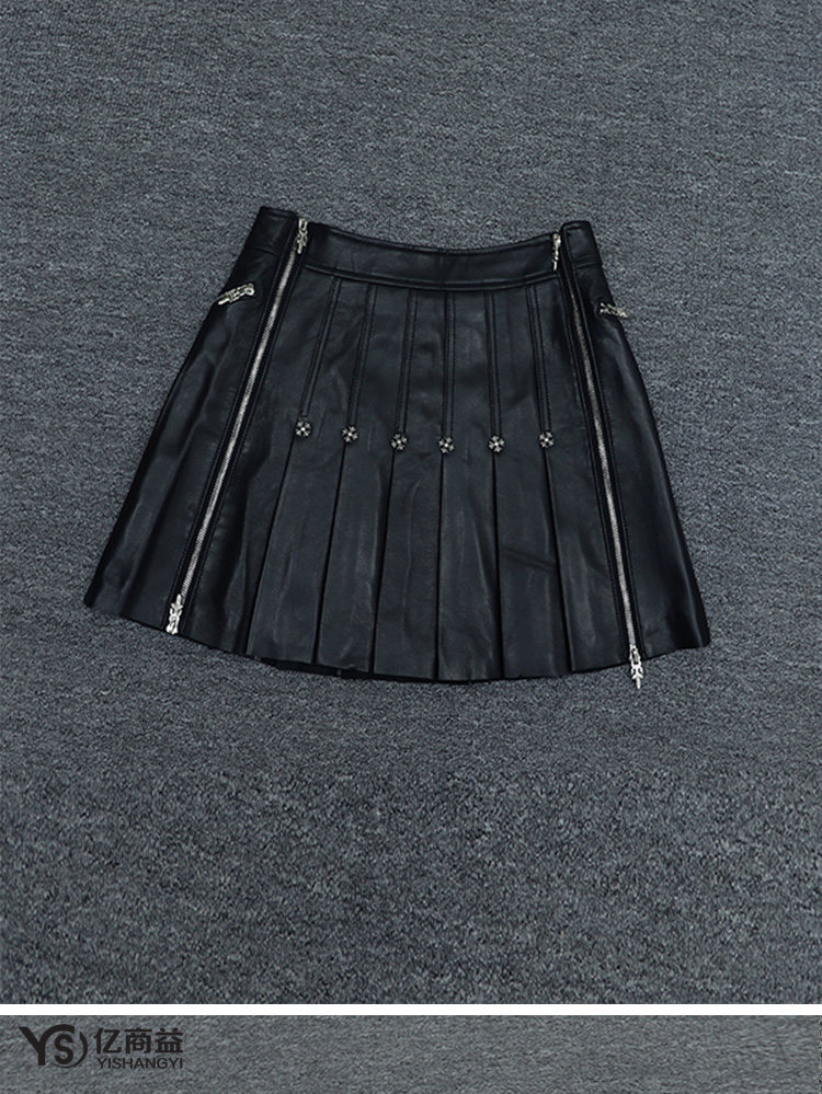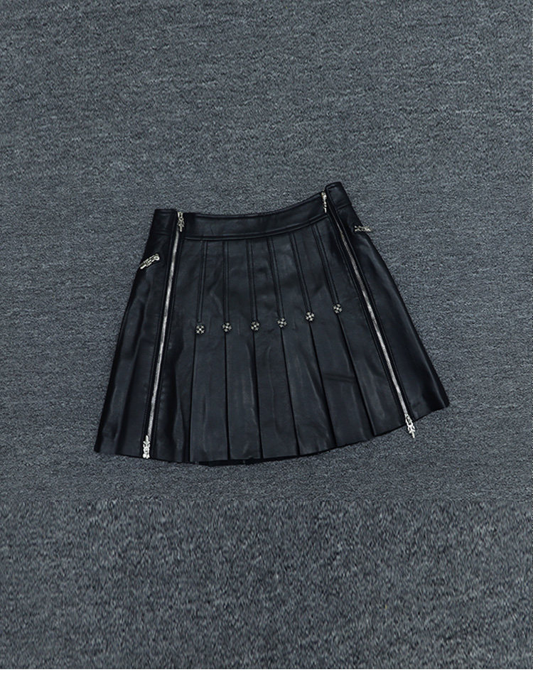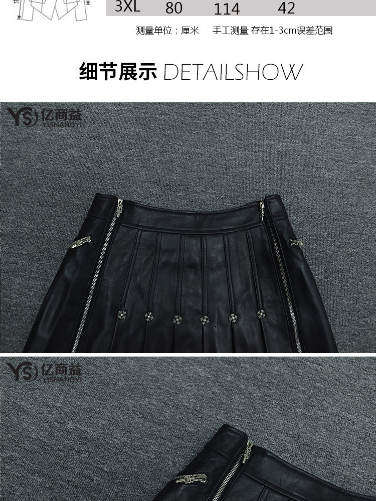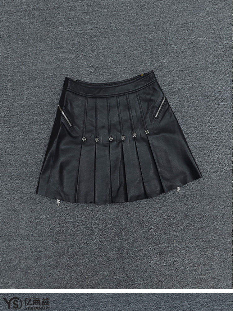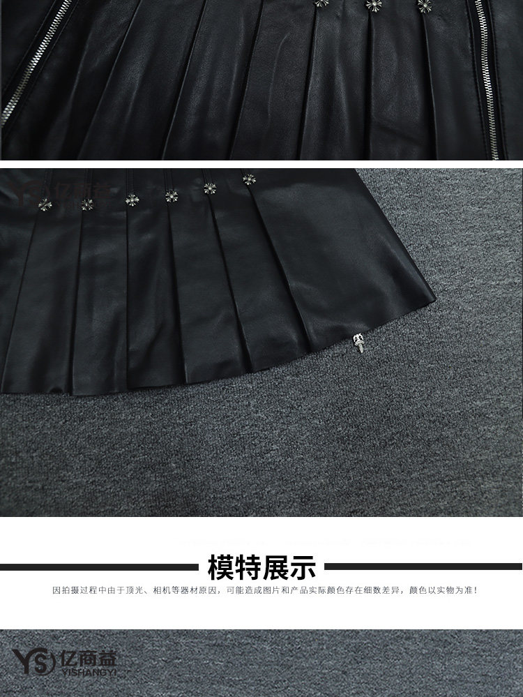 2025 New Genuine Leather Skirt Women's Autumn and Winter High Waist A-Line Pleated Fashion Haining Sheepskin Skirt Short Skirt