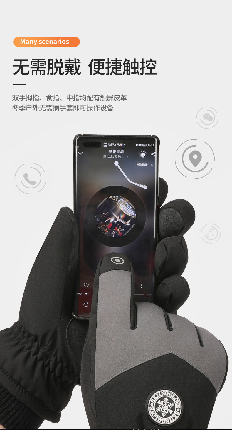 Winter Men's Gloves, Women's Winter Cute Fleece-Lined Thickened Warm Touchscreen Gloves for Skiing, Windproof, Cycling, Motorcycle, down Cotton