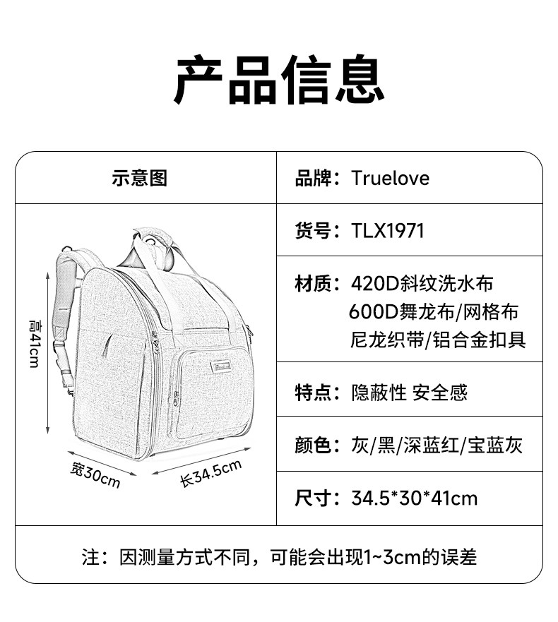 Truelove pet backpack dog small dog teddy outing bag portable backpack breathable bichon supplies