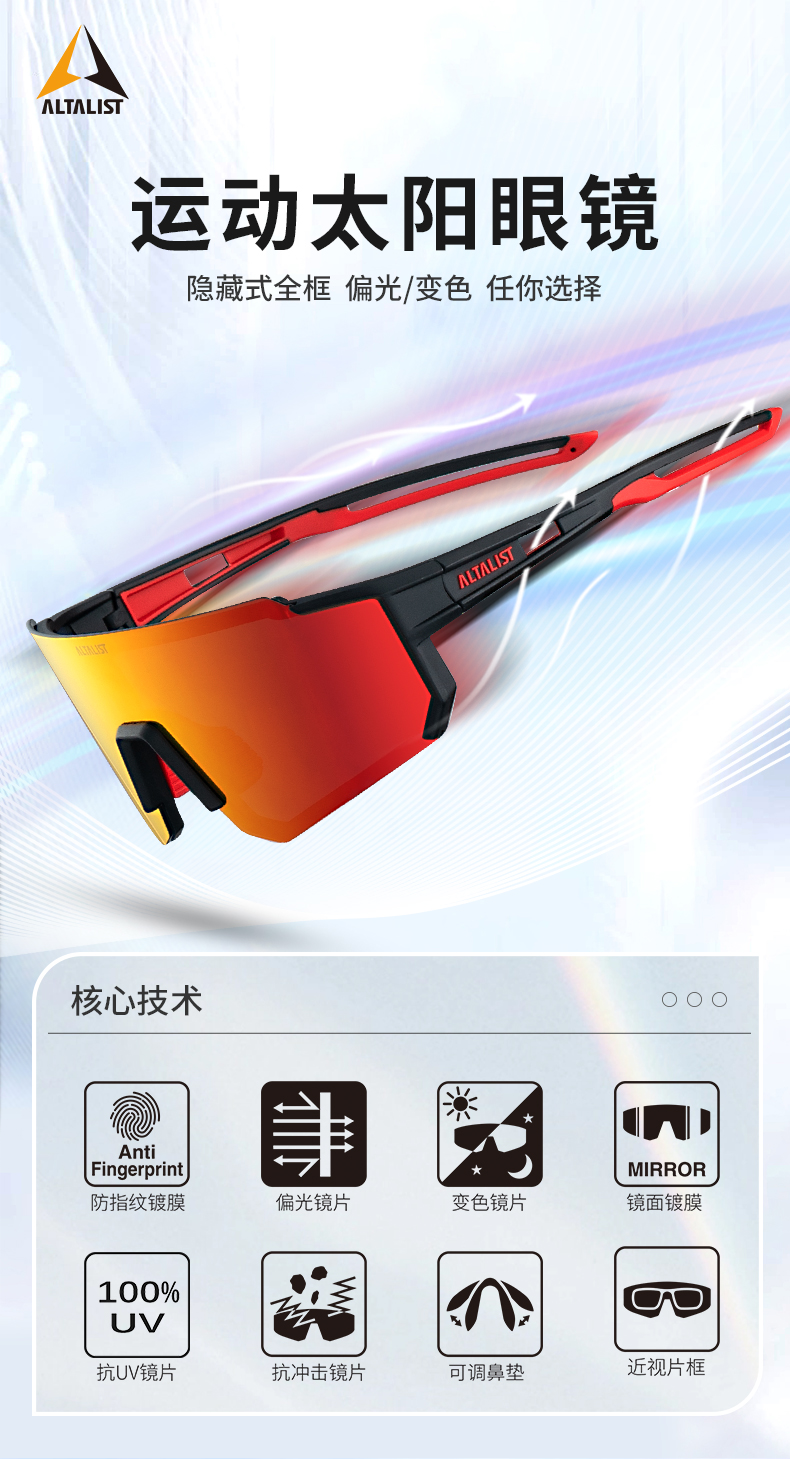 Altalist Supreme Glasses Polarized Photochromic Running Mountain Road Cycling Windproof Myopia Sports Sunglasses