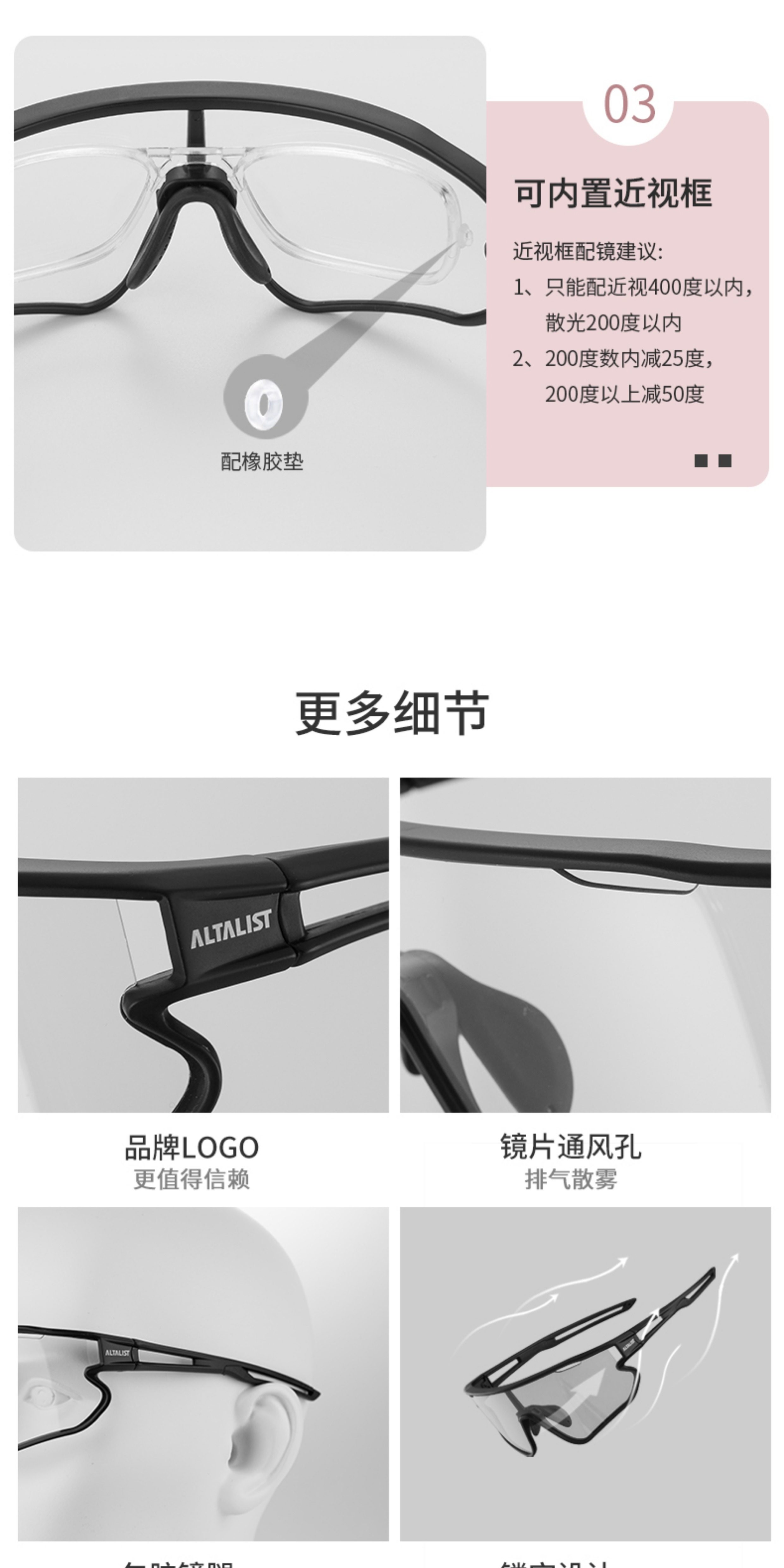 Altalist Cycling Glasses with Transparent Photochromic Lenses for Sports, Running, and Outdoor Activities, with Prescription Photochromic Lenses