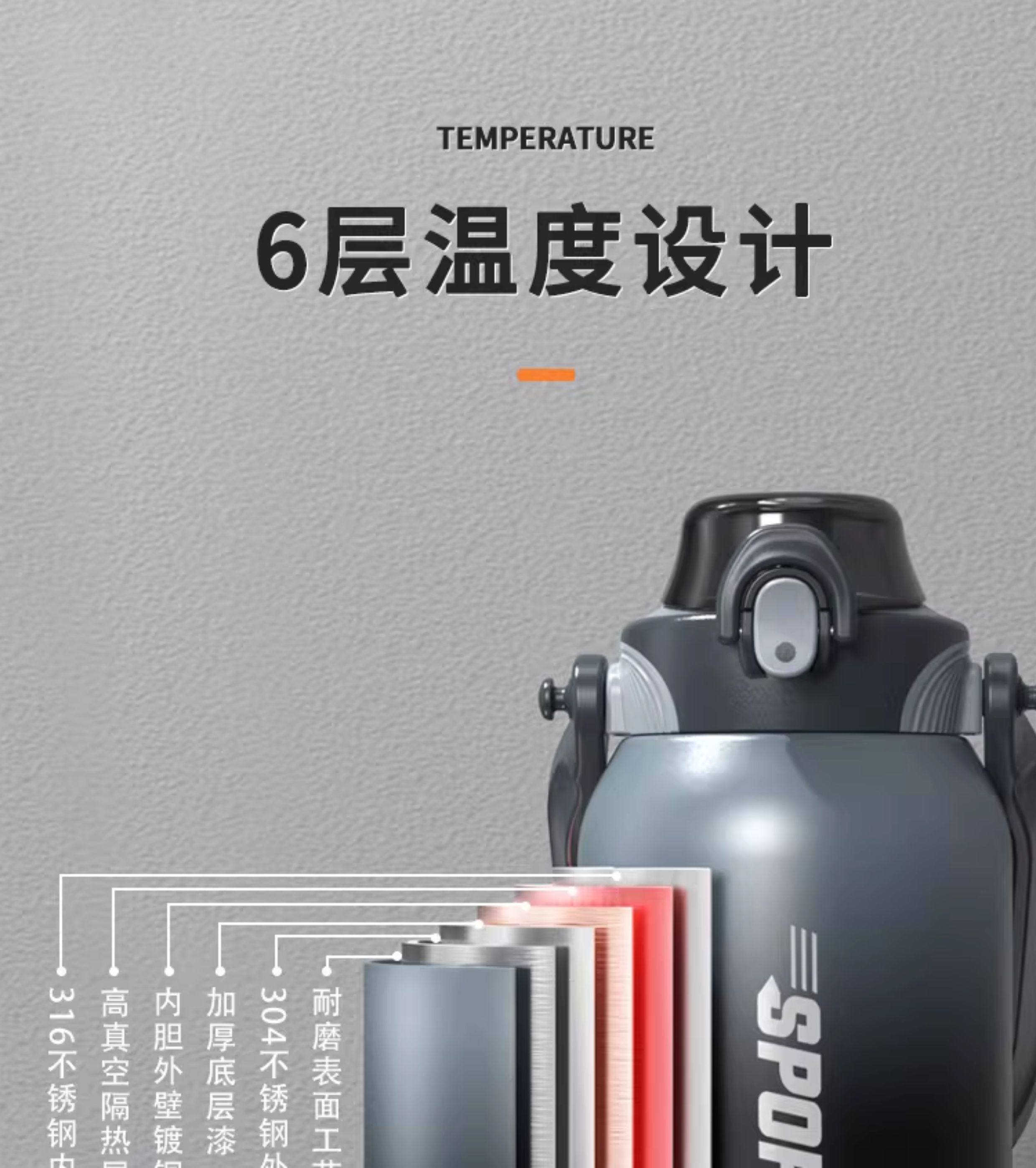 316 Stainless Steel Thermos Cup for Men, Large Capacity, Outdoor Portable Tea Cup, High-Looking Cold-Keeping Cup, Sports Water Cup