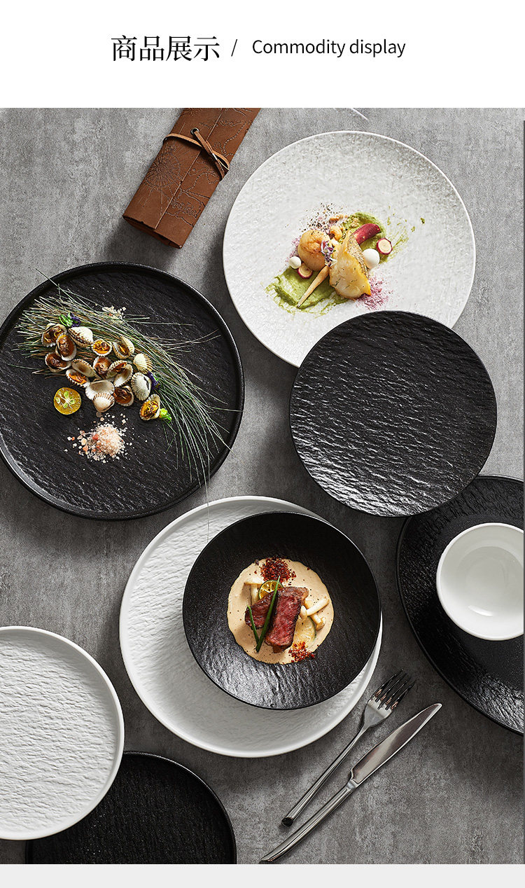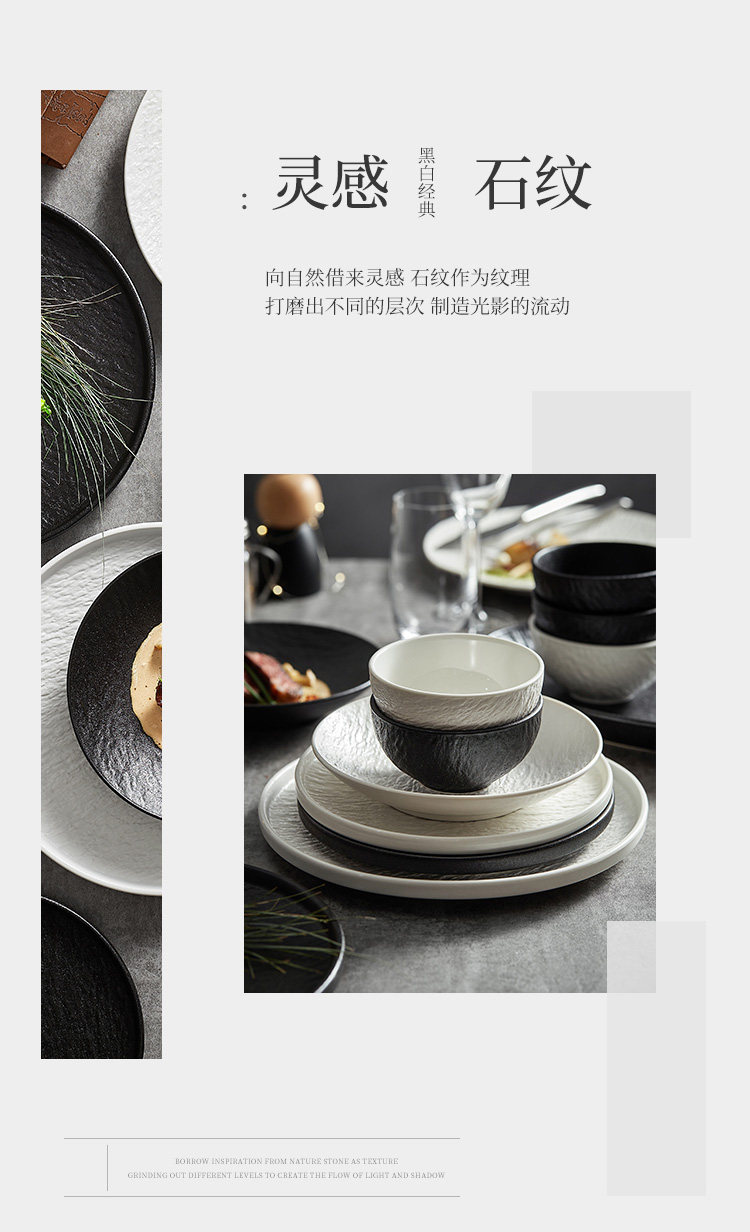 Dishes set, household simple dishes, light luxury plates and bowls, Japanese-style tableware and chopsticks, ceramic high-end black and white tableware set