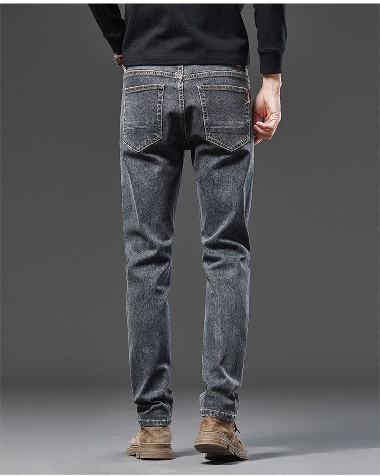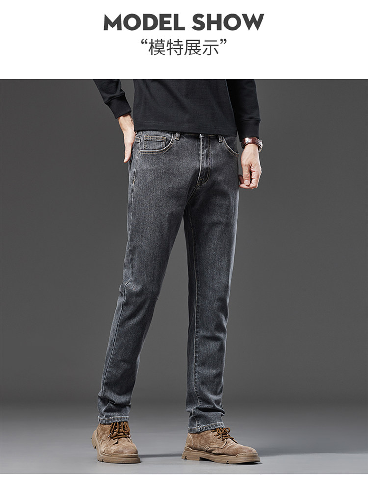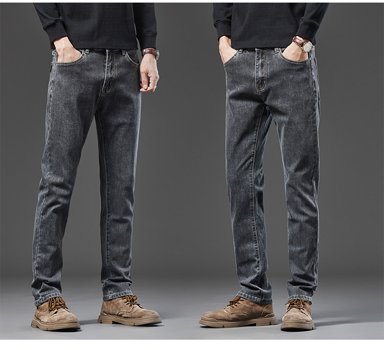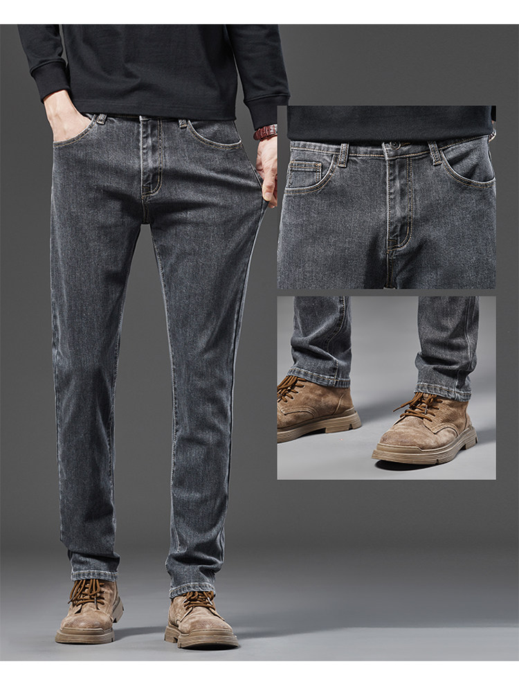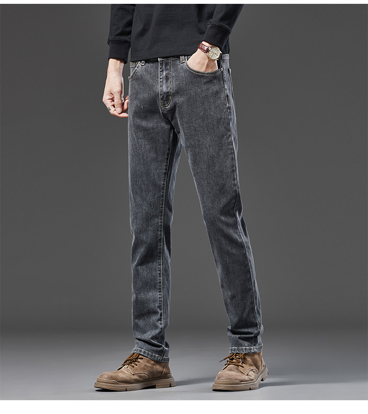Spring Smoky Gray Jeans for Men, Straight-Leg, Loose-Fitting, Spring and Autumn Style, High-End Retro Stretchy Casual Long Pants for Middle-Aged Men