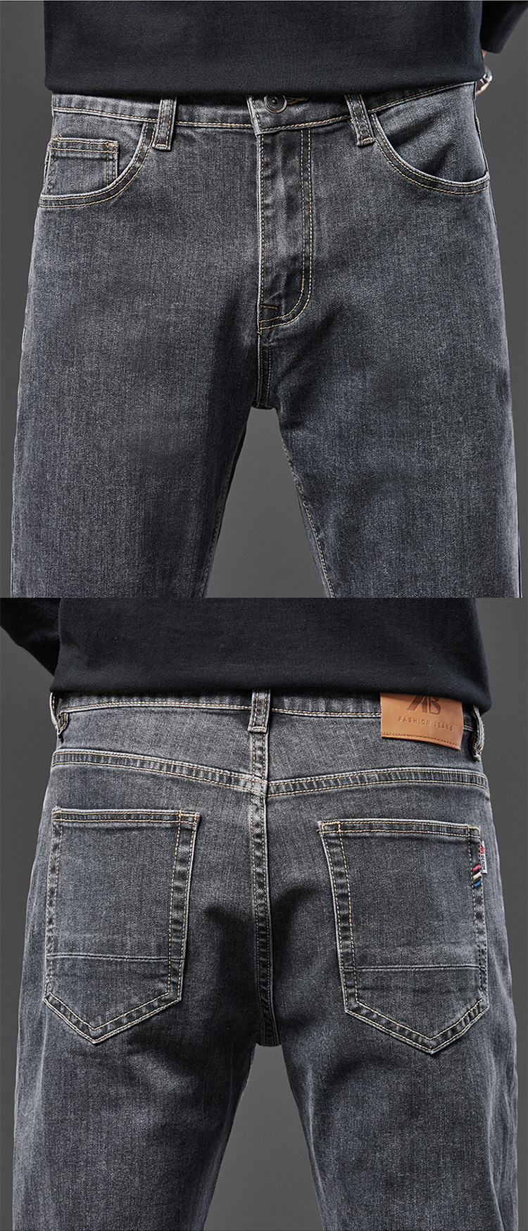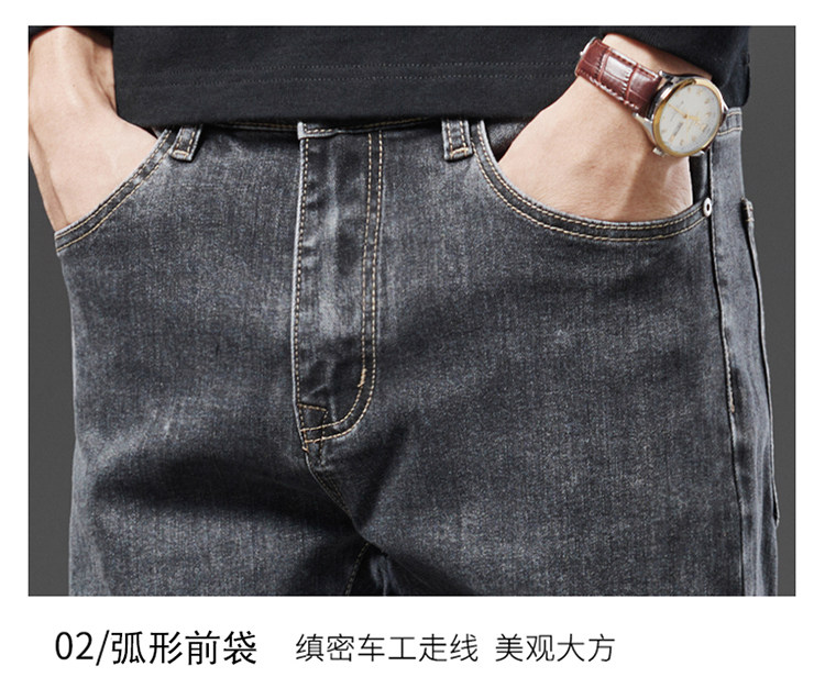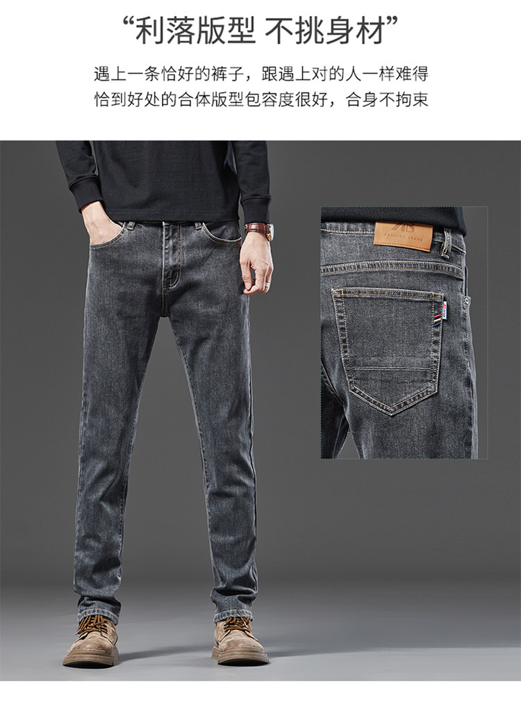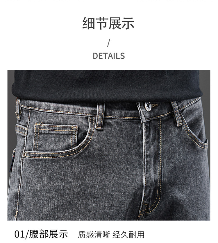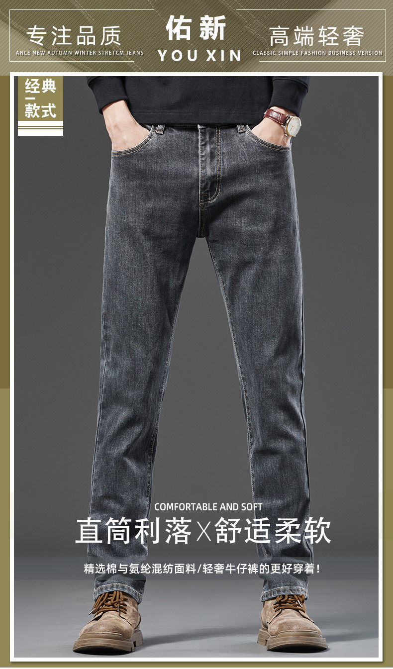 Spring Smoky Gray Jeans for Men, Straight-Leg, Loose-Fitting, Spring and Autumn Style, High-End Retro Stretchy Casual Long Pants for Middle-Aged Men