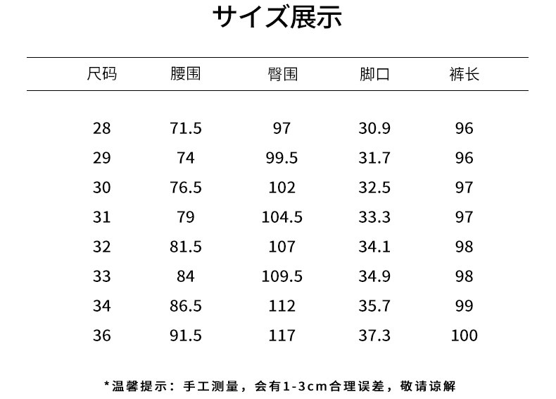 Outseam (cm) 99 cm 101.5 cm 104 cm 106.5 cm 109 cm