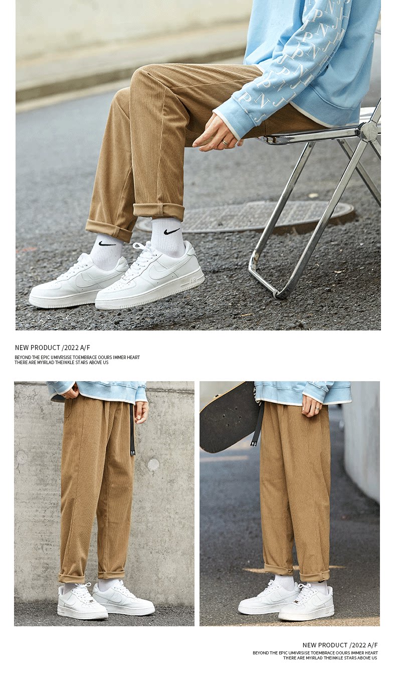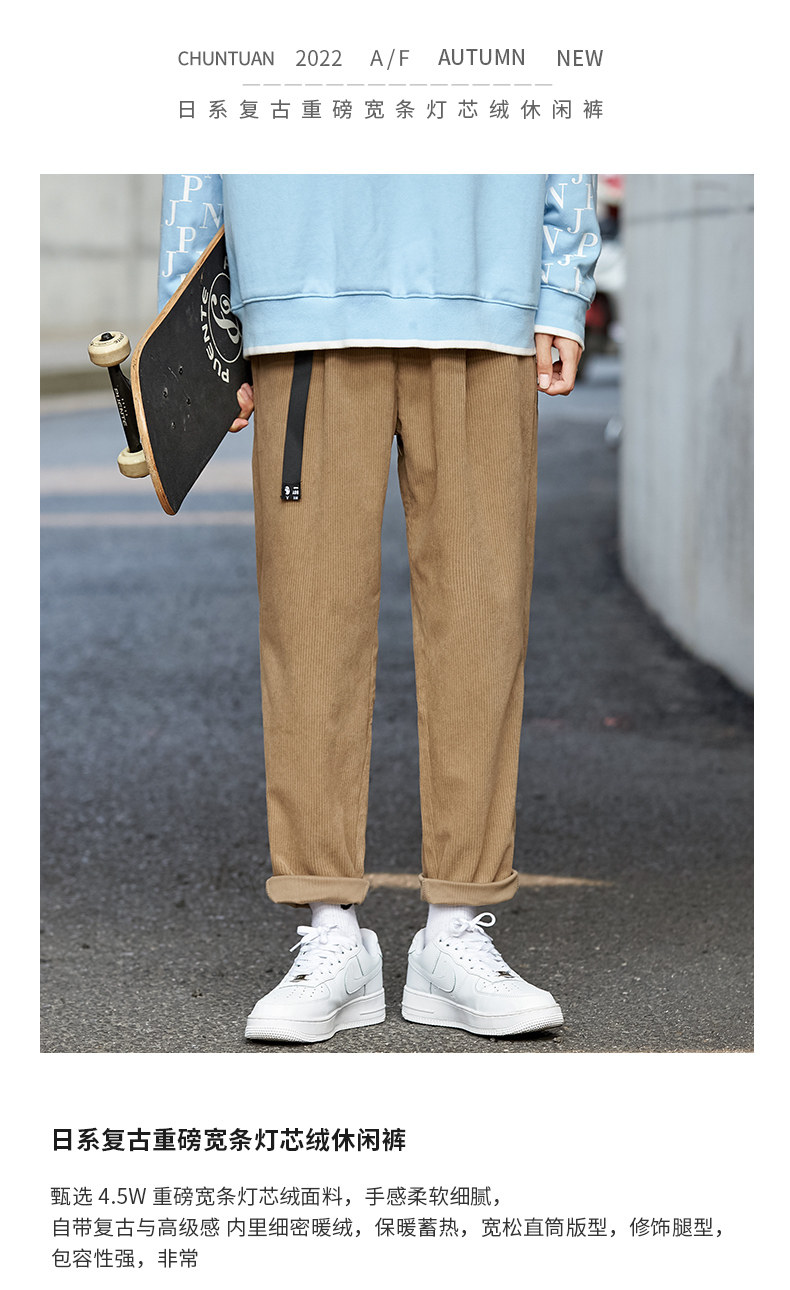 Japanese 460G heavy corduroy pants men's autumn and winter loose straight sweatpants retro tapered workwear casual pants