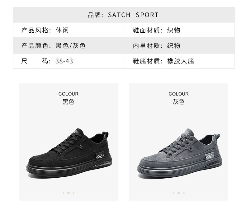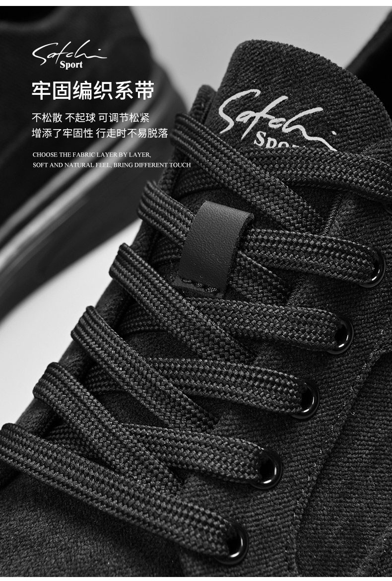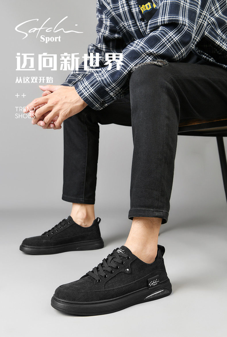 Satchi/Satchi Men's Shoes Winter New Men's Sneakers Trendy Versatile Casual Cloth Shoes Pure Black Sports Shoes