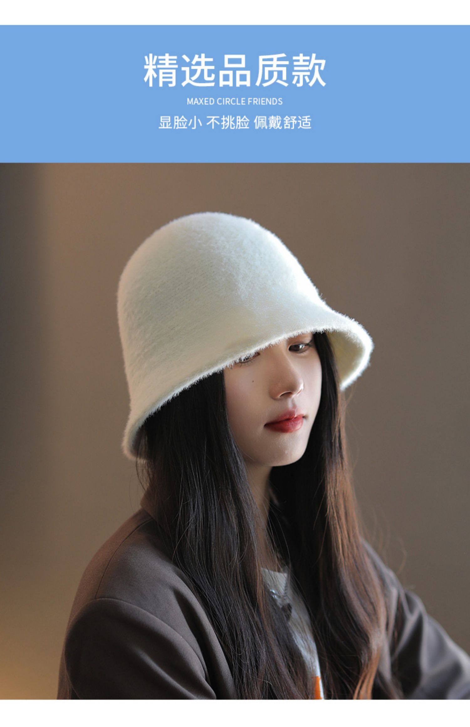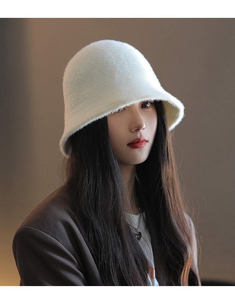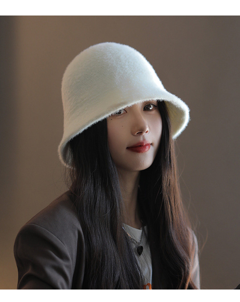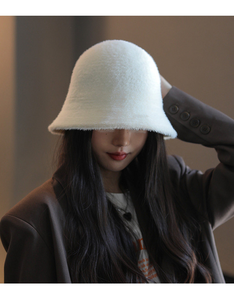 Fisherman Hat for Women, New Autumn and Winter Style, Versatile, Makes the Face Look Smaller, Natural Look, Face-Covering Bucket Hat, Japanese Style, Plush, Warm Cloche Hat