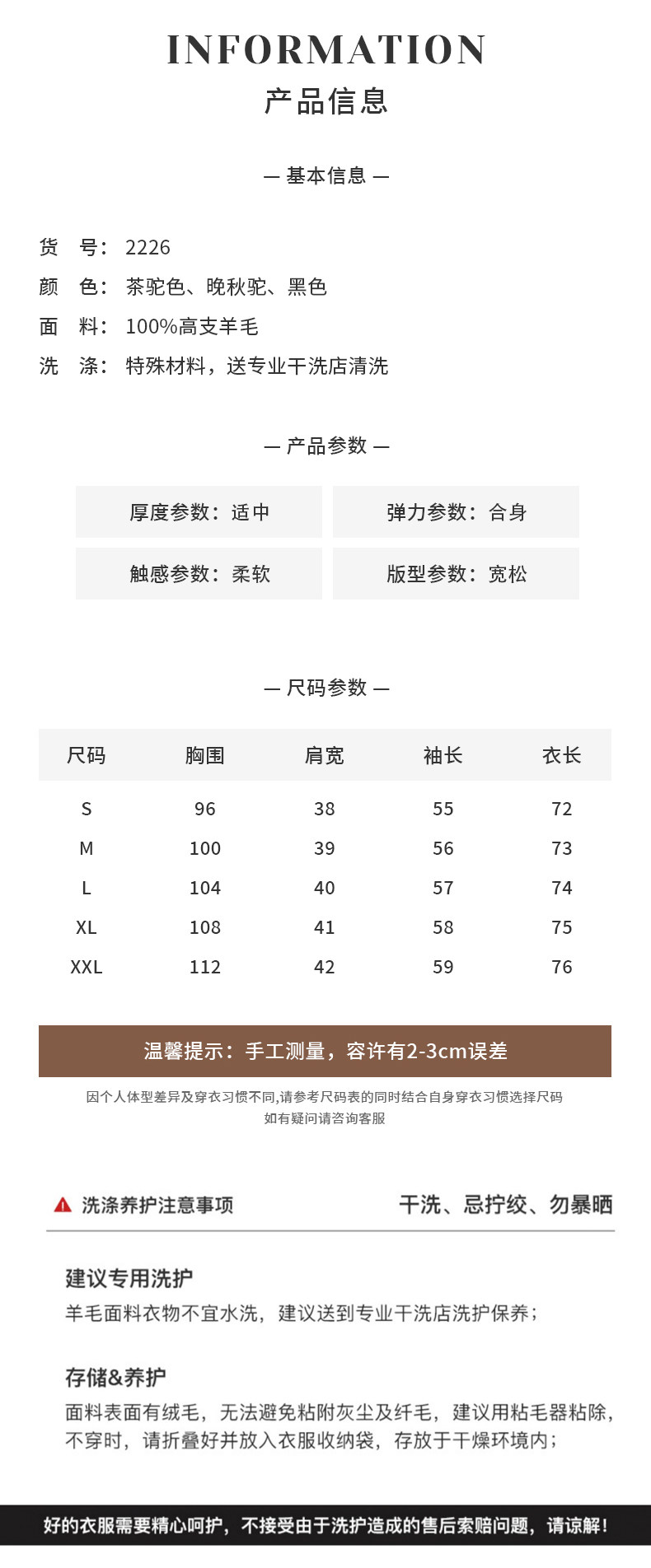 Color Classification Black,Late Autumn Camel,Tea Camel Color