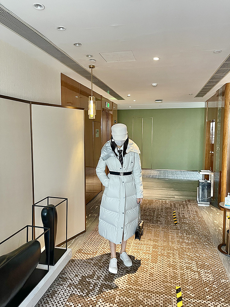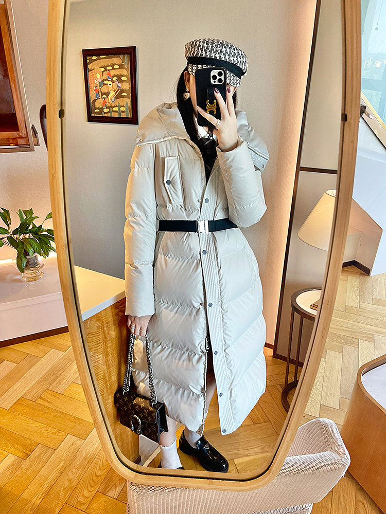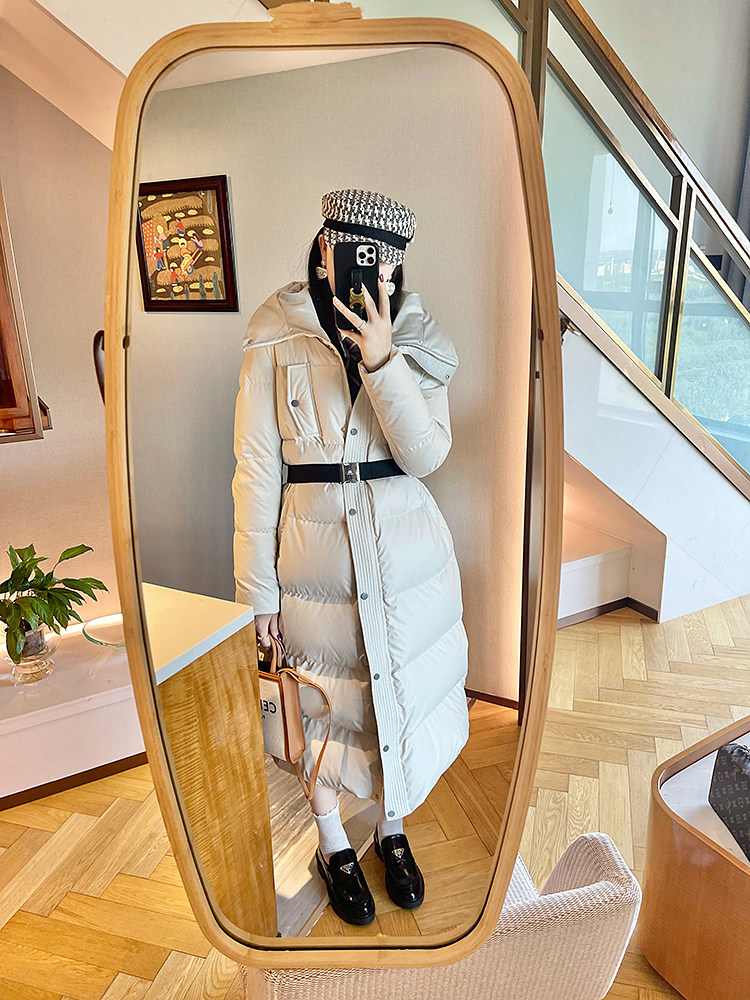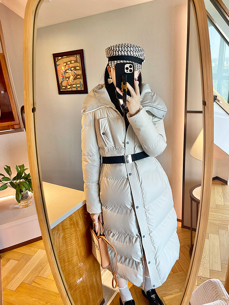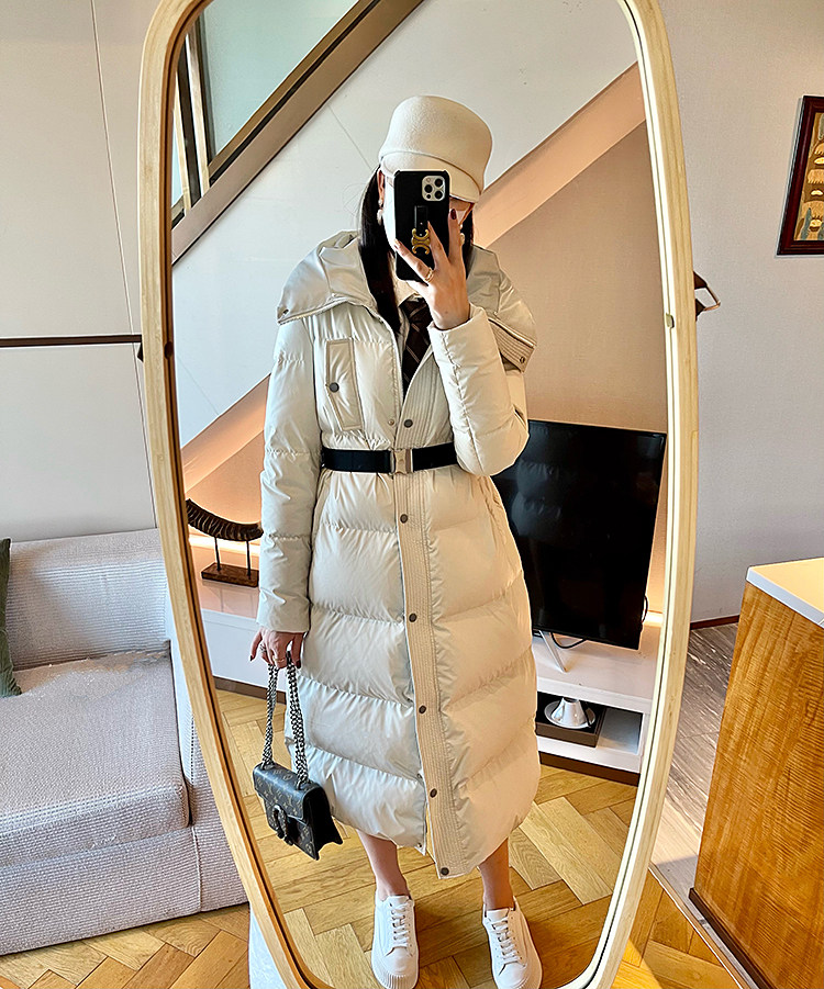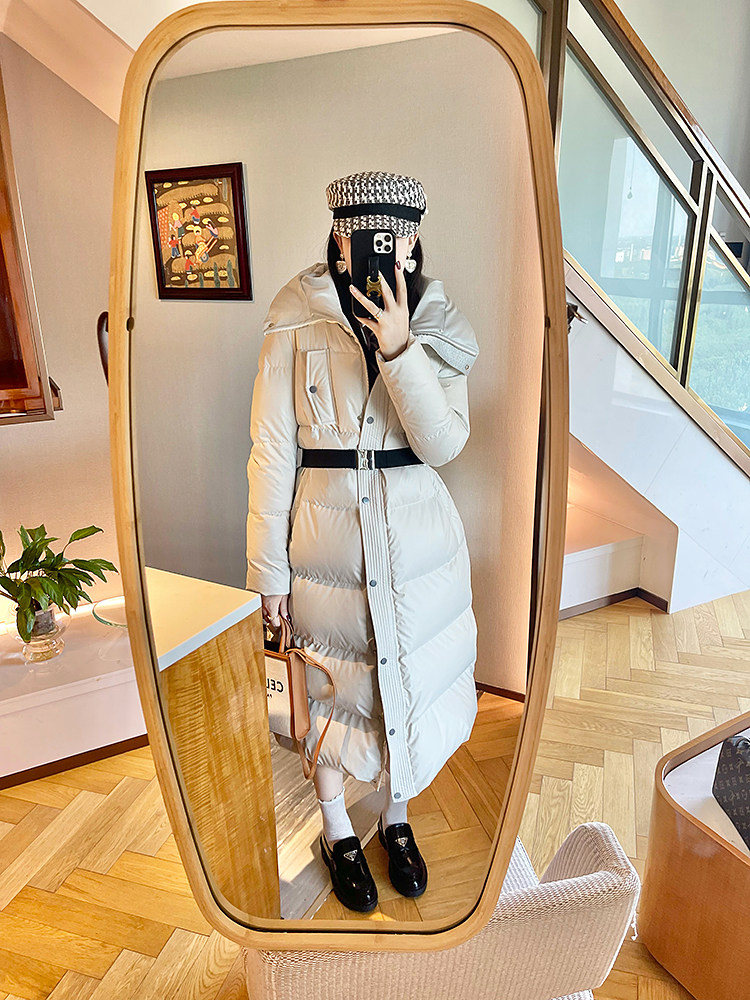 White super thick long leather down jacket for women 2025 winter new 95 white duck down waist slimming thickened jacket