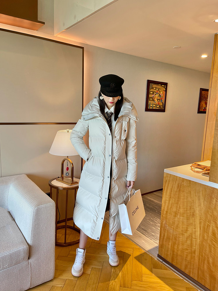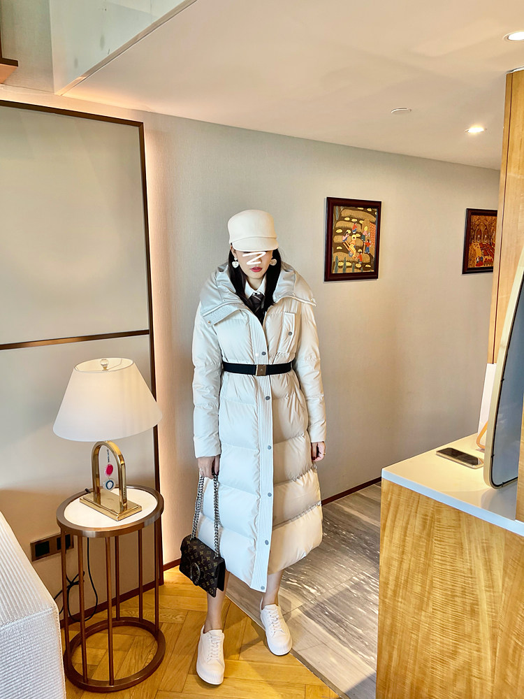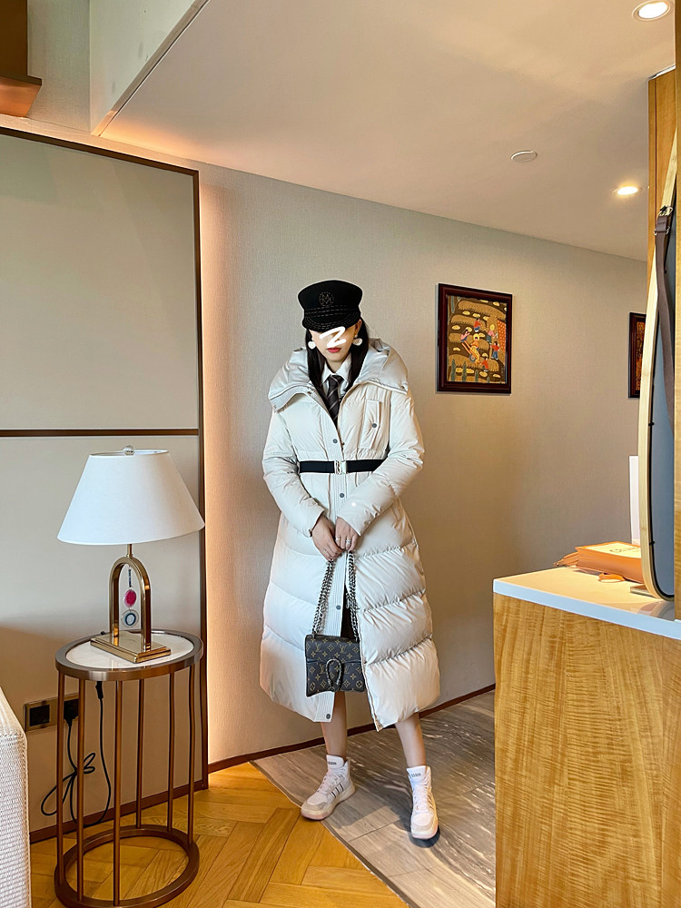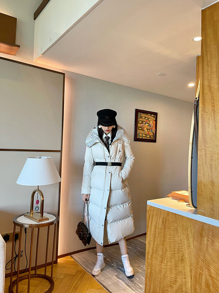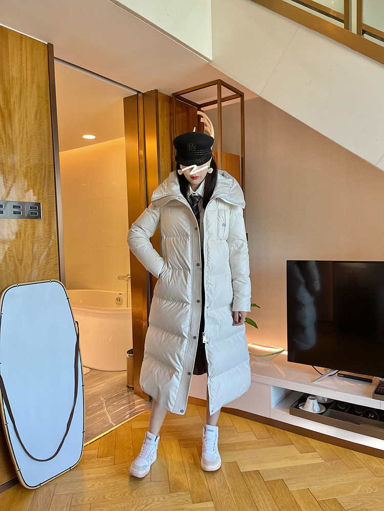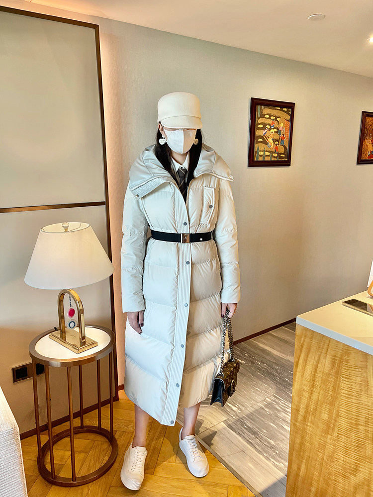 White super thick long leather down jacket for women 2025 winter new 95 white duck down waist slimming thickened jacket