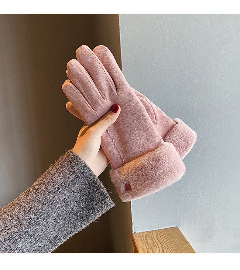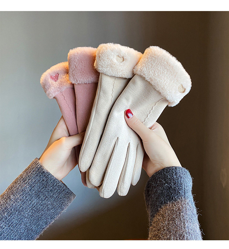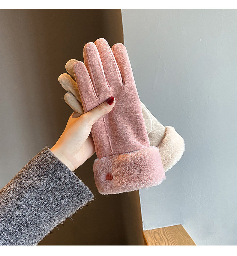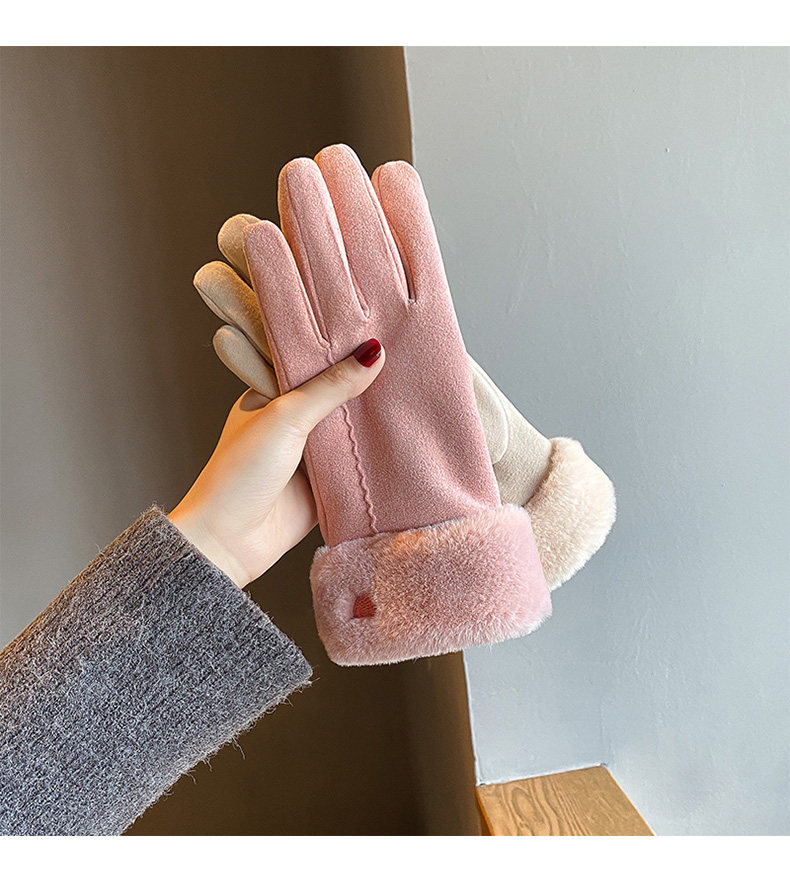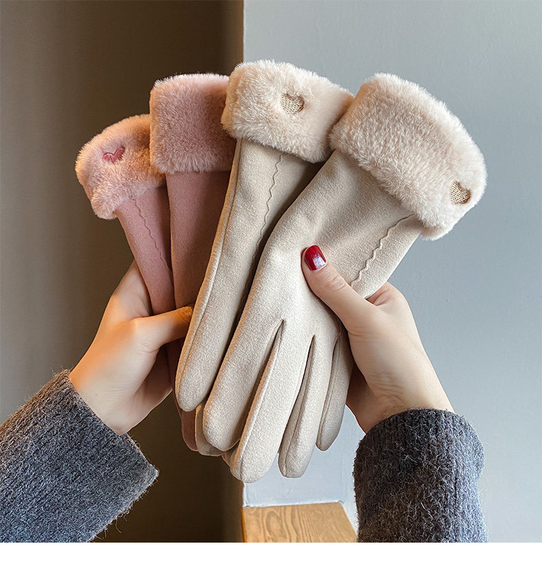 Handschuhe für Damen im Winter, mit Samt verdickt, warm, süß, Wildleder, modisch, Touchscreen, winddicht, Elektrofahrzeug, Kälteschutz